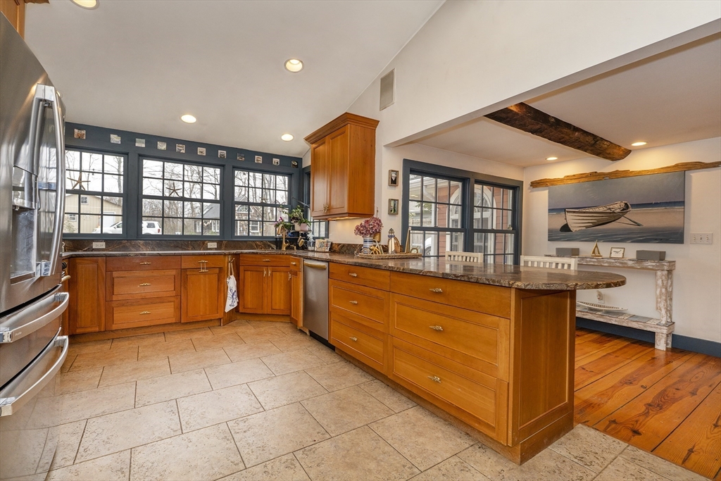 Originally home to shipbuilders, this Point Shore home offers modern living with old world charm. Chefs will savor the gorgeous kitchen with cherry cabinets, granite countertop seating and space for the family to gather round. The dining room is anchored by an original fireplace and beautiful wood floors throughout are a reminder of the home’s early days. Light-filled rooms on the first floor lend themselves for a variety of uses. Three bedrooms upstairs include a generous-sized main bedroom with fireplace. You are going to love the heated outbuilding, perfect for an office, art studio, exercise space or anything you can imagine. Close to downtown Amesbury, convenient to commuter routes and steps away from Alliance Park and a new marina across the street. You may need to get a boat! All of this close to both downtown Amesbury and Newburyport. Open houses Sat and Sunday noon to 1:30.