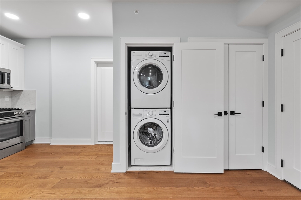 Discover this 1 bed, 1 bath, top floor unit in vibrant Inman Square. Finished in 2024, the apartment is set back on the street to balance the prime location while offering peace and quiet. The unit features an open layout seamlessly connecting the kitchen and main living area. The kitchen includes stainless steel appliances — dishwasher included — and two-tone shaker cabinets for ample storage. The spacious bedroom provides a comfortable retreat, complete with a large closet for generous storage options. One sleek, updated bathroom features a bright white vanity and tub with glass doors. In-unit laundry and central A/C complete the unit. This location offers easy access to local dining, shopping, and public transportation in one of Cambridge's most desirable neighborhoods.