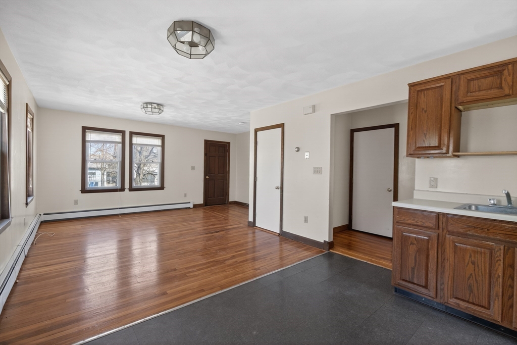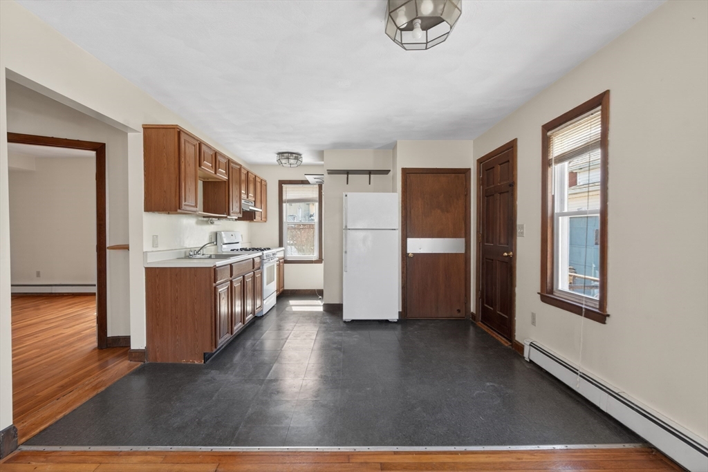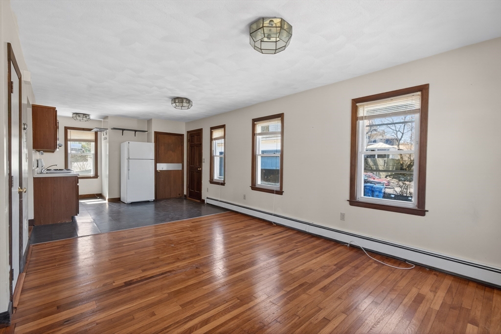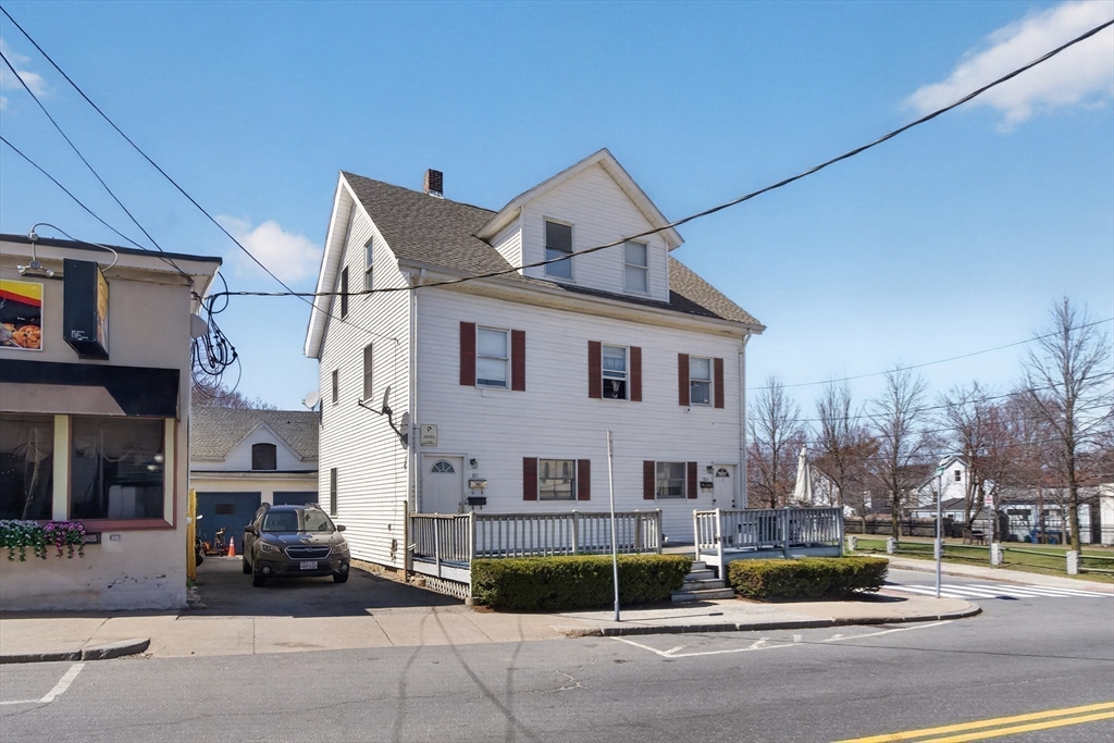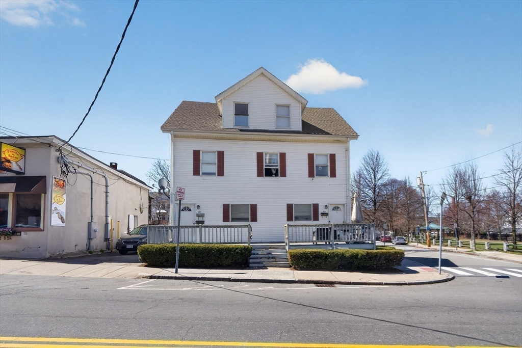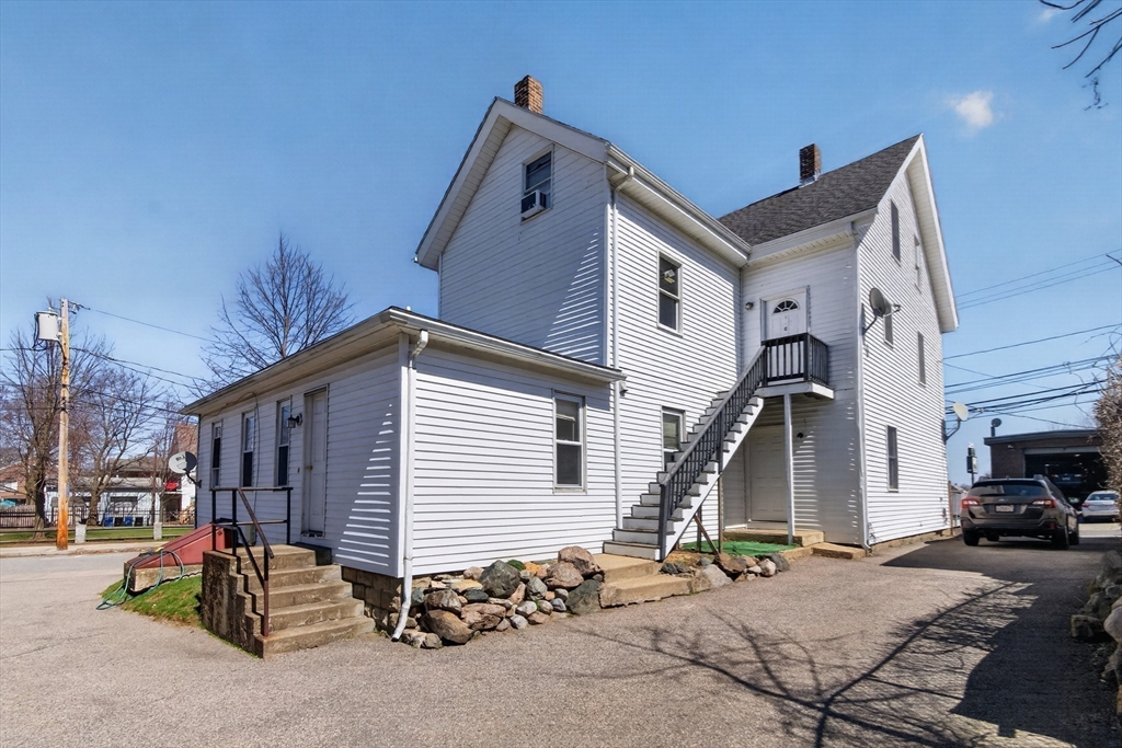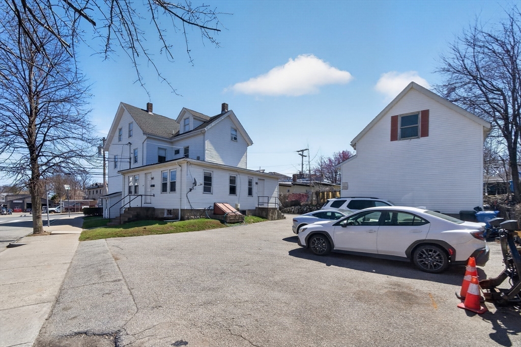 Have you been waiting for a Four Family investment property with an HUGE garage that has 10x10 garage doors and an ample parking lot? Well look no further. Four rental units all separately metered. Two top floor apartments are occupied and have lead certificates and are on Tenant at Wills and two bottom floor units are Vacant. There are two forms of egress out of the parking lot, one driveway on Newton St. The other driveway is on Gorham St.