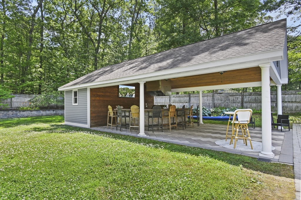 This 6,000 square foot Custom Colonial with an in-law apartment has it all!!! The main house features 12 rooms, 5 bedrooms, 2.5 baths while the 1,800 square foot in-law apartment boasts 5 room, 3 bedrooms, & 2 bathrooms. The staycation backyard centers on a large salt water heated pool surrounded by a fantastic paver patio with a hot tub, pool house bar with a 1/2 bath and outside shower & a large gazebo for all your enjoyment & entertaining. Elegant wainscoting, crown molding, & built-ins enhance this sophisticated home. The living rm opens to a vaulted sunroom with pellet stove & pool access. The dining rm flows into a chef’s kitchen with granite counters, gas cooktop, double ovens, & porch-side eat-in area. A fireplaced family rm offers built-ins & deck access. The in-law suite features a kitchen, office, and living rm with sliders to the pool. Upstairs includes a spacious master suite with spa bath, 4 more bedrooms, bathroom, and a family room. See Floor plan attached to listing.