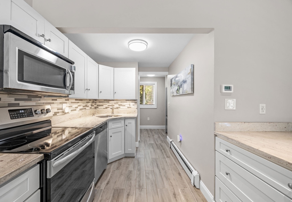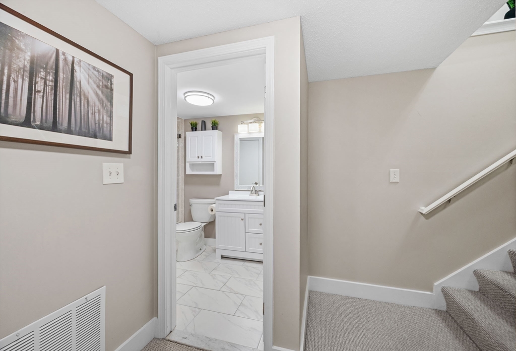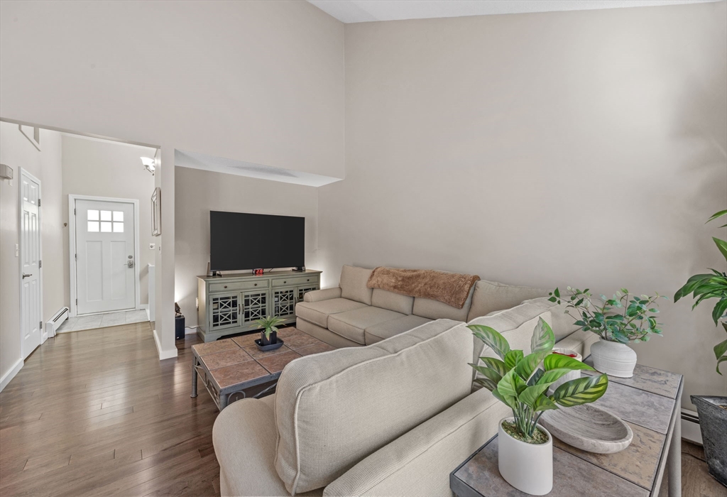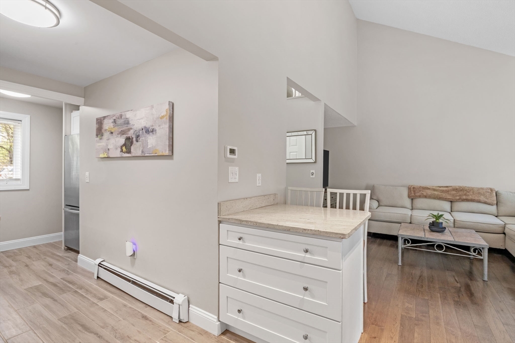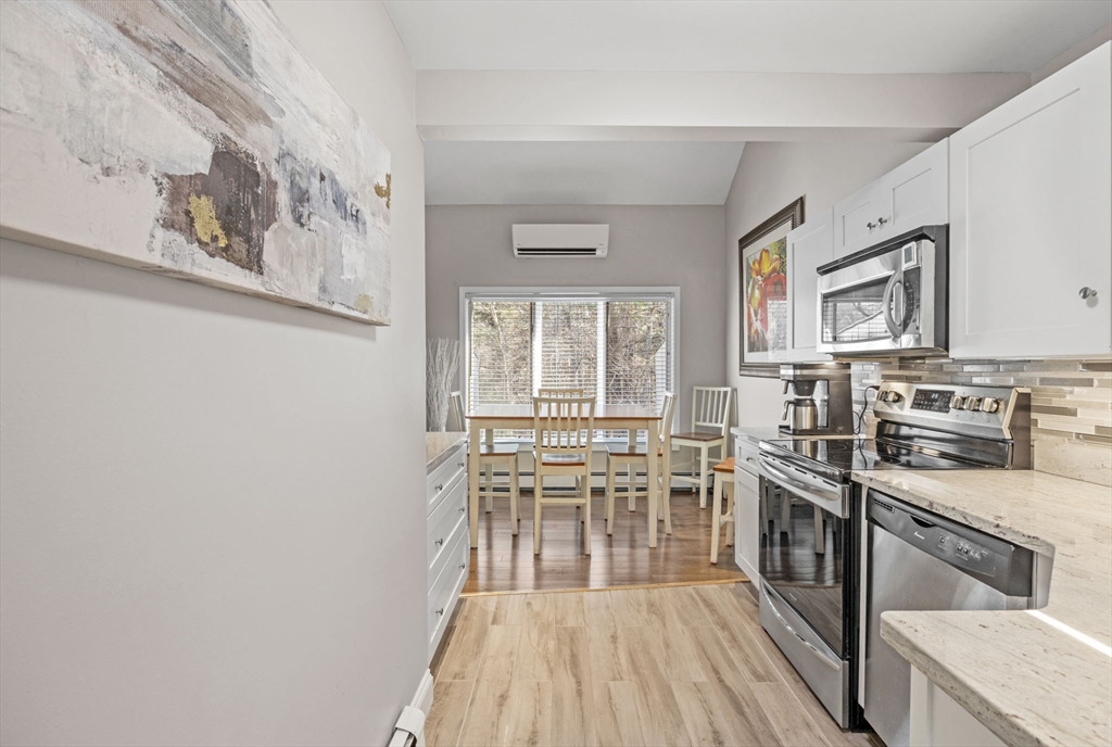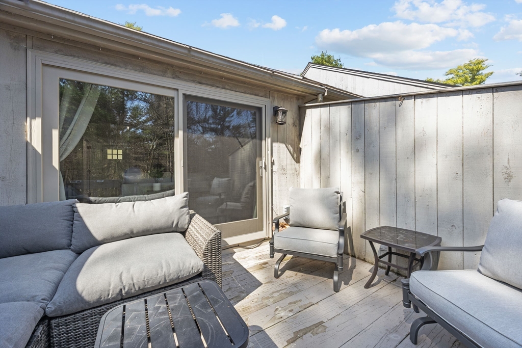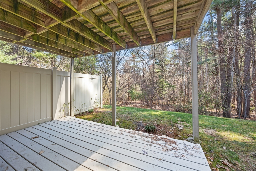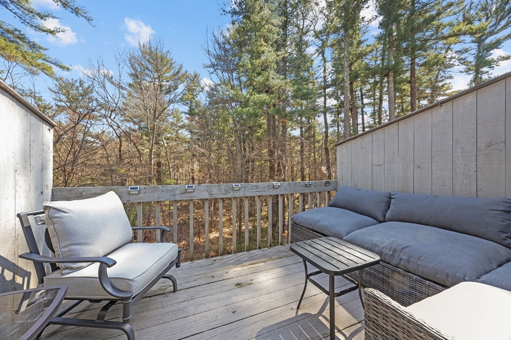 Look at this value in Duxbury! Desirable townhome in sought-after Trout Farm community. Unit is sparkling and has many updates, including beautiful quartz counter tops, newer appliances, gleaming hardwood floors, and more! This is two level living with an open first floor connecting kitchen, dining and living area - also contains a half bath and a back porch overlooking quiet back yard and forest. Downstairs includes two generous-sized bedrooms with walk-out access to back yard and full bath. Worth a look, and perhaps a "welcome home"!