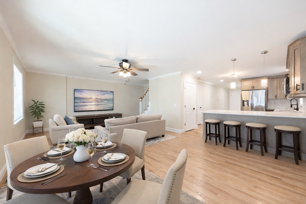 NEW STUNNING 3 BEDROOMS, 2.5 BATH TOWNHOUSE W/ ONE CAR GARAGE. BUILT WITH GREAT ATTENTION TO DETAIL. FEATURING A SPACIOUS GRANITE KITCHEN W/ STAINLESS STEEL APPLIANCES. BREAKFAST BAR OPEN TO DINING/ LIVING ROOM. HARDWOODS THROUGHOUT, CROWN MOLDING, PRIMARY BEDROOM W/ PRIVATE BATH AND LOTS OF CLOSET SPACE. 2ND FLOOR LAUNDRY - WASHER/ DRYER INCLUDED, CENTRAL AIR. IRRIGATION SYSTEM, MUST SEE! WALK TO TRAIN! CLOSE TO HIGHWAY AND SHOPPING. NO CONDO FEE!