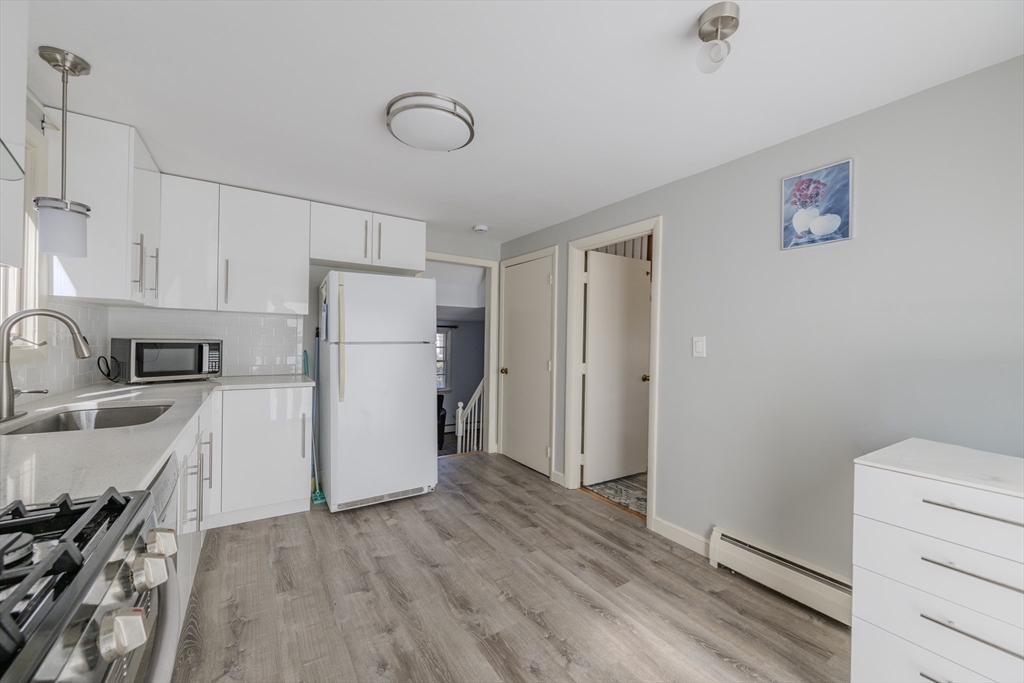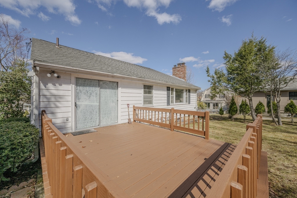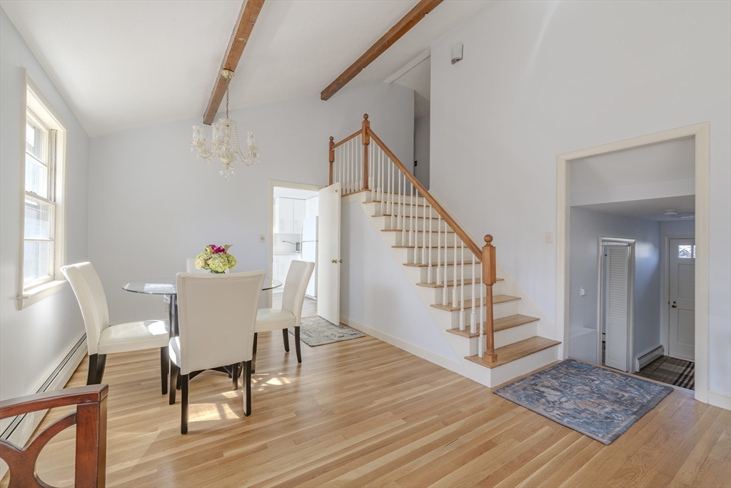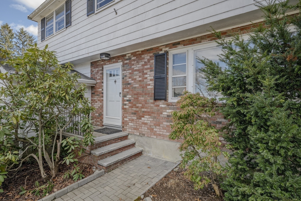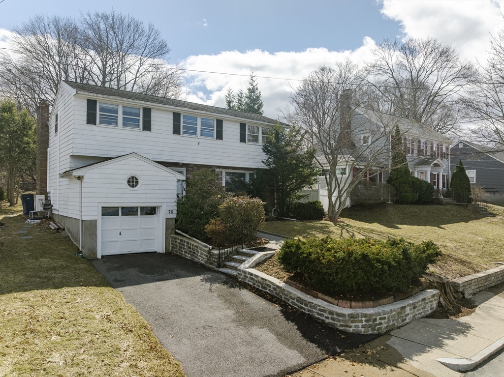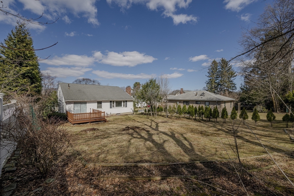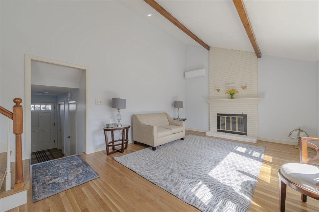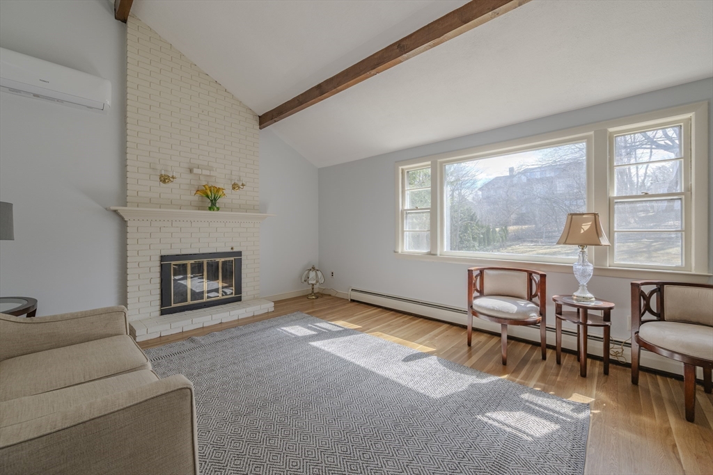 Spacious and open 3-bedroom mid-century home on desirable Vermont Street. Cathedral ceilings and an open floor plan create a bright, airy feel with seamless flow between living, dining, and kitchen spaces. The design offers a blank slate with flexibility for a multitude of design options and potential for future expansion. The main living area features a fireplace and enjoys open views to the large backyard, while a separate front den with half bath adds versatility for a multitude of uses .Upstairs are three spacious bedrooms and a full bath. The lower level offers bonus space, laundry/utility area, and direct garage access. Set on a large, level lot with a deck and expansive yard, ideal for outdoor living and entertaining. Brand new systems and mini-splits provide efficient, low-maintenance comfort. Excellent location just a short walk to Centre Street shops, restaurants, Trader Joe's, Roche Bros. and the commuter rail.
