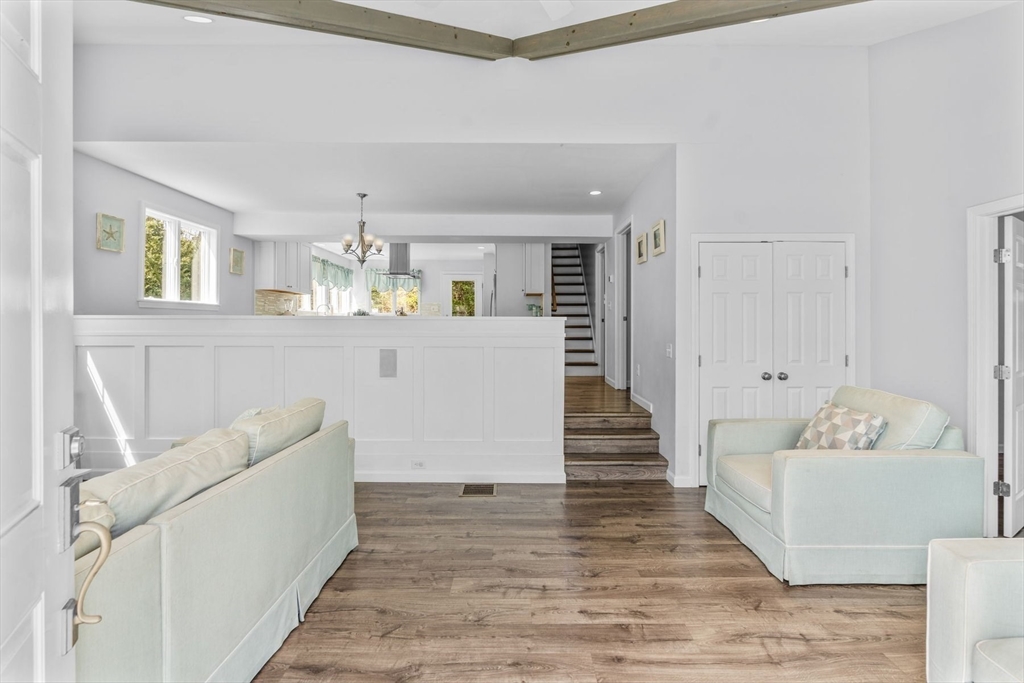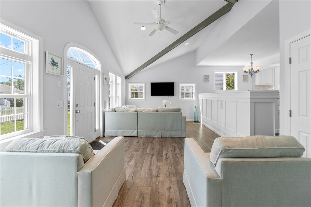 Have you been looking for a quintessential Cape Cod beach home in the heart of Popponesset? You have just found a beautifully renovated and expanded legal 5BR, 3BA home in Popponesset Village, just a 3-5 minute stroll to a private association beach with deeded rights. This home offers a rare combination of space, walkability & investment potential. Bright open floor plan with updated kitchen, center island, dining area & sunken living room with cathedral ceilings. First-floor primary suite, bonus room, and full bath finish the first level. Upstairs features 4 additional bedrooms and a full bath. Recent improvements include central A/C with new ductwork, high-efficiency heating & tankless hot water. Exterior features a 35' patio, outdoor shower, new shed, property has professionally maintained landscaping. Walk to the Popponesset Marketplace and Inn. Great rental history, rentals have been booked for this summer ask for further details.