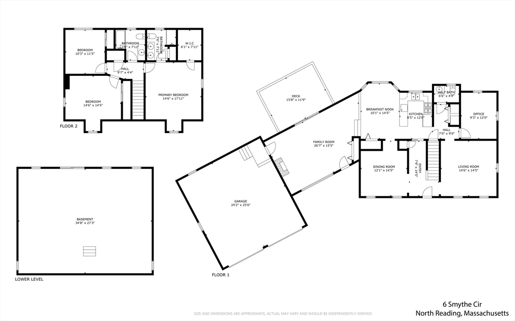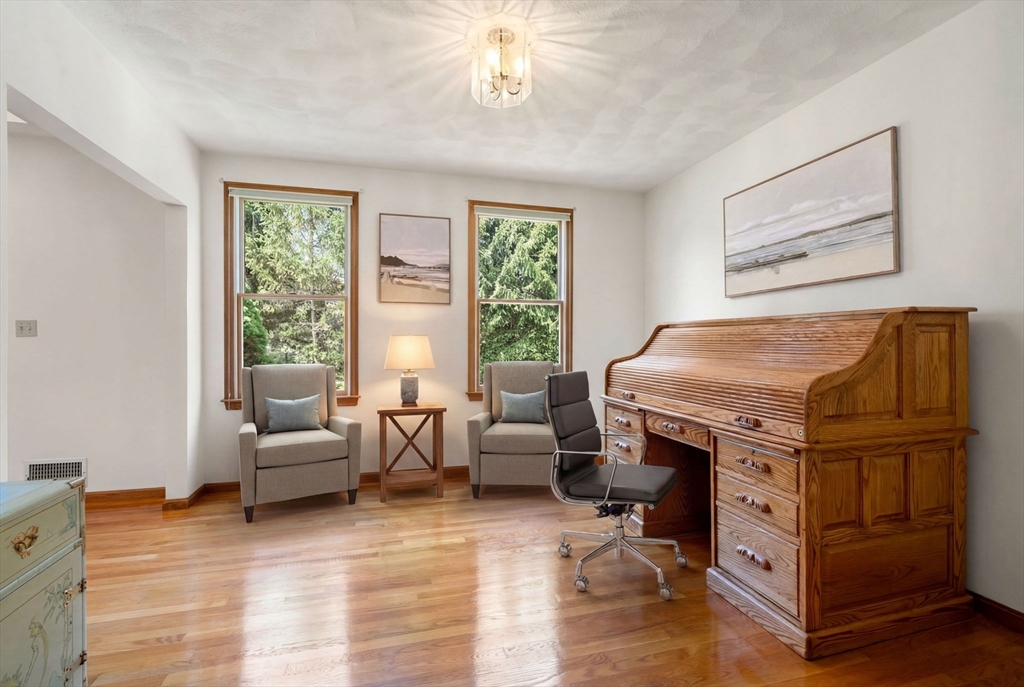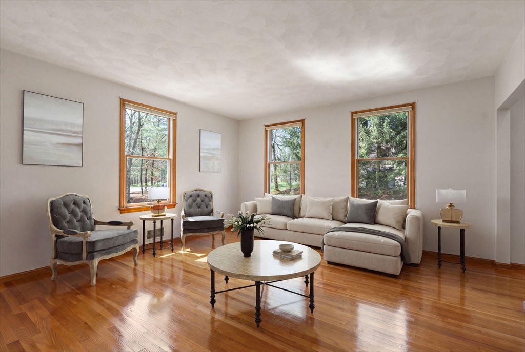 Tucked away at the end of a peaceful cul-de-sac on nearly 2 acres, this North Reading Colonial offers 2,399 sqft of bright, inviting living space with strong expansion potential. High ceilings & oversized windows bring in abundant natural light. The first floor includes a fireplaced family room with a tall cathedral ceiling & deck access, a formal dining room, kitchen with a breakfast nook & updated stainless steel appliances, formal living room, and a versatile bonus room. A 2-story foyer leads to three bedrooms, including a spacious primary suite with a deep walk-in closet. The walk-out basement features multiple windows that allow natural light in, making it well-suited for future finished space, and the attached 2-car garage includes a loft with a gas line in place for a potential heated finished space. The deck overlooks a private, tree-lined backyard, and a long driveway sets the home well back from the road. Quick access to Main St. and major highways. WELCOME TO NORTH READING!
