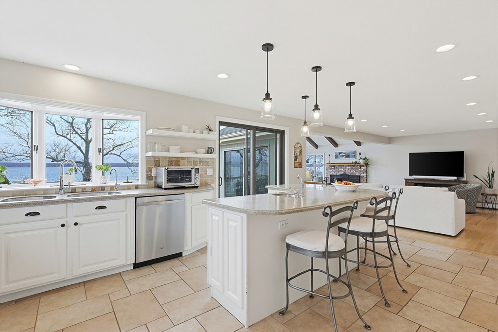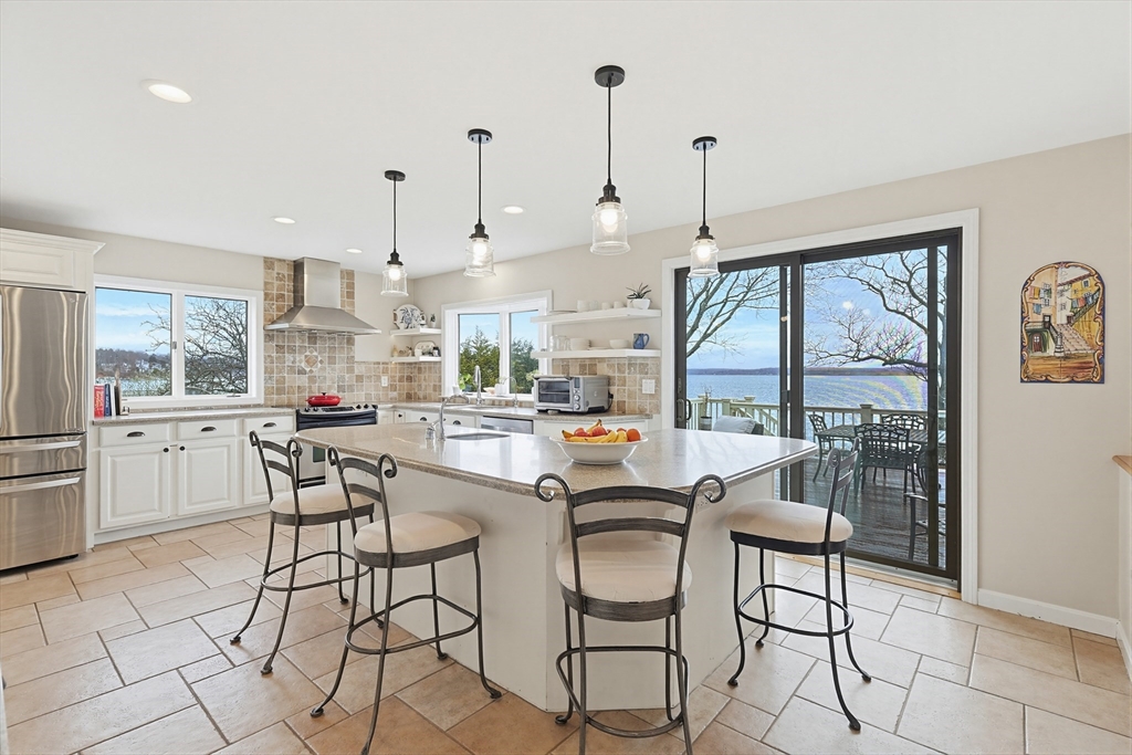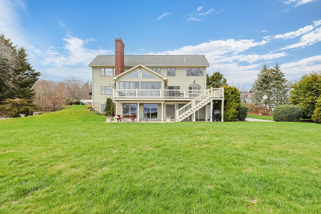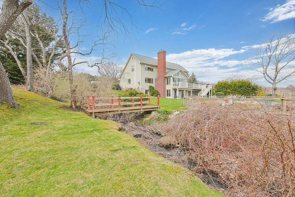 Coastal living at its finest! Tucked away on a quiet cul-de-sac this exceptional waterfront property captures sweeping, panoramic water views from nearly every room. Whether you’re seeking a summer escape or a year-round coastal retreat, this home offers the perfect blend of comfort, space, and scenic beauty. Adding to the property’s charm is a picturesque babbling brook, complete with a quaint bridge, creating a peaceful, storybook setting and a truly unique natural feature to enjoy year-round Featuring 3+ bedrooms, 3 full baths, there is ample room for family and guests alike. The first-floor primary suite provides convenience and privacy, while multiple living areas showcase the home’s stunning waterfront setting. Enjoy direct access to the water with beach rights, two moorings, and granite steps leading to the shoreline—ideal for swimming, kayaking, paddleboarding, and more. Take in the ever-changing coastal landscape, from boating activity to breathtaking sunrises. Ideally located