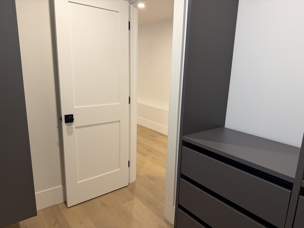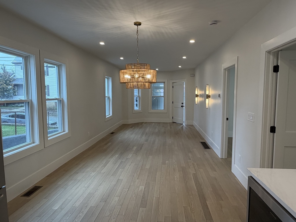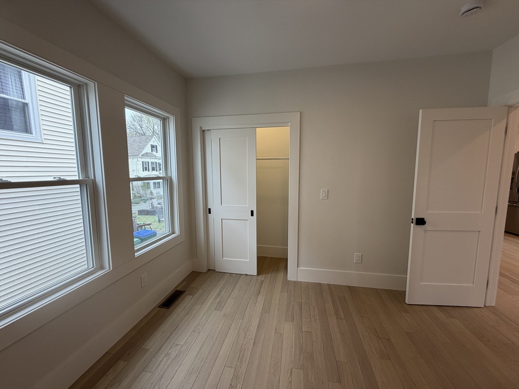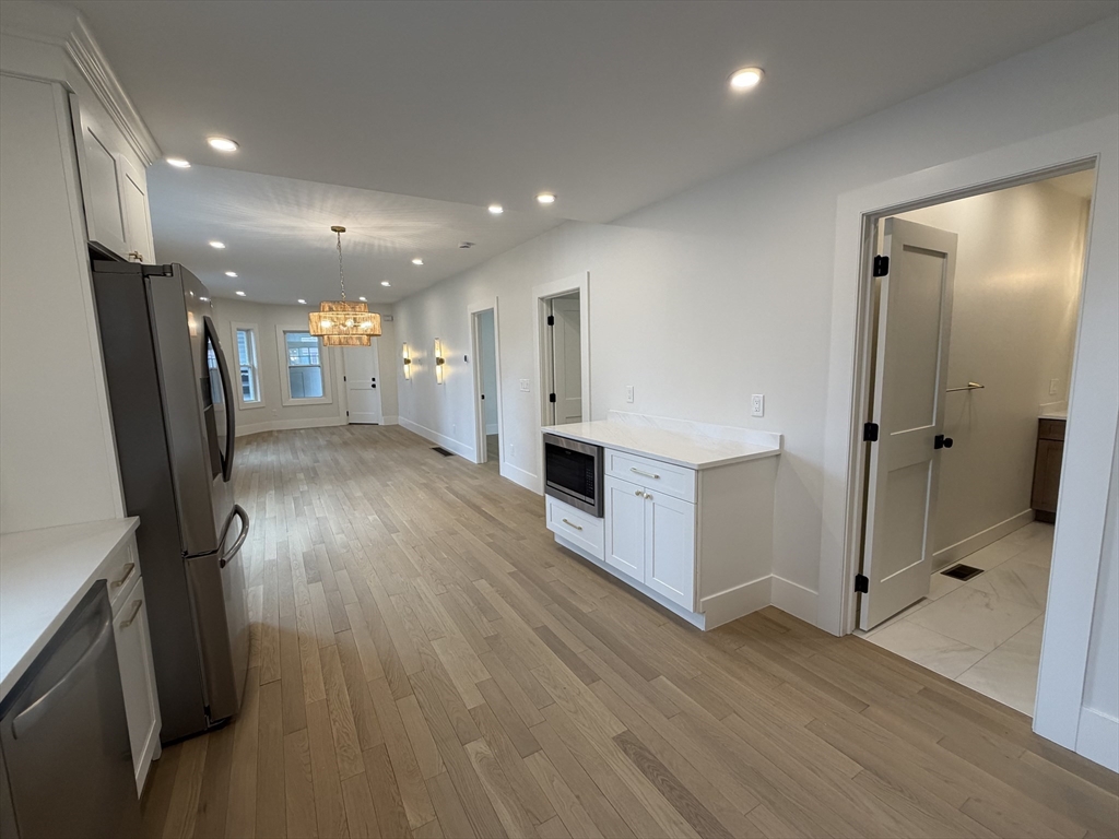 Be the first to live in this newly renovated multi-level 3-bedroom, 2-bath apartment that blends modern elegance with functional design on quiet side street on the Medford/Somerville line.The main level open-concept combines living room, dining room and kitchen. Modern kitchen with white shaker cabinetry, quartz countertops, stainless steel appliances, built-in microwave, brass hardware & quartz backsplash.Two bedrooms w/deep custom closets on the main level. Beautiful full tiled bath w/tub complete main level. Lower-level features primary king-size en-suite with walk-in closet w/custom built-in drawers and shelves. Spa-like bathroom includes double vanity, green subway tile and matte brass rain shower fixtures. Oak hardwood flooring. Central AC. In-Unit laundry. Exclusive private storage space. Exclusive use of backyard space. One assigned off-street parking. Walk to restaurants, gourmet shops, Tufts Green Line, Ball Sq,/Magoun Sq. Bus to Sullivan Station at end of street. No pets.