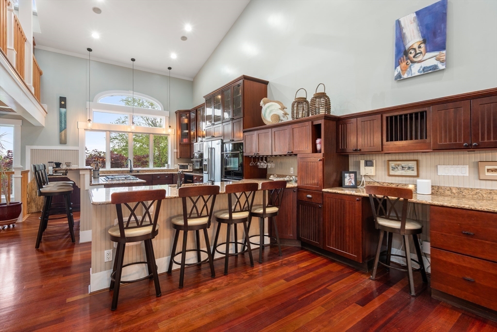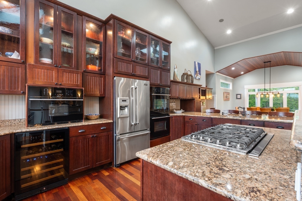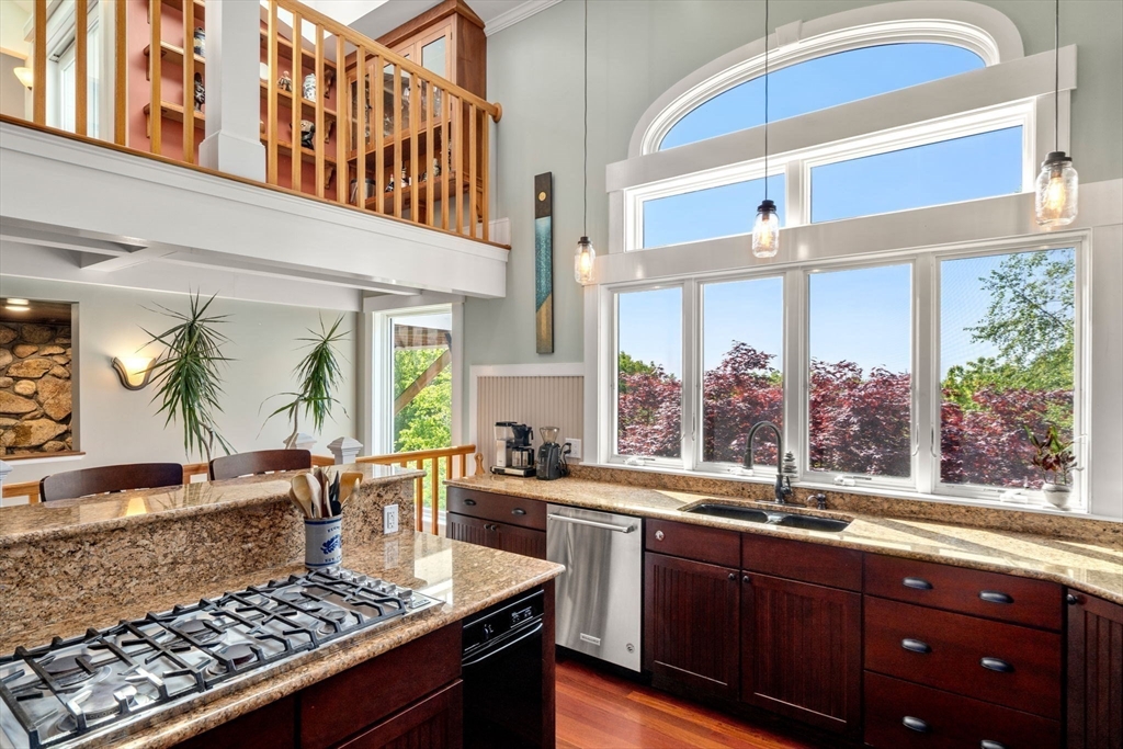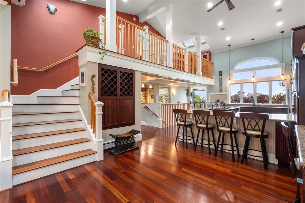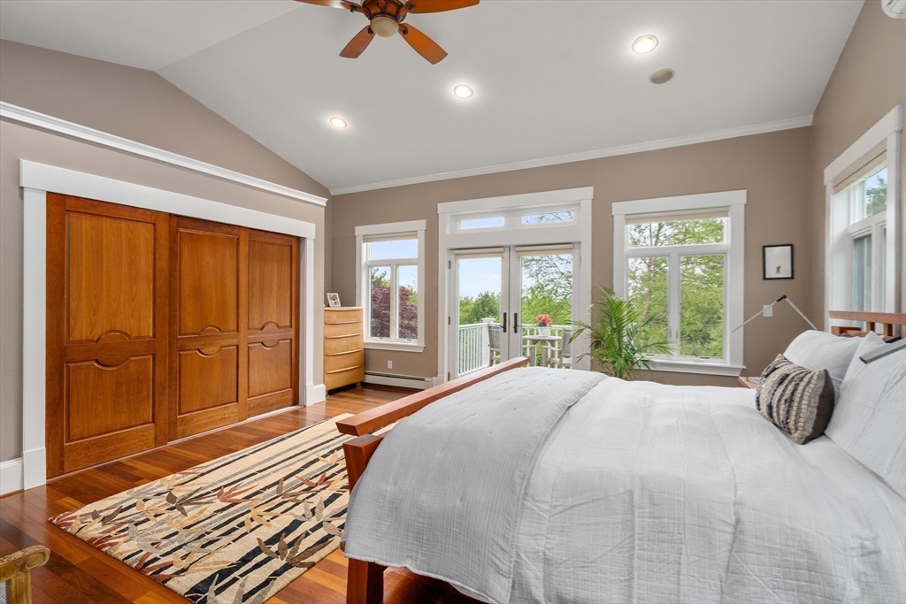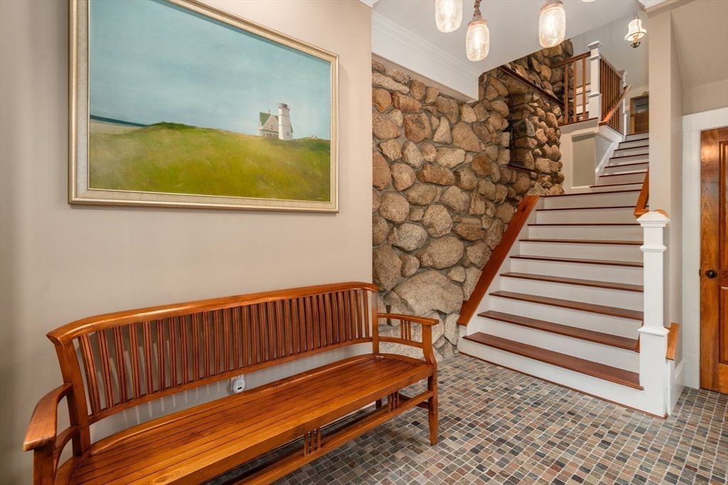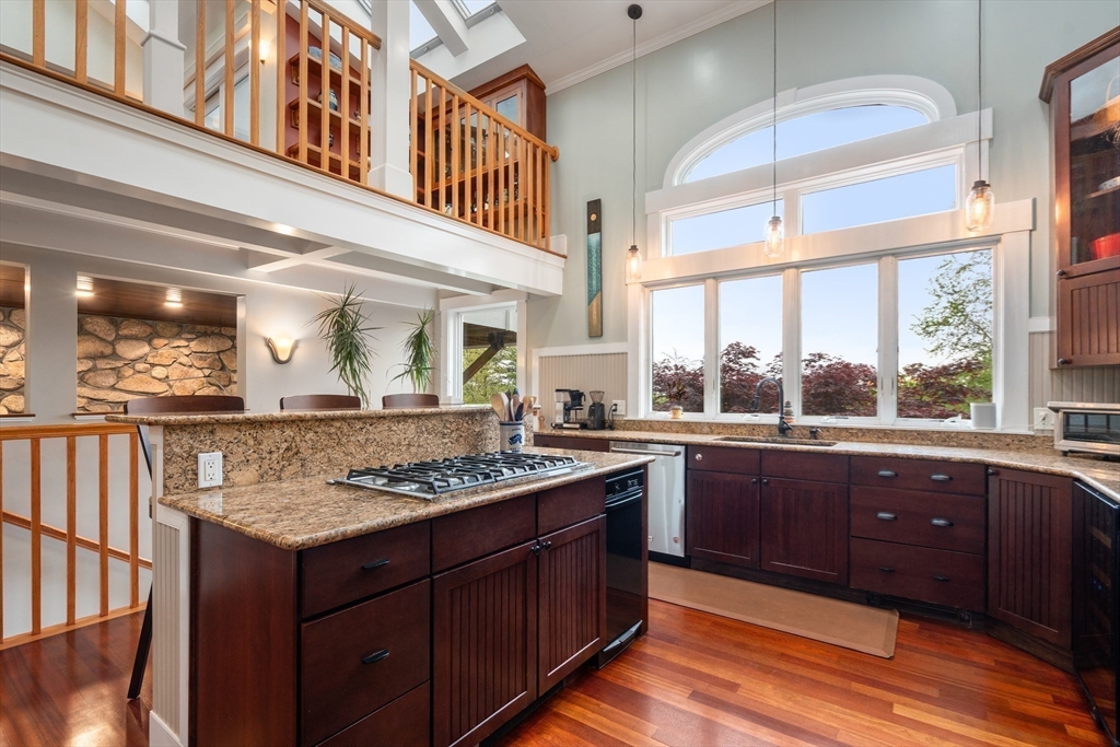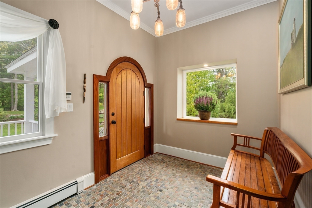 Privacy abounds in this one-of-a-kind breath-taking hilltop contemporary sited on 16+ acres that boasts captivating ocean views and lush rolling lawns. An open floor plan integrates the spacious eat-in kitchen, formal dining area, and cozy family room. Expansive windows and ceilings flood the home with natural light. A living room with a bucolic fieldstone fireplace offers elegant entertaining space and a wraparound deck to enjoy outdoor living with sea breezes and panoramas of the treetops.This 4-bedroom 3-bath home features a generous primary suite with a private ocean view balcony and 3 remodeled bedrooms. Added highlights include a tasteful home office built into the historical stone tower and an attached two-car garage. With walking trails and beaches nearby and easy access to Rte. 128, this charming home nestled in the natural beauty of a private enclave presents a unique opportunity that’s not to be missed.
