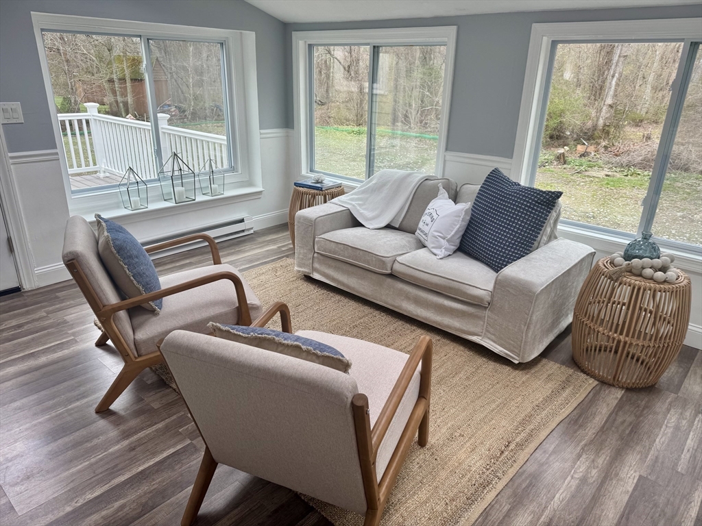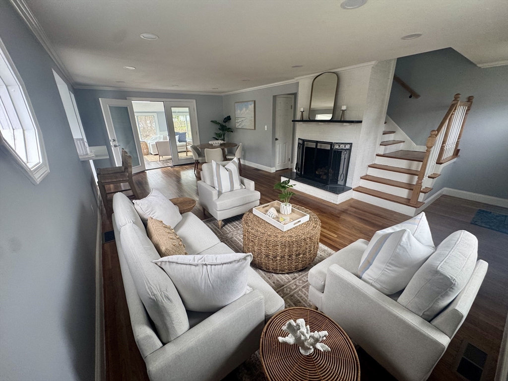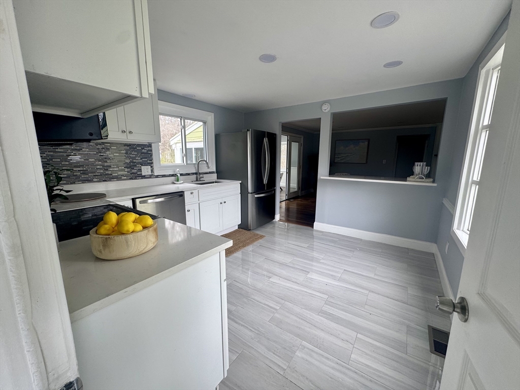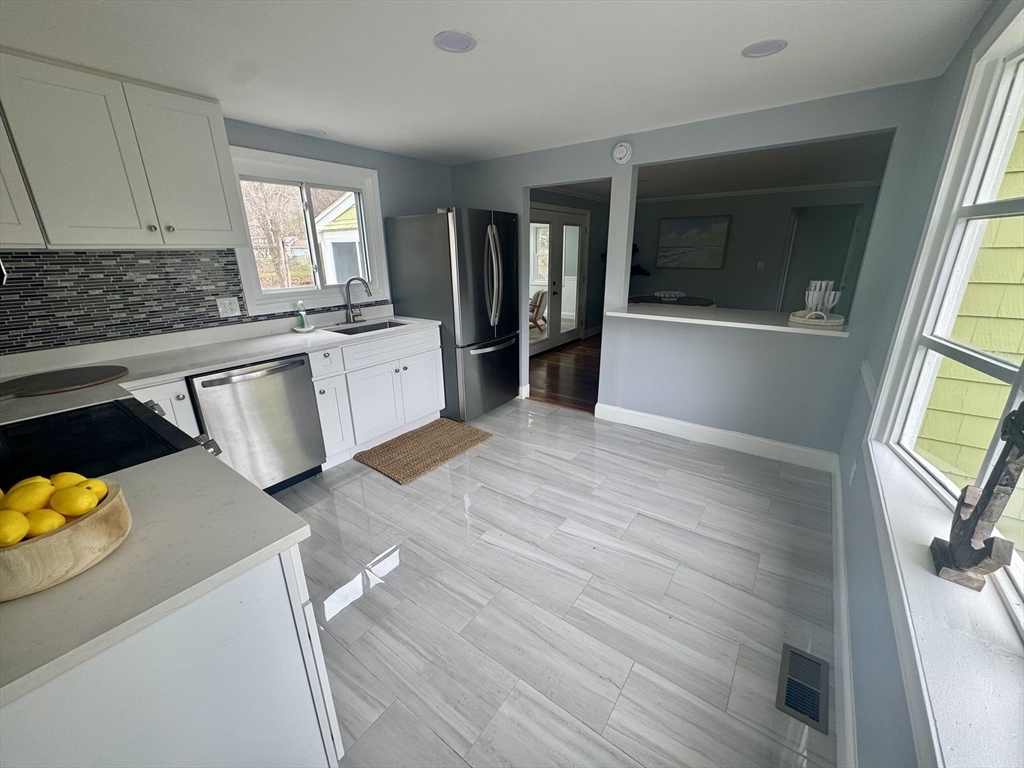 Welcome to this beautifully renovated ~1700 SF 3 bed / 2 full bath adorable Cape on a generous half-acre parcel. Every system is refreshed — new roof, new septic, new HVAC, and water heater (2025) — ensuring peace of mind for years. First floor: Step inside to a bright, open flow featuring a brand-new kitchen, stainless appliances, quartz tops. The living room’s gleaming hardwood floors and cozy fireplace are warm and inviting. A spacious four-season sunroom ideal for hosting or relaxing, a first floor bedroom, a bonus room for home office or to suit your needs plus a handy first floor full bath. Upstairs: 2 spacious bedrooms and remodeled bathroom finish this move-in-ready gem. Enjoy the outdoors with a massive yard, new composite deck, and attached garage. Great storage throughout. A Tremendous Value in Marshfield! Convenient to schools, highway, shopping, beaches, restaurants, and all that Marshfield has to offer!
