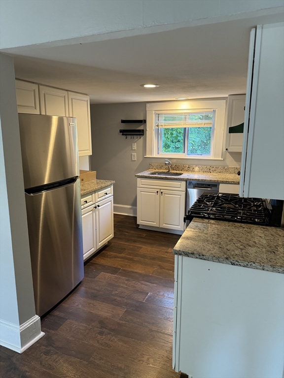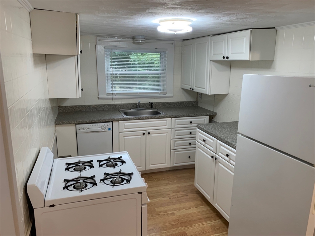 Excellent investment opportunity! This well-maintained three-family property is located in a desirable residential neighborhood of Wakefield on a quiet, tree-lined street. The spacious first-floor unit features three bedrooms, a newer kitchen, refinished hardwood floors, and a welcoming front porch. Enjoy an expansive open-concept layout connecting the kitchen and dining area, perfect for modern living. The property offers driveway and garage parking, ample storage, and a large backyard. Conveniently situated within walking distance to the commuter rail, providing easy access to downtown Boston in under 30 minutes, as well as close proximity to the town center, Crystal Lake, and Lake Quannapowitt. Additional highlights include hardwood flooring in the bedrooms, laminate flooring in the living room and kitchen, and a freshly painted interior. The kitchen is clean and functional, equipped with a gas range, dishwasher, and refrigerator. Shared laundry is also available. This is a must-see