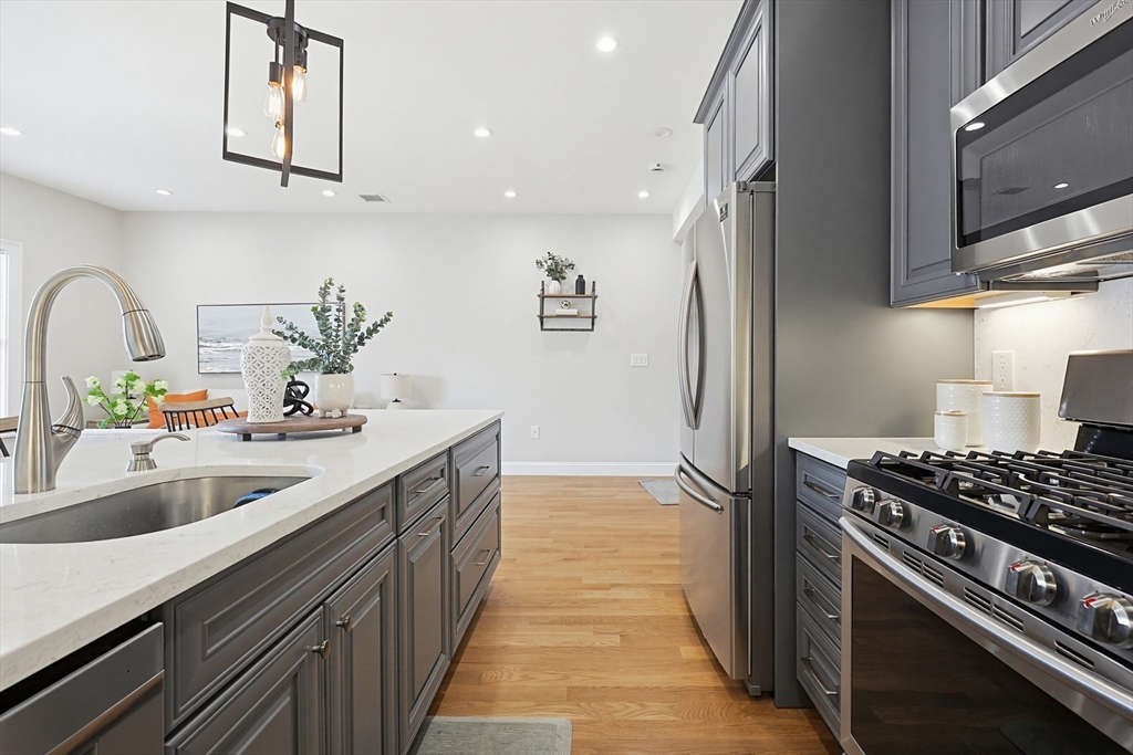 Beautiful & spacious 3 br and 2 bath condo (apox 1600 SF) 2 levels H/W floors throughout! 5 years old, 2 large decks plus private roof deck with Boston skyline views. Easy walk to T, beach & greenway. Only 2 units in building. If you're looking for space & location this is it!