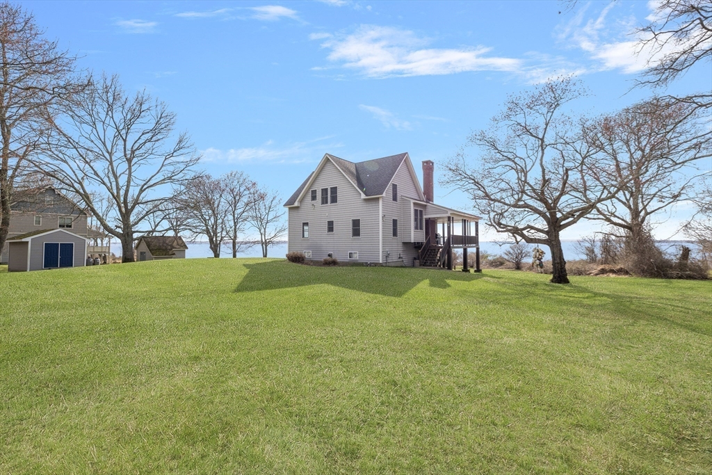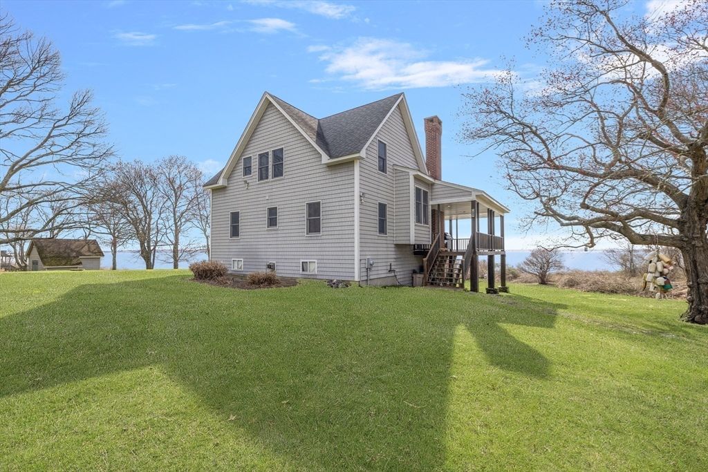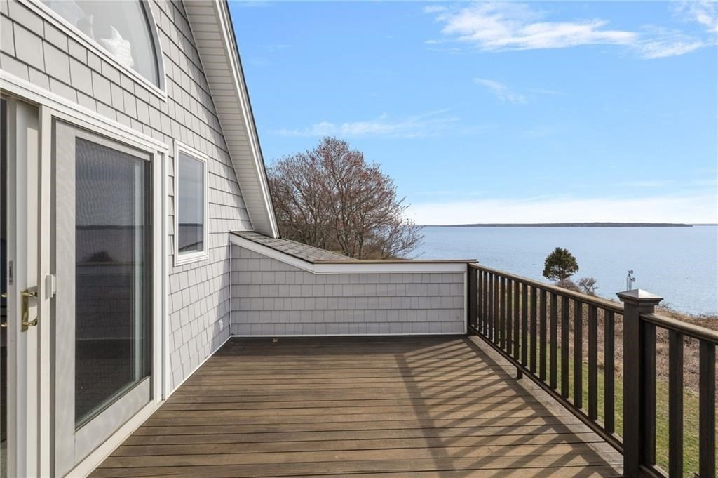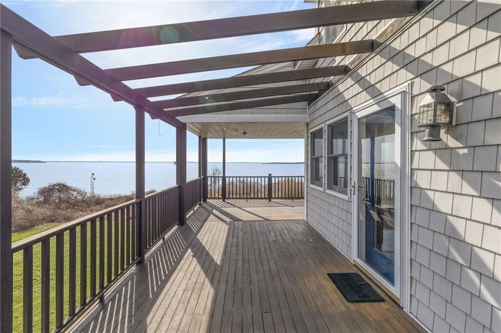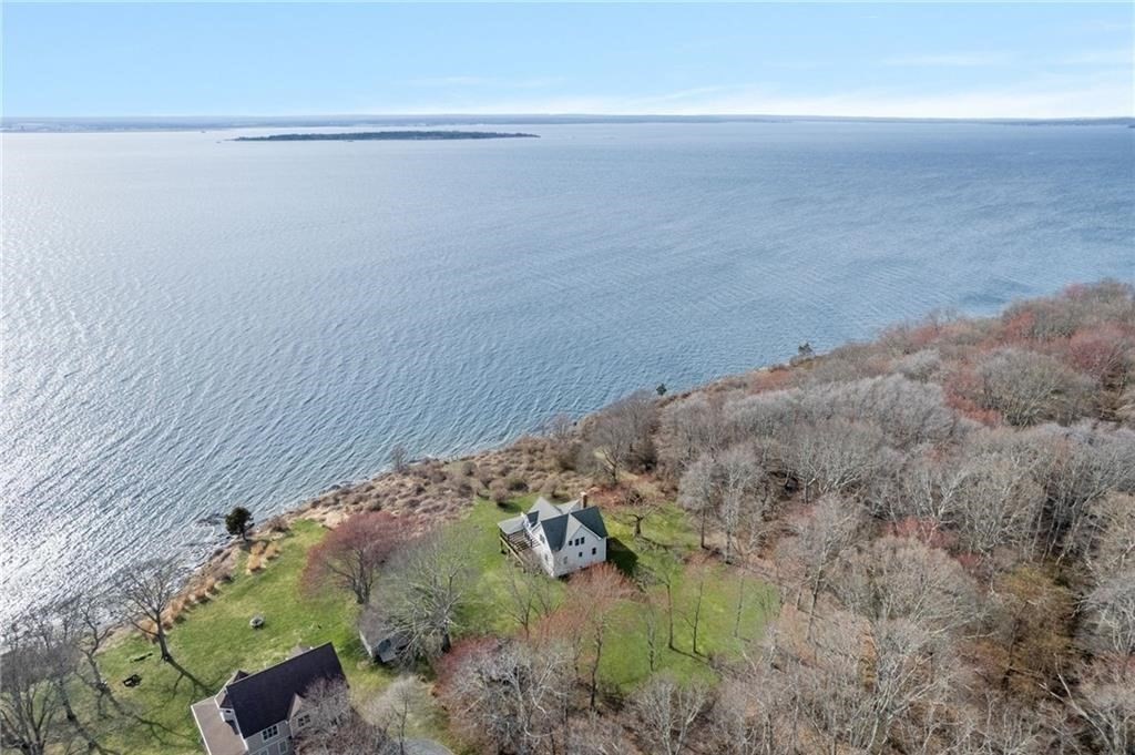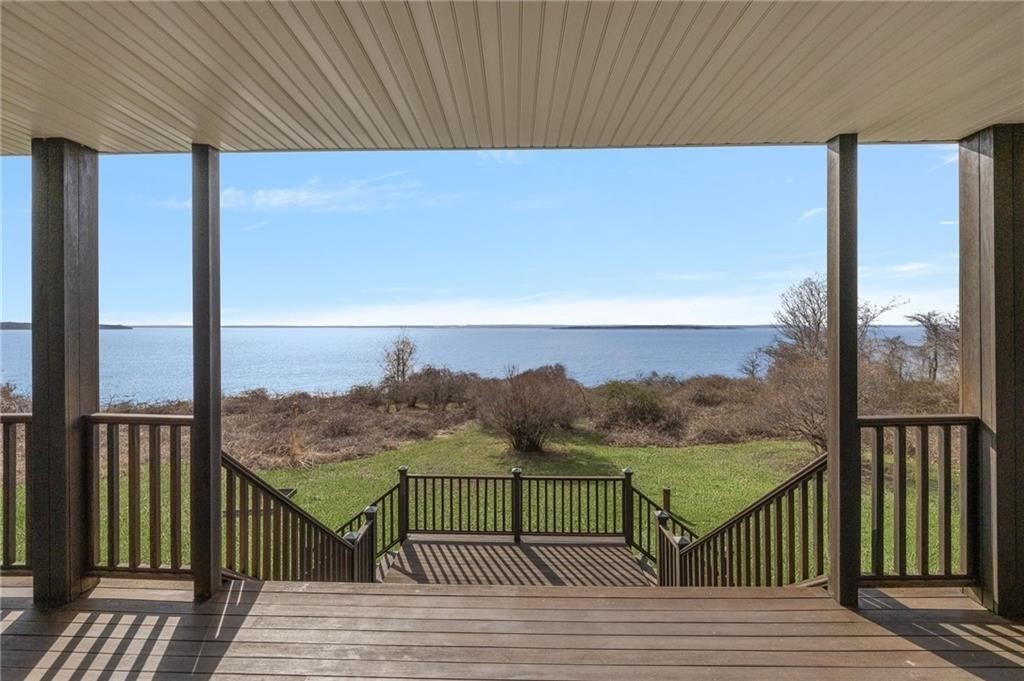 Rare opportunity to own a true waterfront property on the west side of Prudence Island — offering privacy, space, and seamless indoor-outdoor coastal living with the water just steps away. Set on just under an acre with ownership extending to the high tide line, this 3-bedroom, 2-bath home, built in the early 2000s, captures the essence of quiet coastal living. The layout is designed to maximize both the views and functionality. The second-floor primary suite is privately positioned with its own expansive deck, creating a peaceful retreat to take in sweeping west-facing sunsets over the bay. The main level offers comfortable living space with an easy flow that opens directly to the home’s outdoor areas. Designed as a true extension of the living space, the home features over 600 sq ft of wraparound decking spanning three sides, ideal for entertaining, dining, and relaxing outdoors, with a generous yard that extends toward the water. Outside, enjoy stairs leading directly to the water,