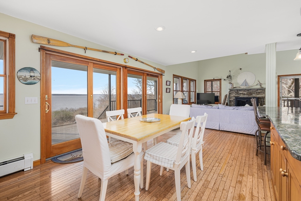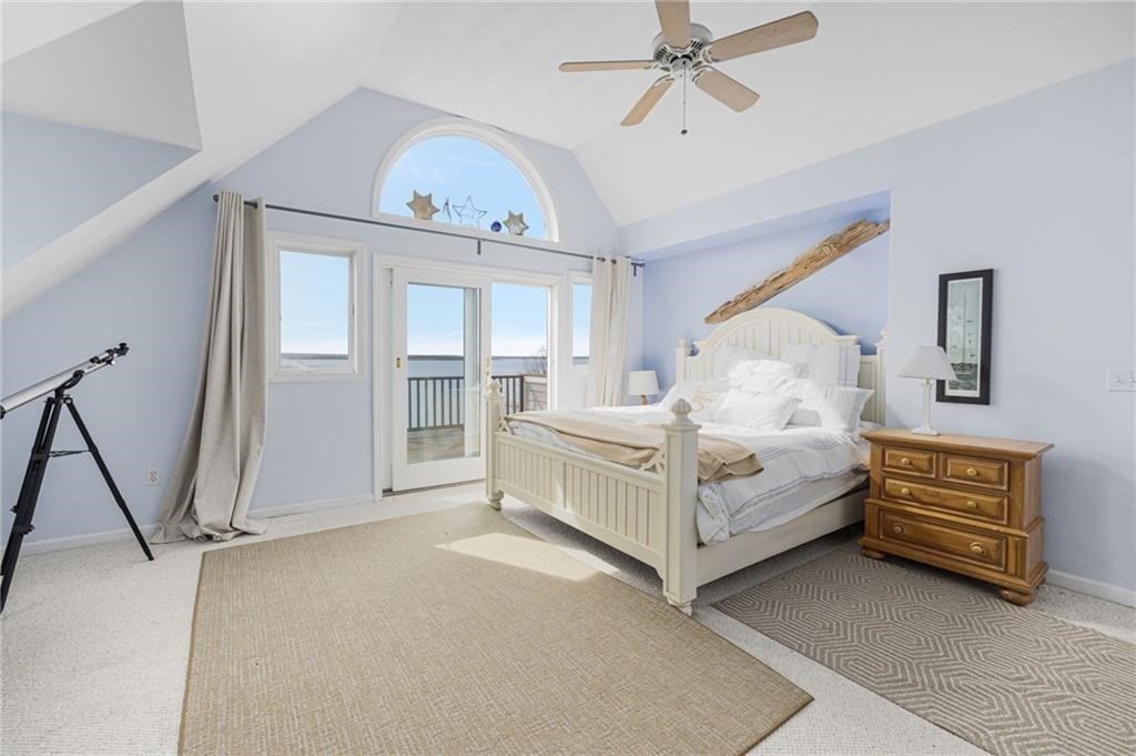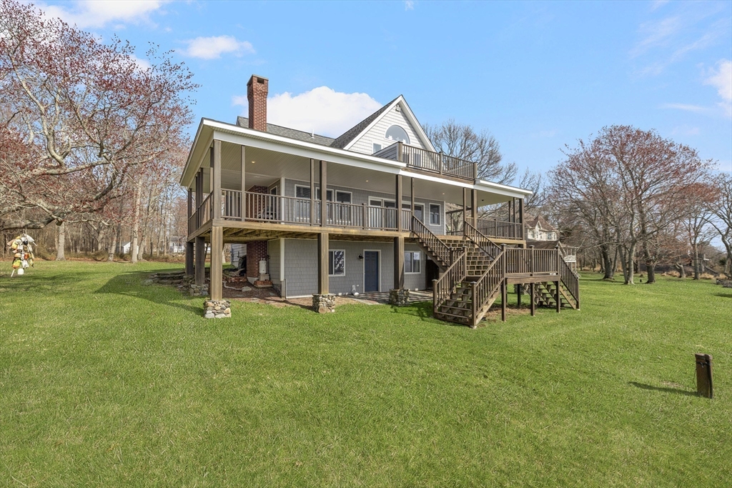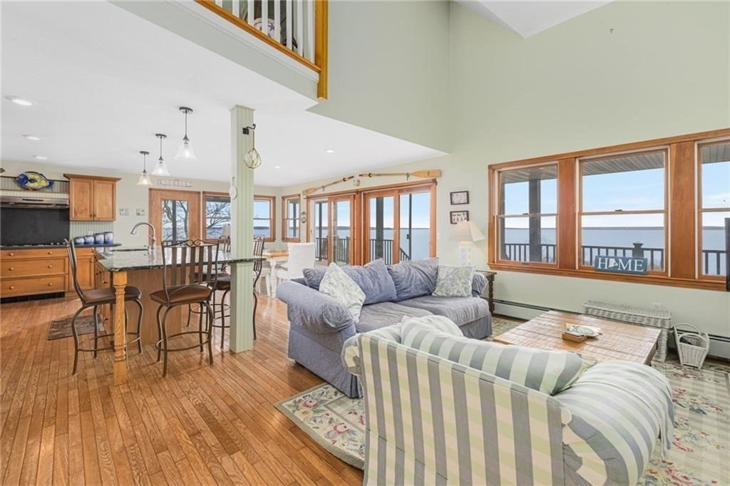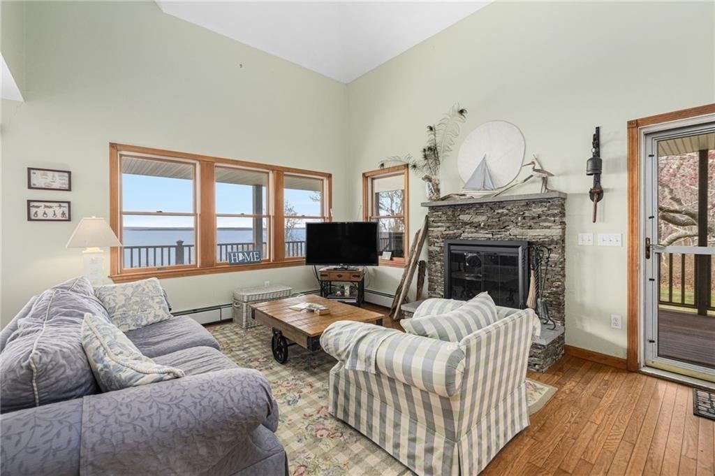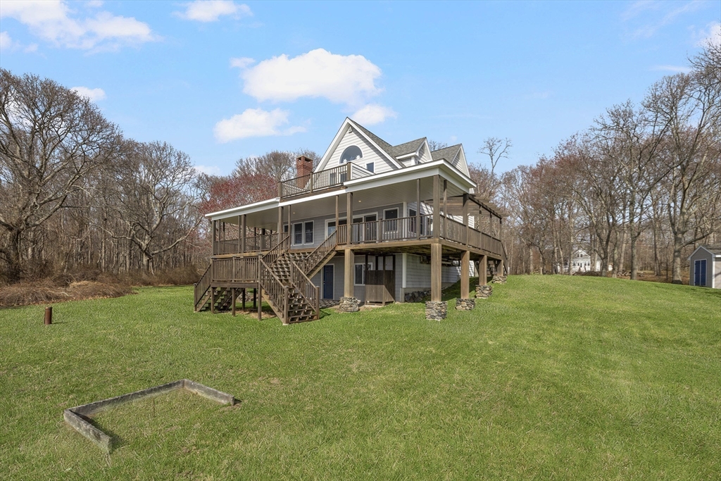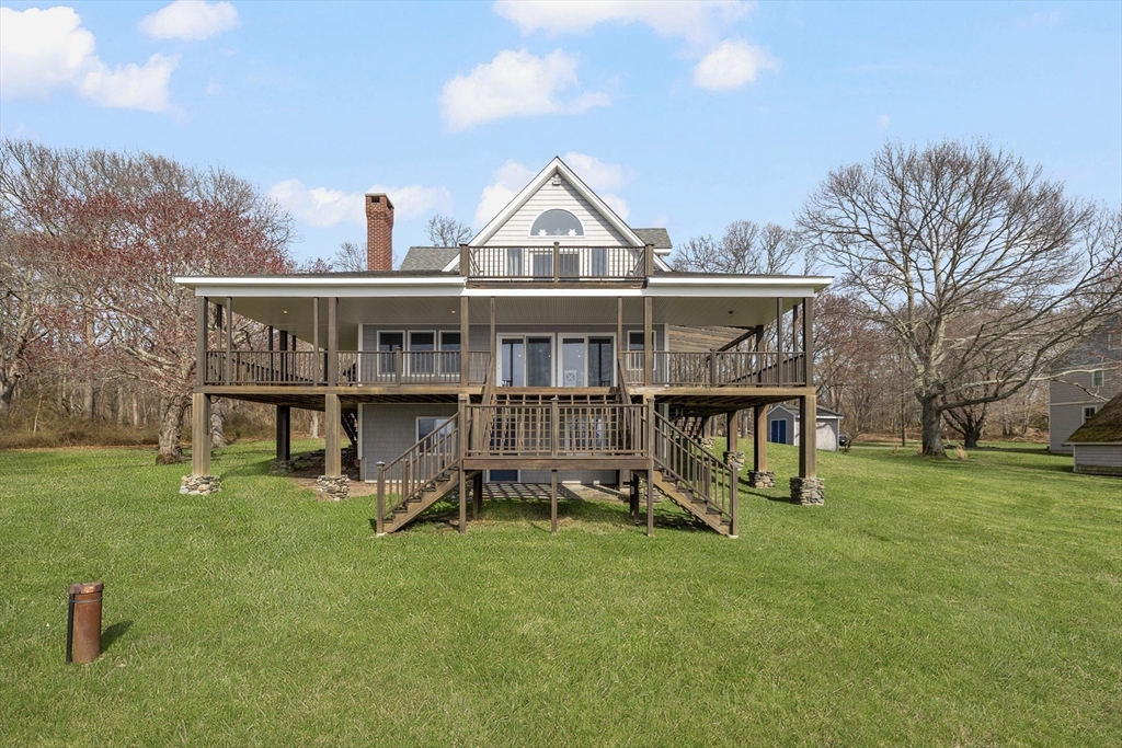 Rare opportunity to own a true waterfront property on the west side of Prudence Island — offering privacy, space, and seamless indoor-outdoor coastal living with the water just steps away. Set on just under an acre with ownership extending to the high tide line, this 3-bedroom, 2-bath home, built in the early 2000s, captures the essence of quiet coastal living. The layout is designed to maximize both the views and functionality. The second-floor primary suite is privately positioned with its own expansive deck, creating a peaceful retreat to take in sweeping west-facing sunsets over the bay. The main level offers comfortable living space with an easy flow that opens directly to the home’s outdoor areas. Designed as a true extension of the living space, the home features over 600 sq ft of wraparound decking spanning three sides, ideal for entertaining, dining, and relaxing outdoors, with a generous yard that extends toward the water. Outside, enjoy stairs leading directly to the water,