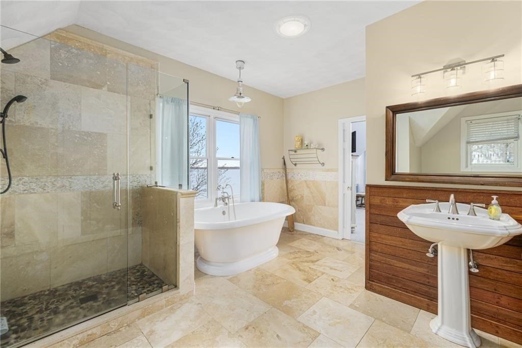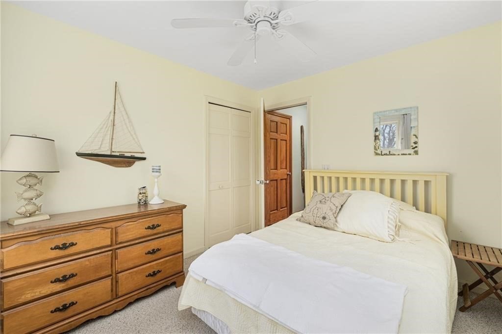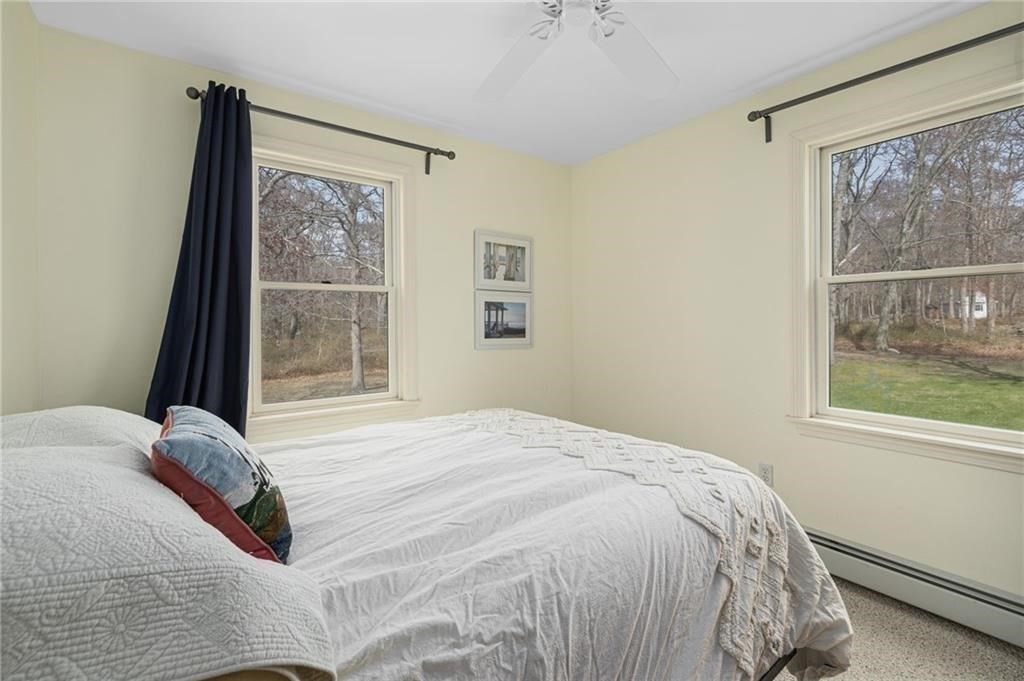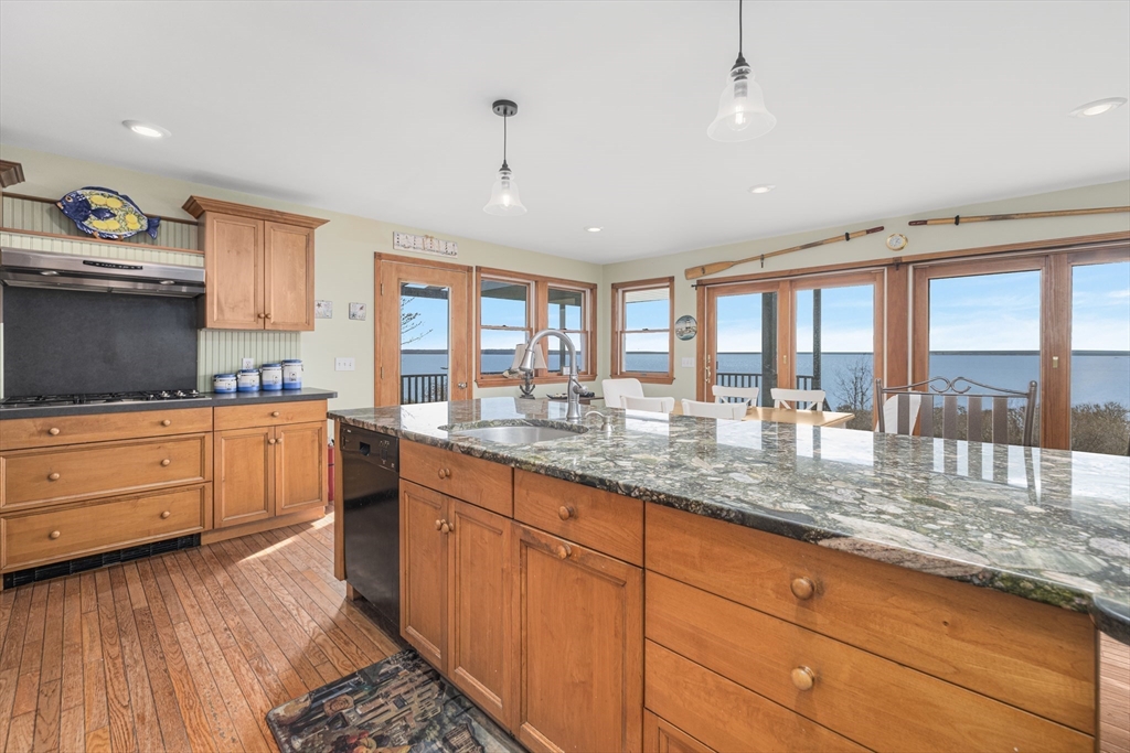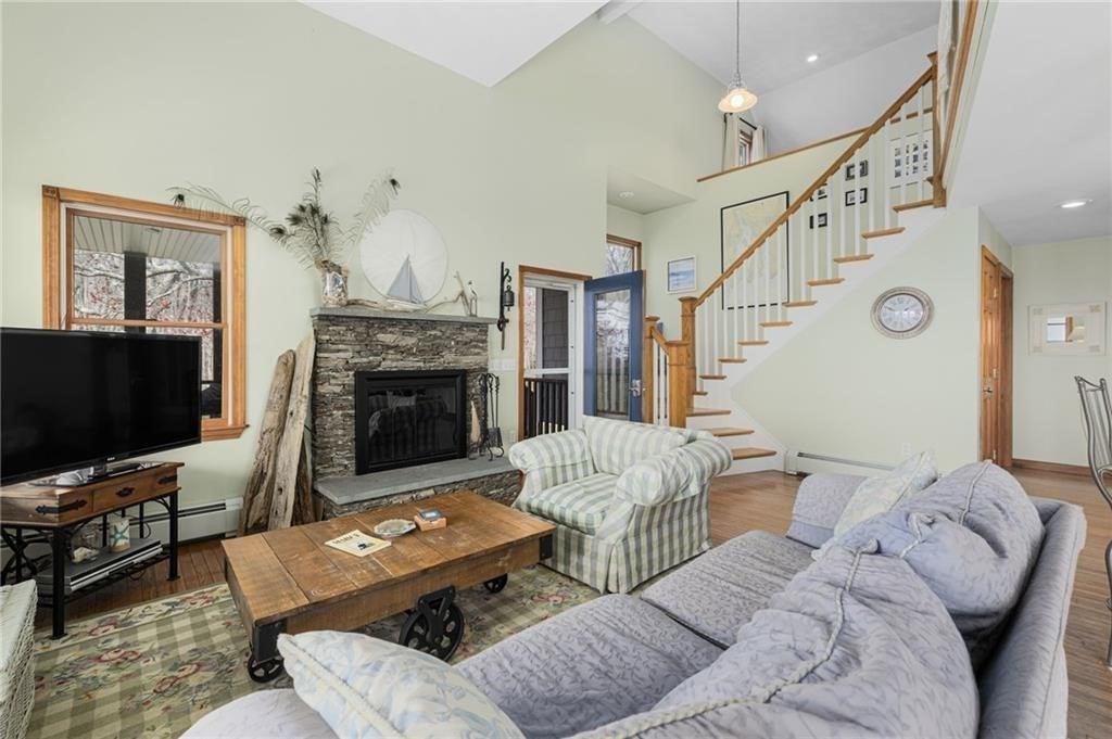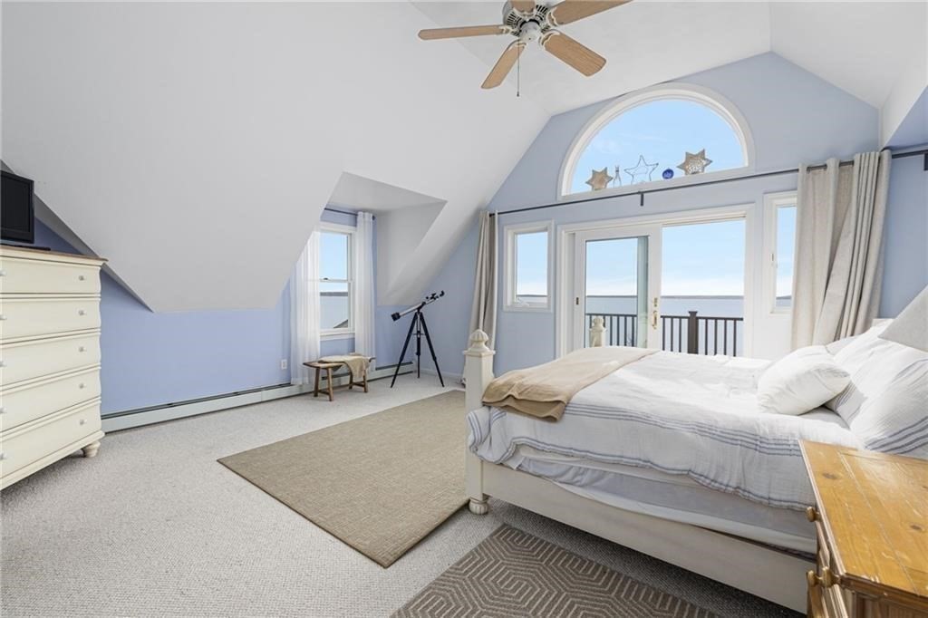 Rare opportunity to own a true waterfront property on the west side of Prudence Island — offering privacy, space, and seamless indoor-outdoor coastal living with the water just steps away. Set on just under an acre with ownership extending to the high tide line, this 3-bedroom, 2-bath home, built in the early 2000s, captures the essence of quiet coastal living. The layout is designed to maximize both the views and functionality. The second-floor primary suite is privately positioned with its own expansive deck, creating a peaceful retreat to take in sweeping west-facing sunsets over the bay. The main level offers comfortable living space with an easy flow that opens directly to the home’s outdoor areas. Designed as a true extension of the living space, the home features over 600 sq ft of wraparound decking spanning three sides, ideal for entertaining, dining, and relaxing outdoors, with a generous yard that extends toward the water. Outside, enjoy stairs leading directly to the water,