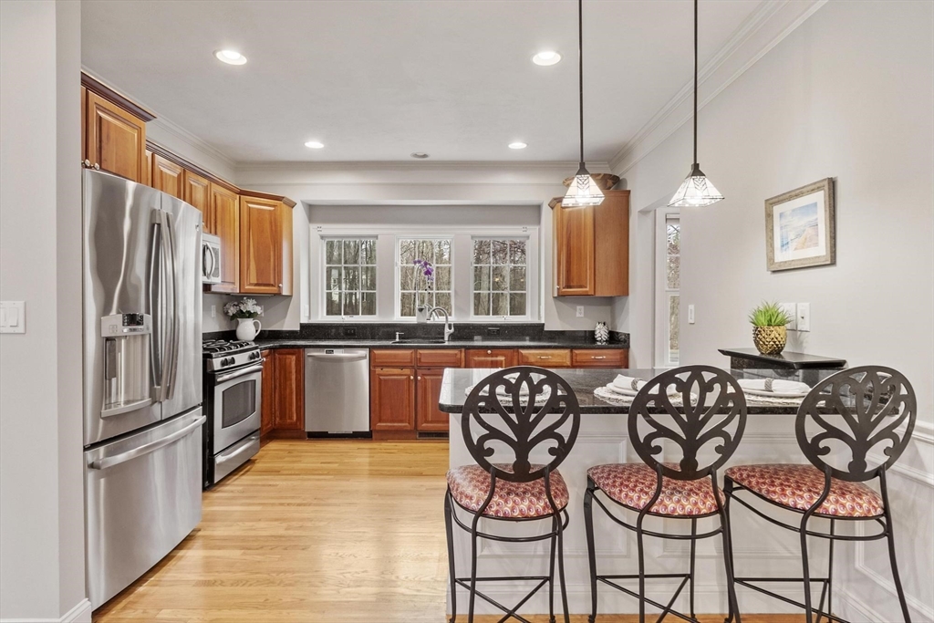 Discover refined, low-maintenance living in one of Hopkinton’s premier 55+ communities. Offering over 2,800 sq ft, this thoughtfully designed home lives expansively, ideal for both everyday comfort and effortless entertaining. The open-concept layout seamlessly connects the kitchen, dining, and family room, extending to a bluestone patio set against a beautiful, private, wooded backdrop. The first-floor primary suite features dual closets and private bath, while the second level offers a spacious family room, full bath, and two additional bedrooms. A finished lower-level recreation room provides added flexibility, and the two-car garage ensures year-round ease. Recent mechanical updates include furnace and water heater. Enjoy close proximity to shopping, dining, and commuter routes, as well as Hopkinton State Park’s trails, beach, and water activities, all near the iconic start of the Boston Marathon with MBTA access.