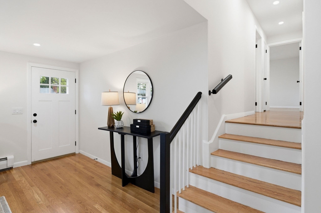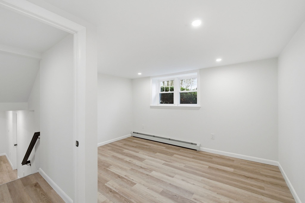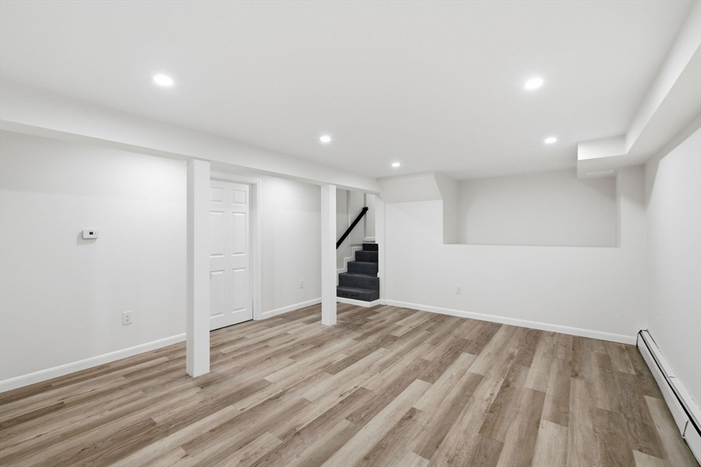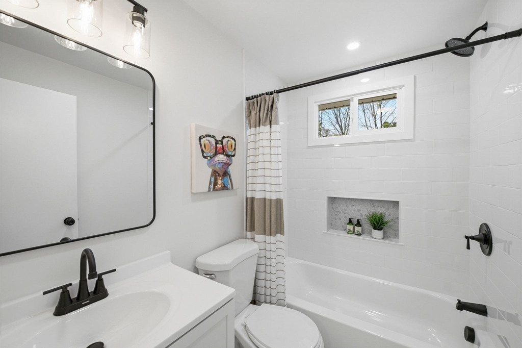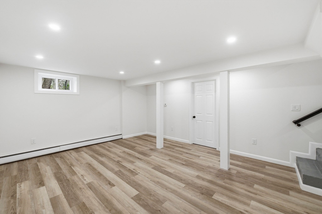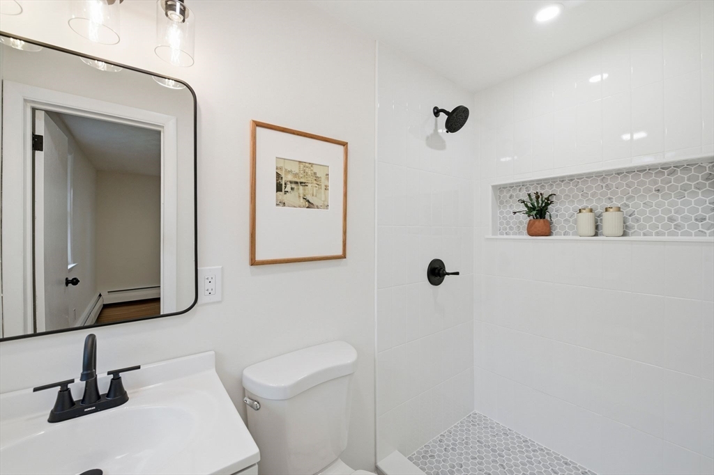 Welcome home to 14 Sycamore Rd in desirable Wakefield! Turnkey 4-bed, 2-full-bath home on .3 acres in a prime location near Rt 95, Rt 1, schools, downtown, and Lake Quannapowitt. The main level features an open-concept layout with a new kitchen boasting white shaker cabinets, quartz countertops, stainless steel appliances, and tile backsplash, flowing into the dining area and family room with a fireplace. The second level offers 3 bedrooms, a full bath, and a primary suite with a tiled shower. The lower level includes a 4th bedroom, laundry, mudroom, and garage access. A finished basement provides flexible space for a living room, office, gym, or playroom. Enjoy a large deck overlooking a level yard. 1-car garage.