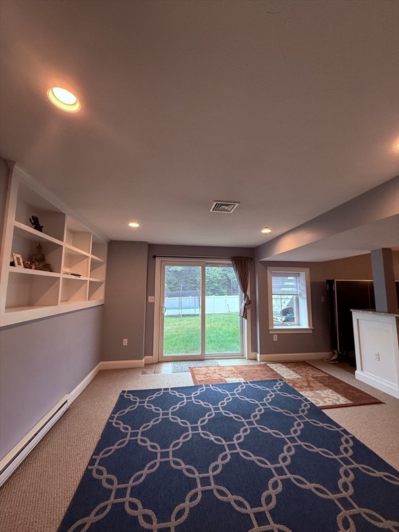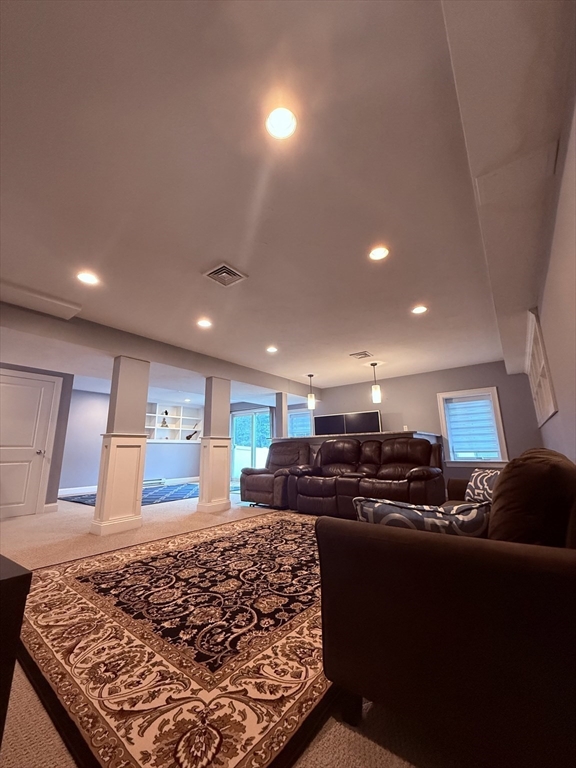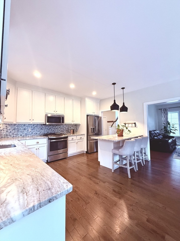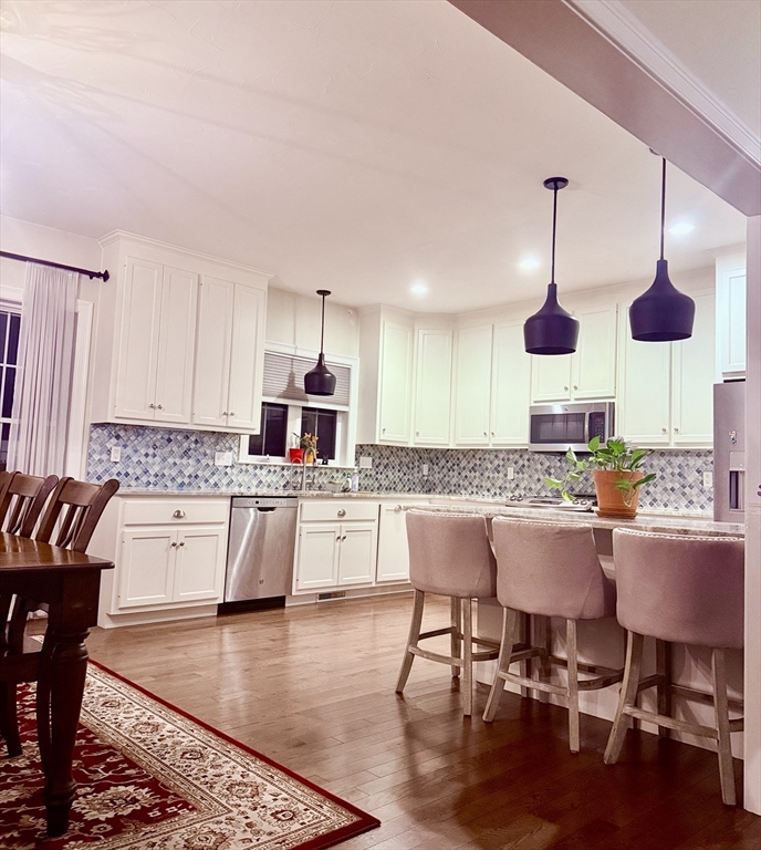 Spacious & Beautiful 3-Bedroom Home in a Prime LocationWelcome to this beautifully maintained 3-bedroom, 2.5-bathroom home, offering a perfect blend of modern elegance, comfort, and functionality. Nestled in a sought-after location within Eagle Brook Village, this home backs up to scenic conservation land with good privacy, walking paths, and Eagle Brook, providing tranquility.With ample living space (including a fully finished walkout lower level), this home features a bright, open floor plan and high-end finishes throughout. The gourmet chef's kitchen is a highlight, boasting a large island, granite countertops, stainless steel appliances, and custom cabinetry that reaches up to the 9-foot ceilings. The kitchen seamlessly flows into the spacious dining area, which opens onto a rear deck, offering stunning views of the fenced backyard and the surrounding woods. A formal living room and a study/den, along with a convenient half bath, complete the first floor.