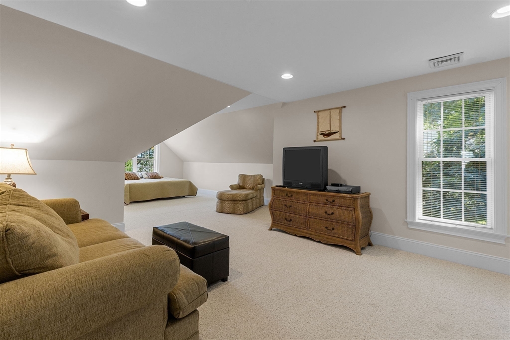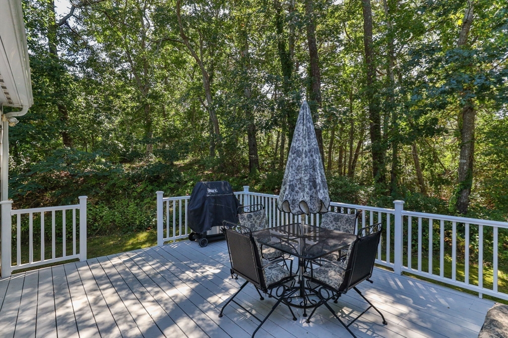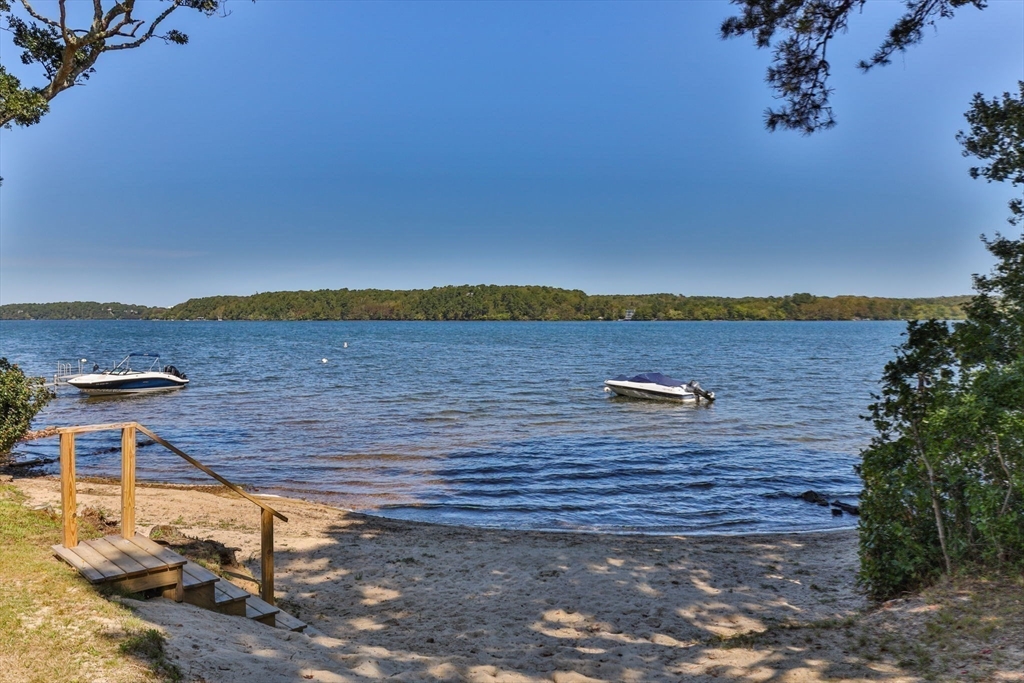Welcome to this beautifully designed home with water views which sits just across the street from Long Pond, offering deeded access to a private neighborhood beach--perfect for swimming and kayaking along with 2 shared moorings. This 3-bedroom, 2.5-bath residence offers the ease of first-floor living, featuring a spacious primary suite and convenient laundry on the main level. Filled with natural light, the home exudes warmth and comfort throughout. The open-concept first floor seamlessly connects the living and dining areas to a well-equipped kitchen, creating an ideal space for both everyday living and entertaining. A three-season porch extends the living area, providing a peaceful spot to relax! Upstairs, you'll find two good sized bedrooms, a full bath, and a large bonus room that can easily serve as a home office, media room, or additional living space. Located in Harwich, it is minutes from beautiful beaches, boutique shops, and a variety of dining options.