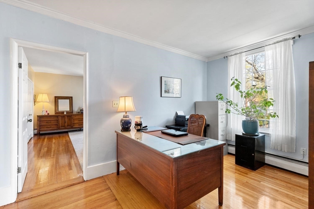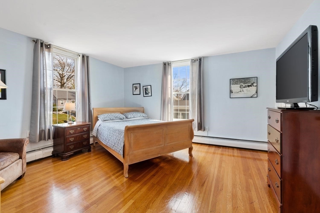 Set in the sought-after Lawrence Estates area of Medford, this stately 9-room home blends classic charm with modern comfort. Featuring 4 bedrooms and 2 baths, it welcomes you with a grand entryway and soaring ceilings. Oversized windows fill the home with natural light, highlighting beautiful hardwood floors throughout. A generous landing doubles as a perfect home office, and a massive second-floor laundry room adds everyday convenience. Ample closets and storage space throughout. Outside, enjoy a beautifully landscaped backyard with a large deck, spacious patio, and outdoor TV—ideal for entertaining. Conveniently located near restaurants, shops, the Green Line, commuter rail, Route 93, and the scenic Middlesex Fells Reservation.