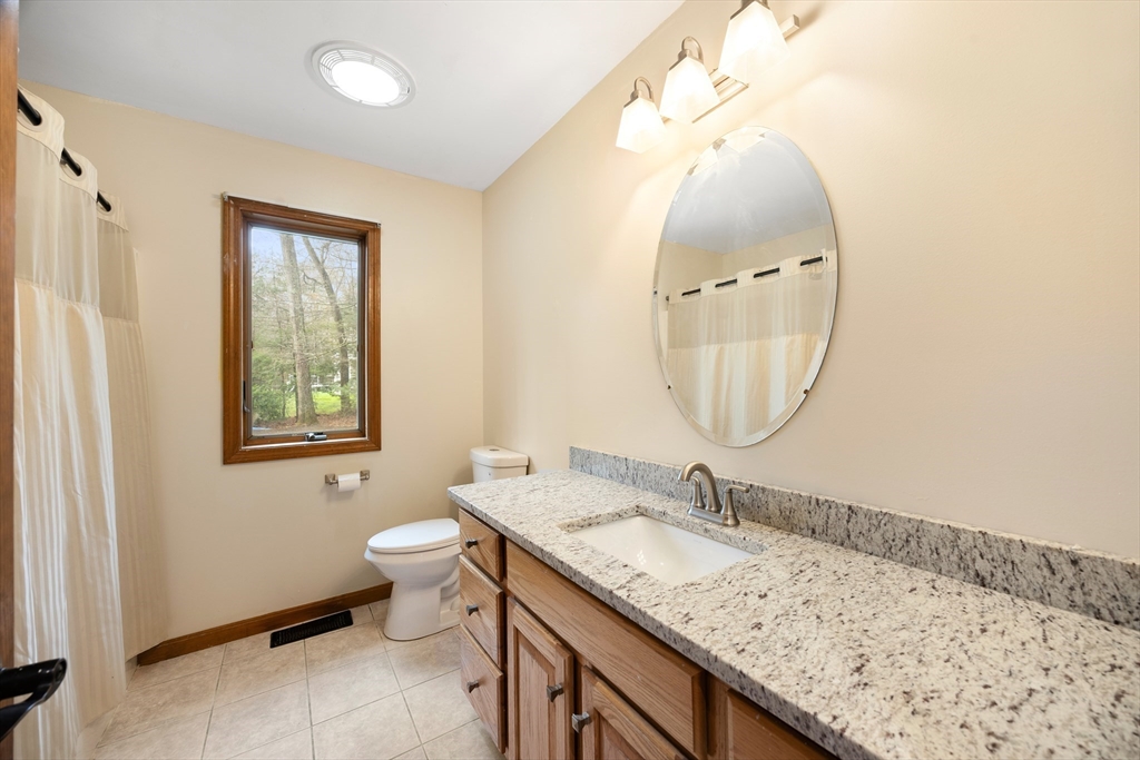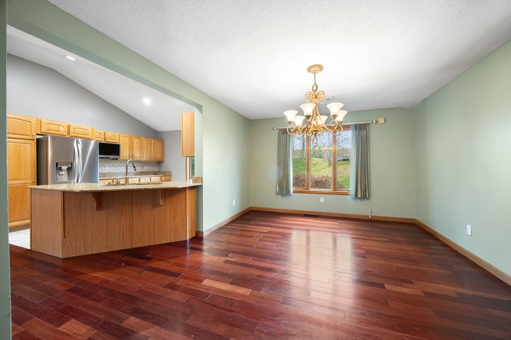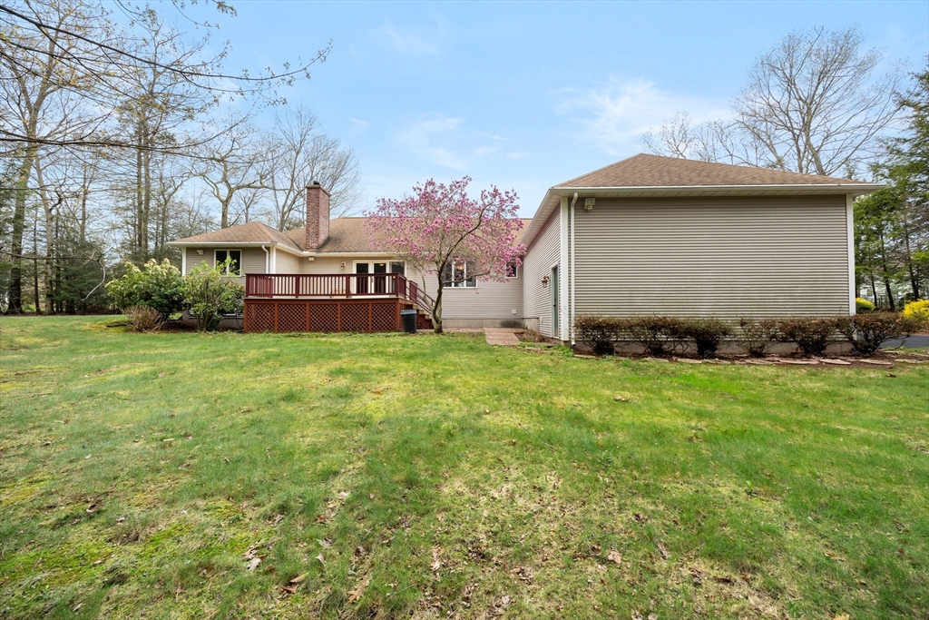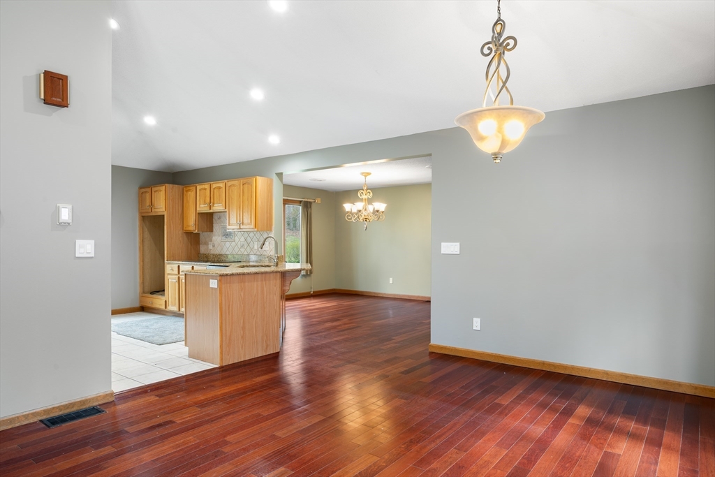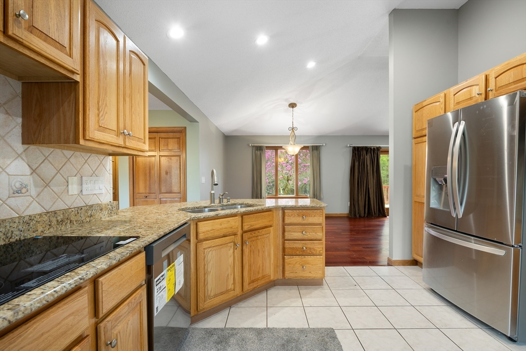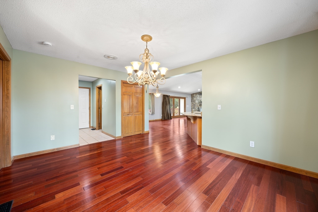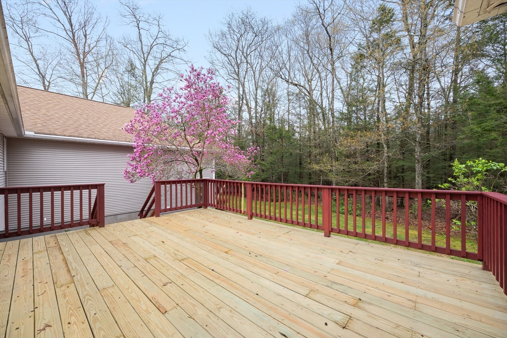 Experience the epitome of modern living in this stunning 3-bedroom oasis, where high-end designs meet functionality. The heart of the home is an impressive sun-soaked open-concept great room with cathedral ceilings, beautiful hardwood floors, a stone fireplace, and a warming woodstove. The sleek chef-inspired kitchen with its wall ovens makes entertaining a breeze, while the split-bedroom design offers maximum privacy for the peaceful primary suite. Enjoy family time or quiet moments in this well-maintained home set back in a private wooded lot, but located close to shopping centers and the Connecticut border.