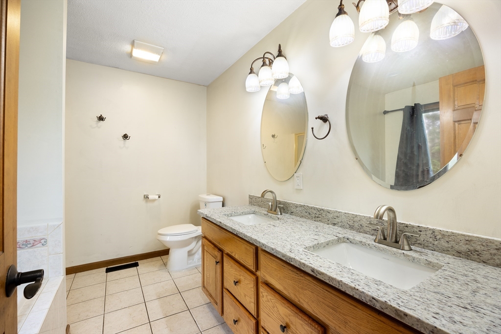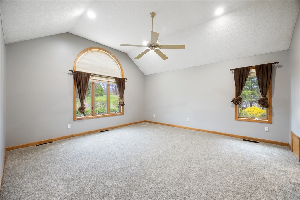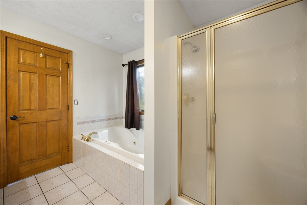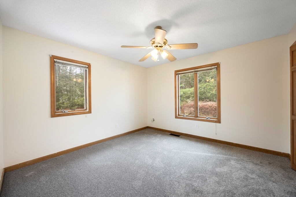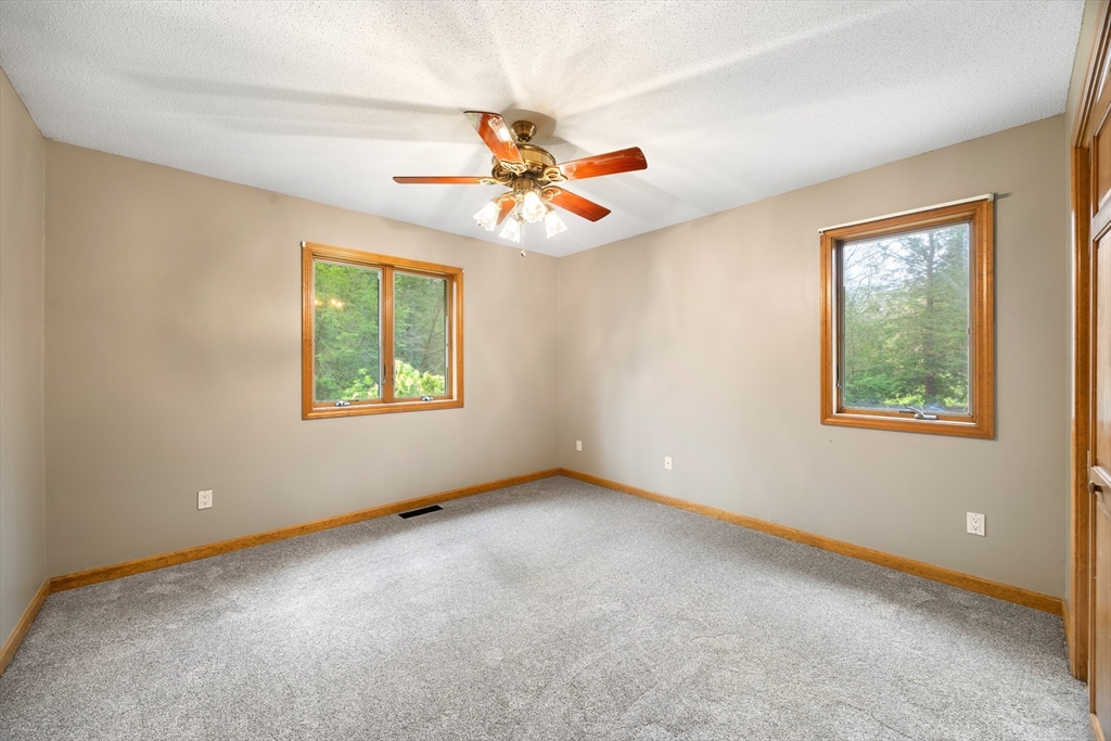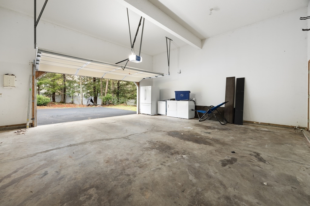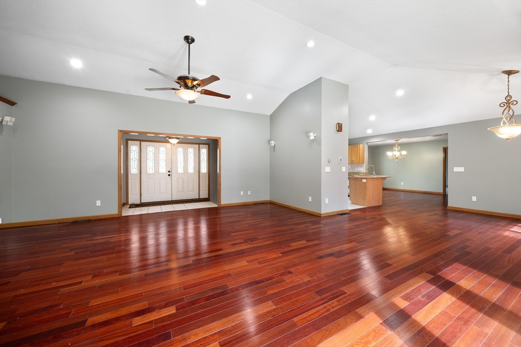 Experience the epitome of modern living in this stunning 3-bedroom oasis, where high-end designs meet functionality. The heart of the home is an impressive sun-soaked open-concept great room with cathedral ceilings, beautiful hardwood floors, a stone fireplace, and a warming woodstove. The sleek chef-inspired kitchen with its wall ovens makes entertaining a breeze, while the split-bedroom design offers maximum privacy for the peaceful primary suite. Enjoy family time or quiet moments in this well-maintained home set back in a private wooded lot, but located close to shopping centers and the Connecticut border.