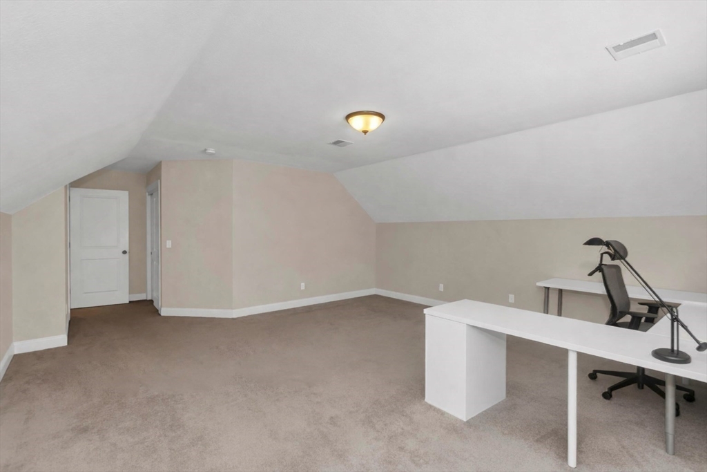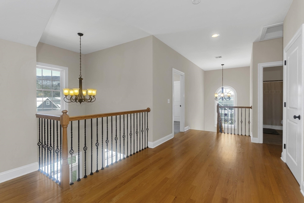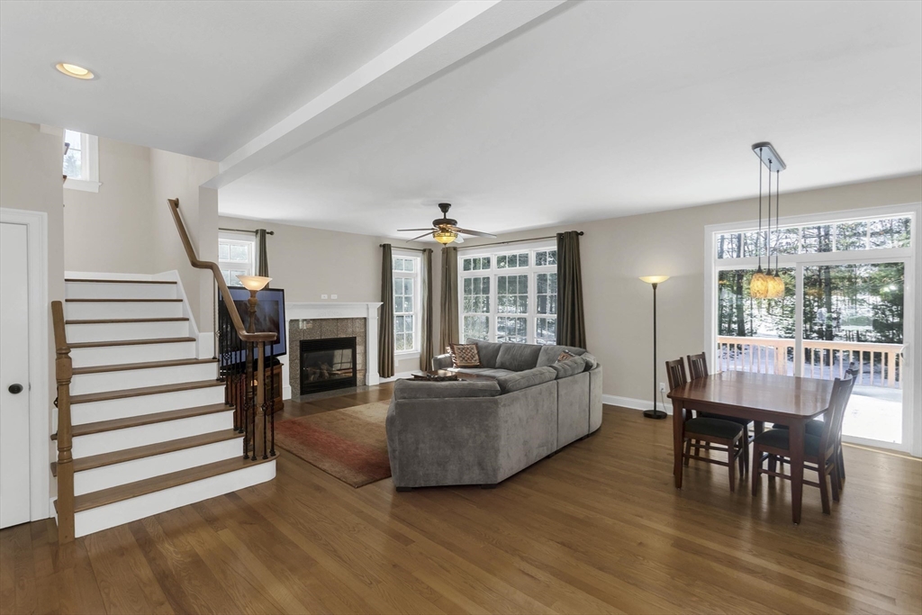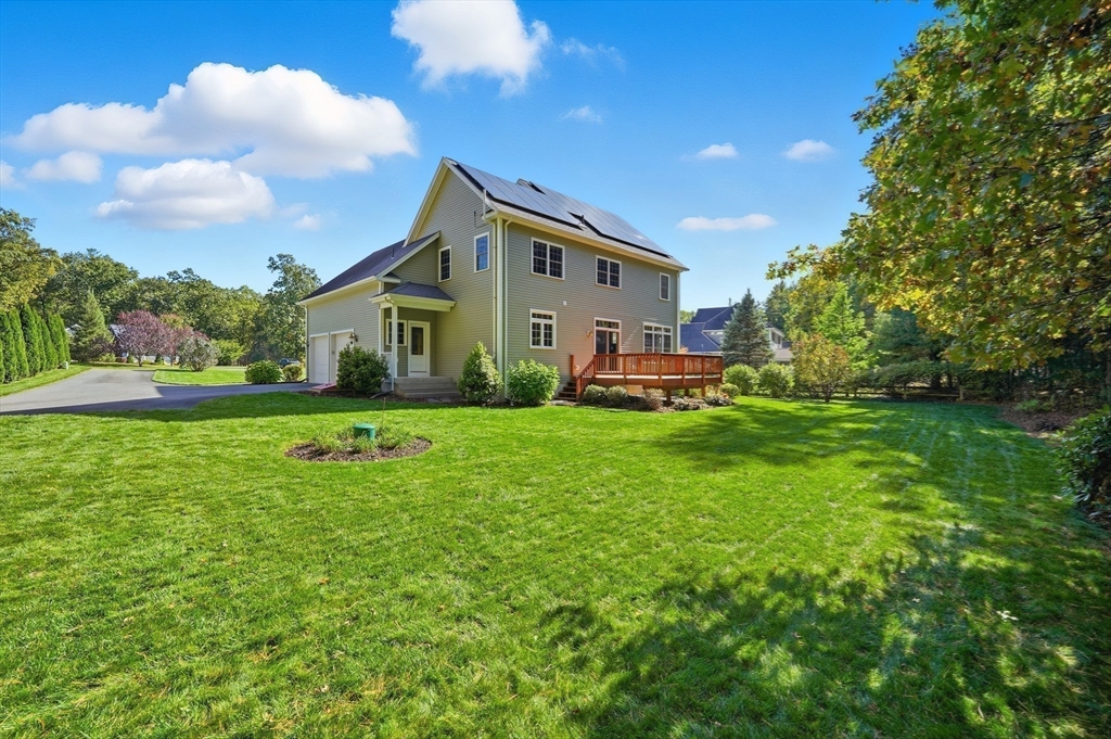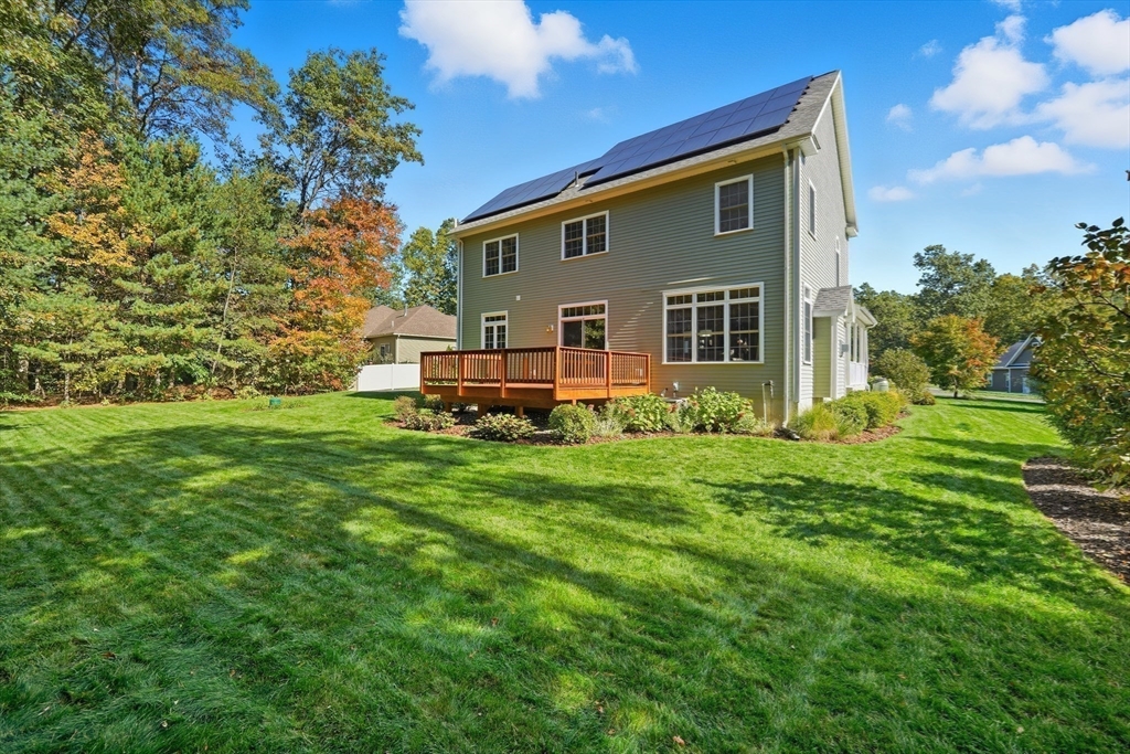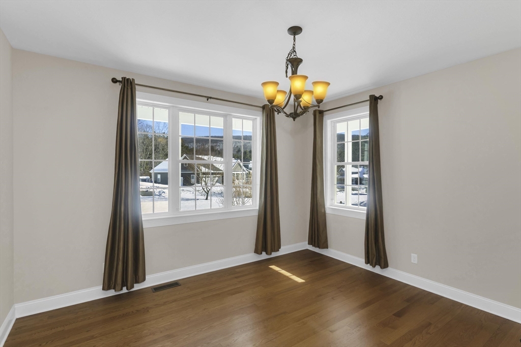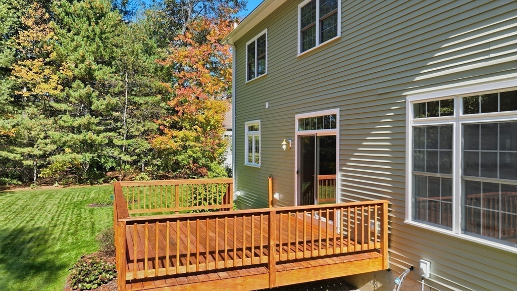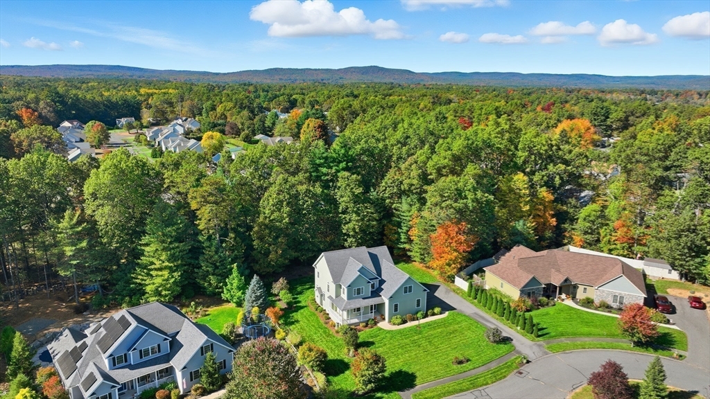 Loved & meticulously maintained, this pristine 4-bedroom, 2.5-bath handsome Colonial is ready for its next chapter. Tucked near the end of the Fox Run cul-de-sac & surrounded by well-appointed landscaping & conservation land, this home offers privacy & peaceful views. The 1st floor features a welcoming entry, formal dining room, and a sun-drenched living room w/ gas fireplace. The kitchen includes granite countertops, upgraded cabinetry, a spacious island, dining area, & a slider to the deck. A half bath, laundry room & mudroom w/ garage access complete the 1st flr. Upstairs you will love the wide hallway w/ storage & balcony overlook, which leads to 3 bedrooms, a full bath & the primary suite, which includes a walk-in closet, dual sinks, jetted tub & separate shower. The unfinished basement allows for future expansion. Enjoy the private yard w/ Mount Tom views, owned solar, EV charger, sprinkler system & lush lawn. Just 3 miles to downtown & easy access to I-91 & Mt Tom trails.
