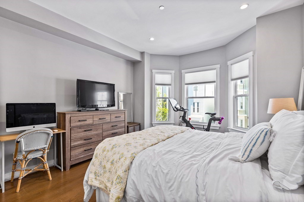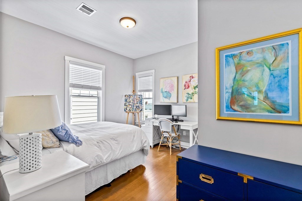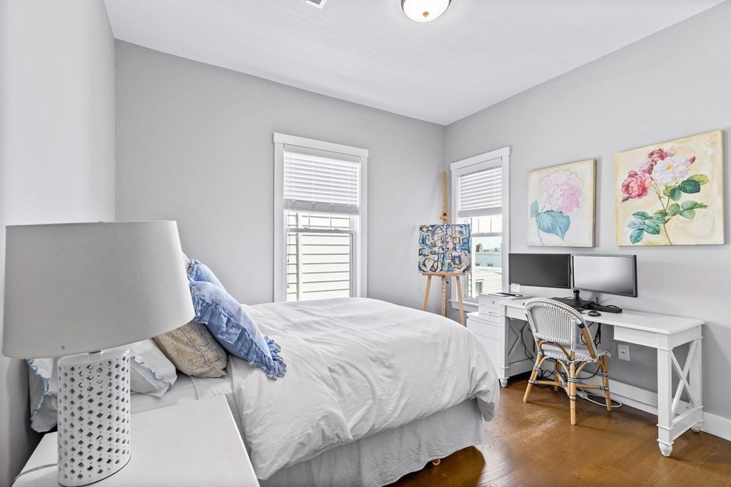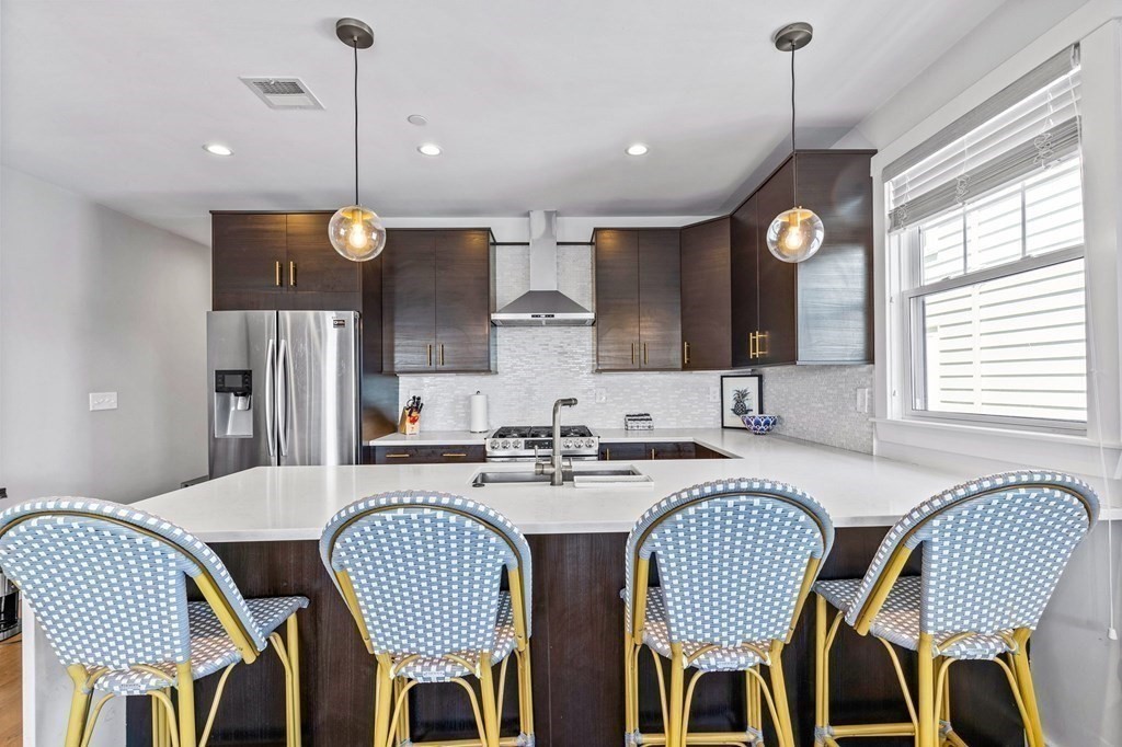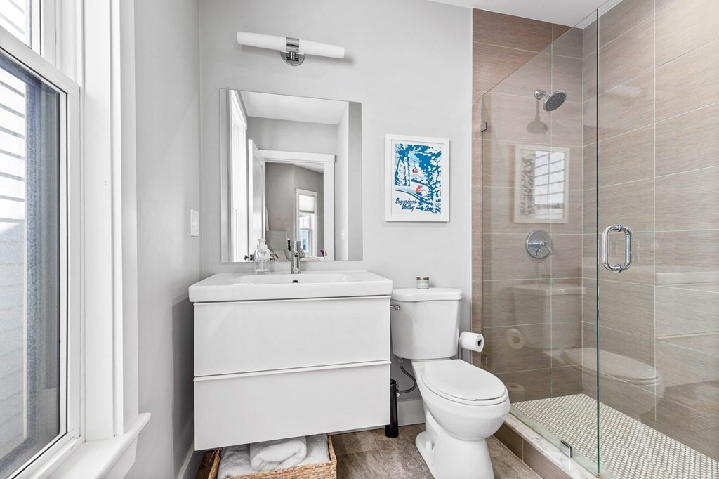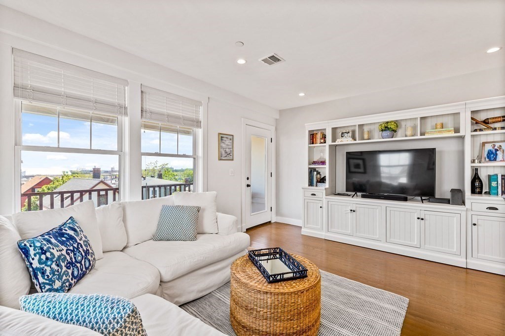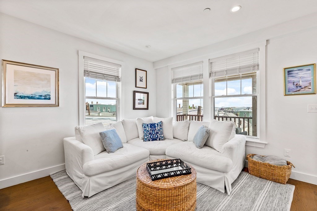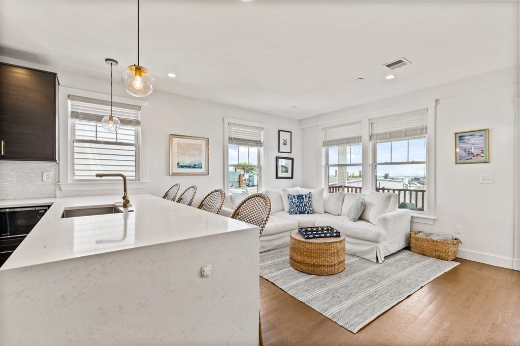 Available May 1st for rent. Recently renovated, 3 Bed / 2 Bath condo located in the vibrant Eagle Hill neighborhood of East Boston. This second floor, 1200+ sqft unit offers a spacious and flexible layout with 10 ft ceilings, great natural light, high-quality finishes and private outdoor space! Entertain guests or relax in an open concept living/dining space with a modern kitchen featuring SS appliances and a marble waterfall island leading to an expansive living room and a private deck with stunning views of Downtown Boston. Unwind in any of the large bedrooms including a primary bedroom with en-suite tiled bathroom and stand-up shower. Additional features include in-unit laundry, ample closet space, central HVAC, second bathroom with a soaking tub, hardwood floors throughout and a private storage room in the basement. Ideally situated with close proximity to the Airport MBTA (0.5 miles), I-90 highway, Logan International Airport, make your commute to and from Downtown Boston easy!