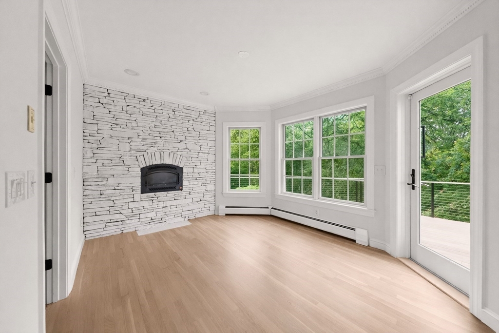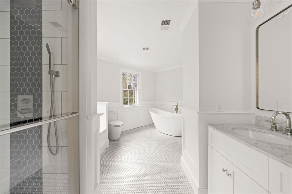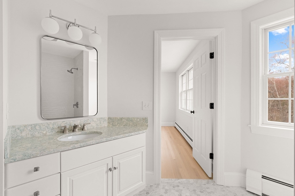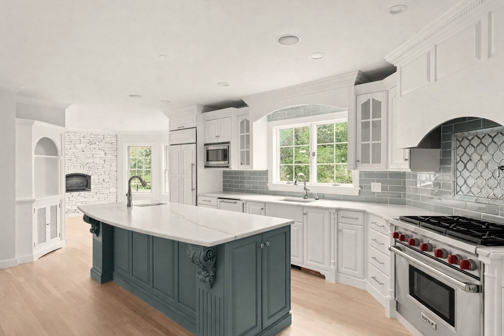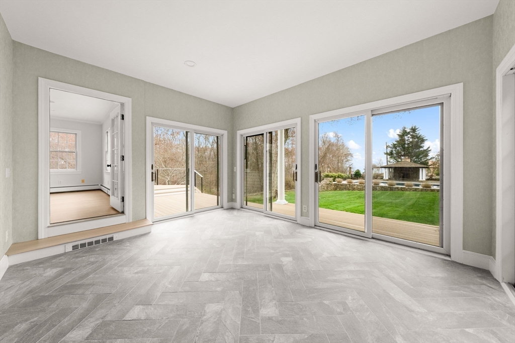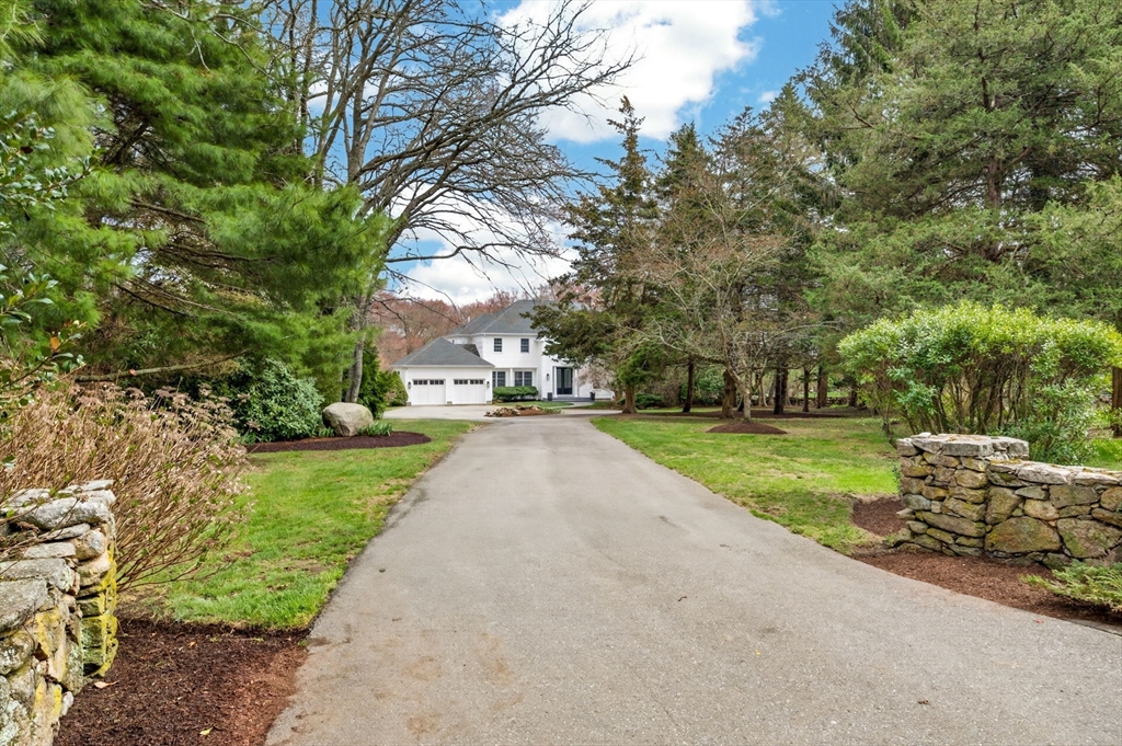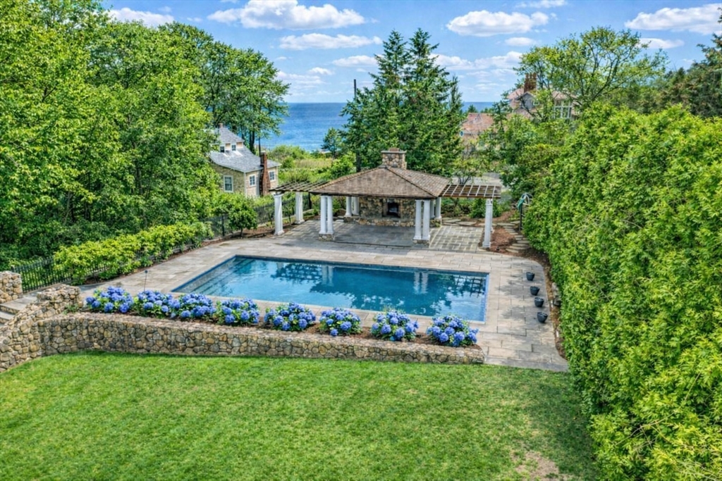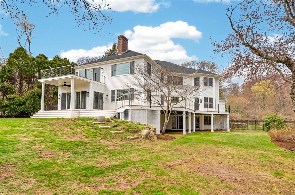 This bright and cheerful Colonial is ideally located in one of Padanaram’s most desirable seaside enclaves. Recently updated with modern finishes and natural materials, the home offers a warm and inviting feel throughout. Set on over 3 acres of professionally landscaped grounds, the property features an architecturally designed pool and cabana with a fieldstone fireplace—ideal for outdoor dining and entertaining. Main level includes a gracious foyer with cathedral ceilings, formal dining room, gourmet kitchen with casual dining area, private study, fireplaced family room, and formal living room with custom built-ins. A sunroom overlooks expansive yard and pool. Second level offers a spacious primary suite with full bath, walk-in closet, and large deck with distant ocean views. Three additional bedrooms and two full baths complete this level. Finished lower level includes sliders to the exterior, media room, office, and half bath. Exceptional offering in a sought-after coastal location!