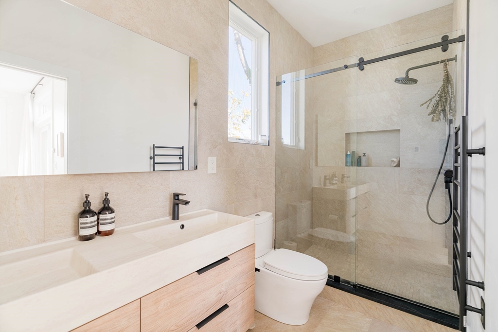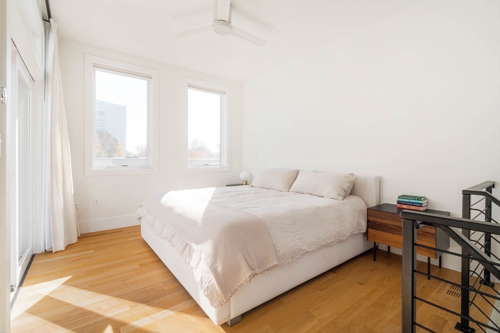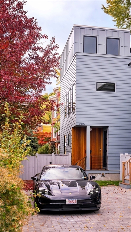 Cambridgeport. Right by Central Sq. and the Red Line, MIT, Harvard, and easy access to HBS, downtown Boston, and Longwood Medical make 205 Pearl Street a commuter’s dream! The Charles River, Black Sheep Market, Whole Foods, Trader Joe's, and four family-friendly playgrounds are just blocks away. A bona fide urban oasis with a sprawling fenced-in yard with a blue stone patio, great for hosting summer soirées, and a massive roof deck with views of the Boston skyline. The sun-soaked first floor opens to a two-story tall living room with a Spanish chandelier and gas fireplace, a kitchen with kid-proof carbon-neutral Dekton Pietra kitchen countertops, custom storage, and a powder room. The third floor primary bedroom features Foscarini lighting, WIC, and en-suite bath with double vanity and heated floors. Other features include in-unit laundry, heated floor in the den, 2 parking spaces plus EV charger, heat pumps for heating and cooling, and the most stylish storage shed in the city!