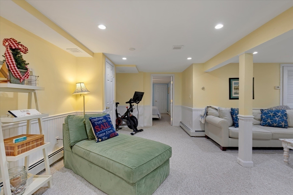 Welcome home to this charming 3-bedroom, 2-bath ranch in desirable Cotuit! Set on a lovely wooded corner lot in a quiet neighborhood, this home is thoughtfully designed for easy living offering a warm and inviting atmosphere from the moment you step inside. The main level features a bright and spacious living room with a fireplace, filled with natural light, along with a combined kitchen and dining area perfect for entertaining. A versatile den/office provides the ideal space for remote work or a cozy sitting area. Two generously sized bedrooms and a full bathroom complete the first floor. The fully finished walk out basement expands your living space, offering endless possibilities. Enjoy a large open living area ideal for a media room, game room or home gym. This level also includes a third bedroom and an additional full bathroom with a convenient laundry area. Ideally located near beach, Lowell Park, Kettle Ho restaurant, Cotuit Market, tennis and pickleball courts