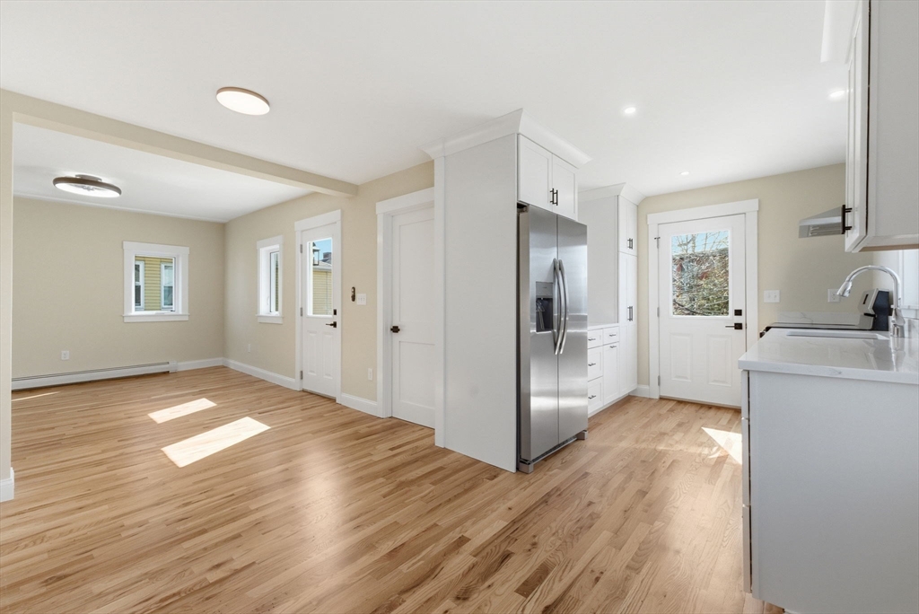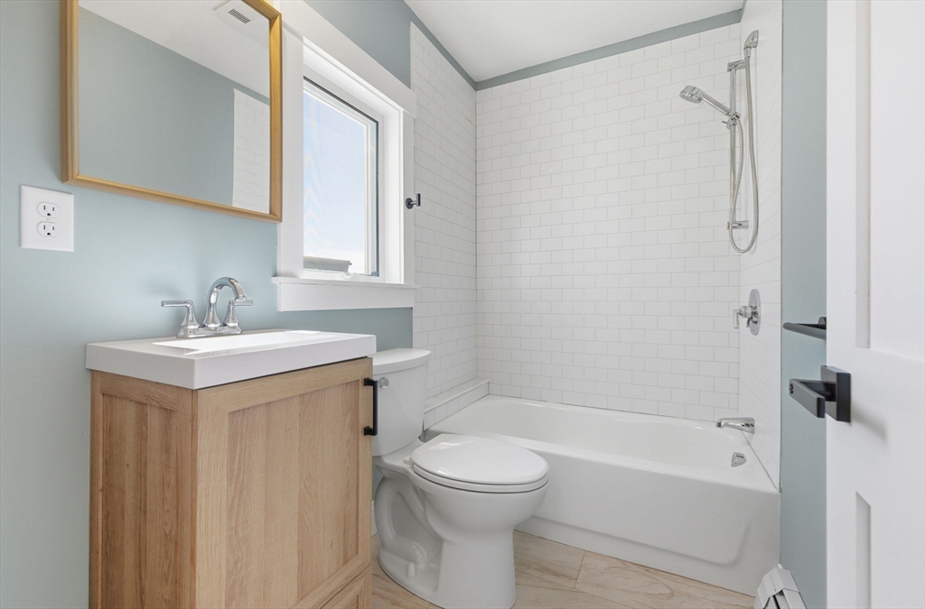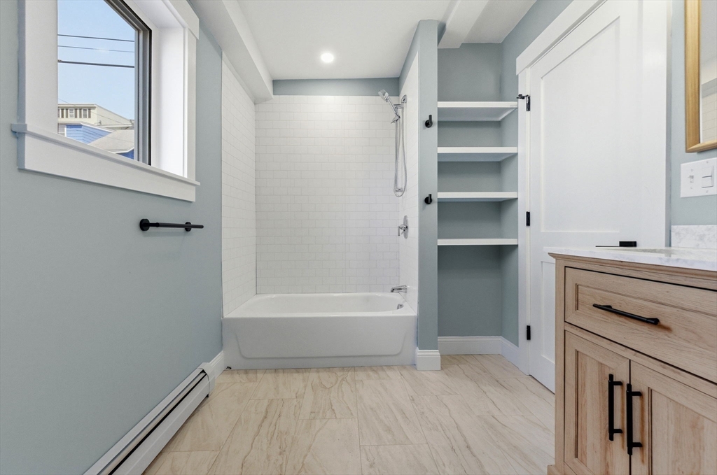 This is the one you've been waiting for. Stunning, fully renovated 4-bedroom, 2-bath unit spanning two levels at 20 Beacon St in Gloucester - steps from the beach and the heart of downtown. This meticulous unit delivers gorgeous hardwood floors throughout, a sleek kitchen with stainless steel appliances including range, wall oven, dishwasher, microwave, disposal, and refrigerator. Four sun-drenched bedrooms offer flexibility for family, guests, or a home office. Two beautifully appointed bathrooms feature modern vanities and clean, elegant finishes. Relax on your private deck with neighborhood views or stroll to Gloucester's iconic harbor for fresh seafood and gallery hopping. In-unit washer and dryer, gas heat, and two off-street parking spaces check every box. The MBTA Commuter Rail connects you straight to Boston. Pet friendly with restrictions. No smoking. Available now!