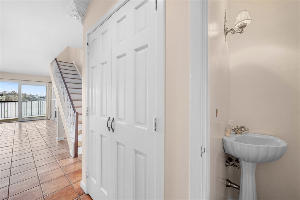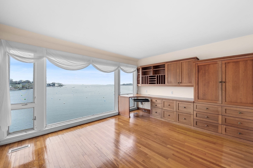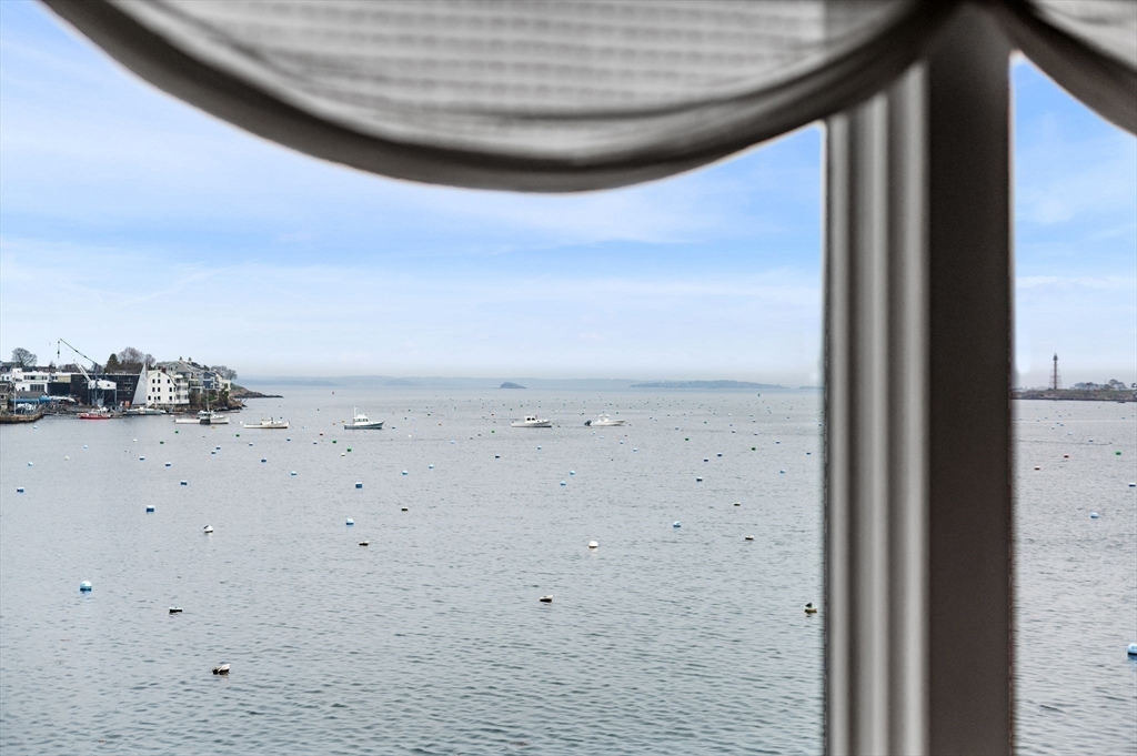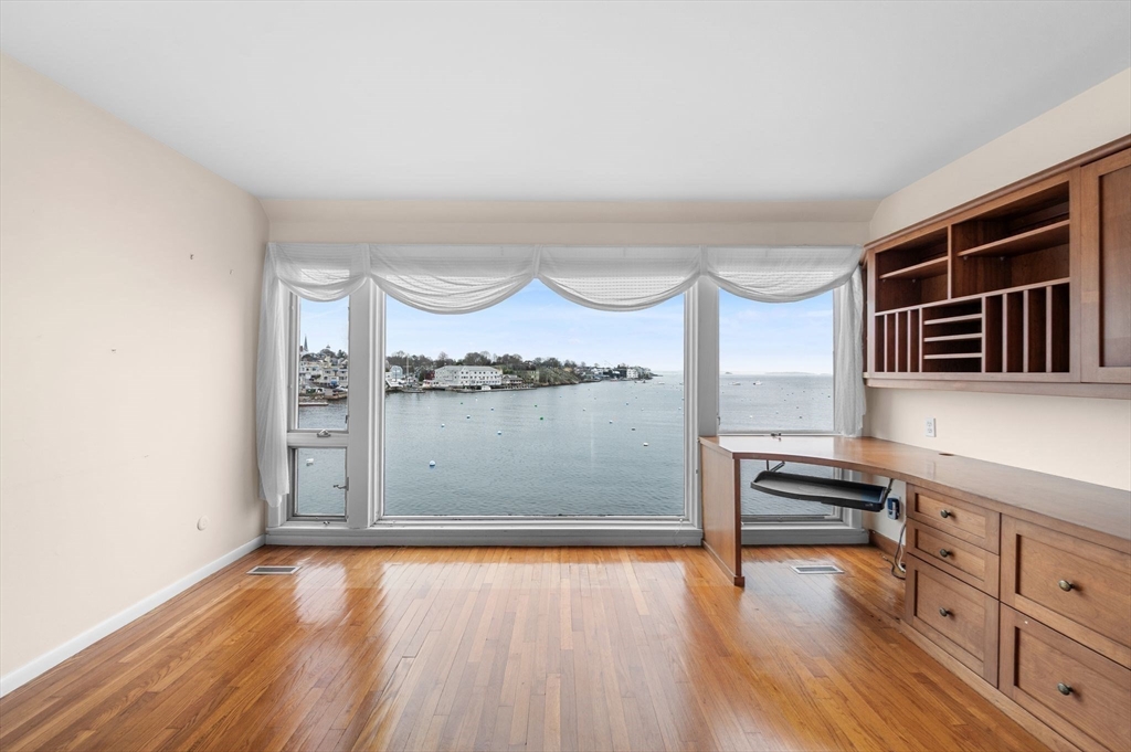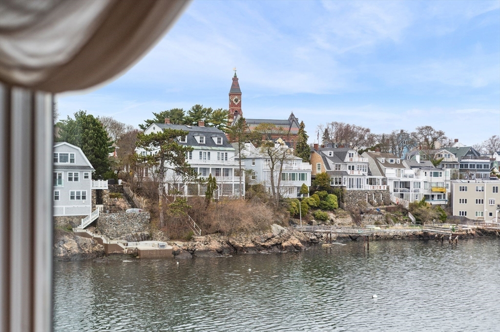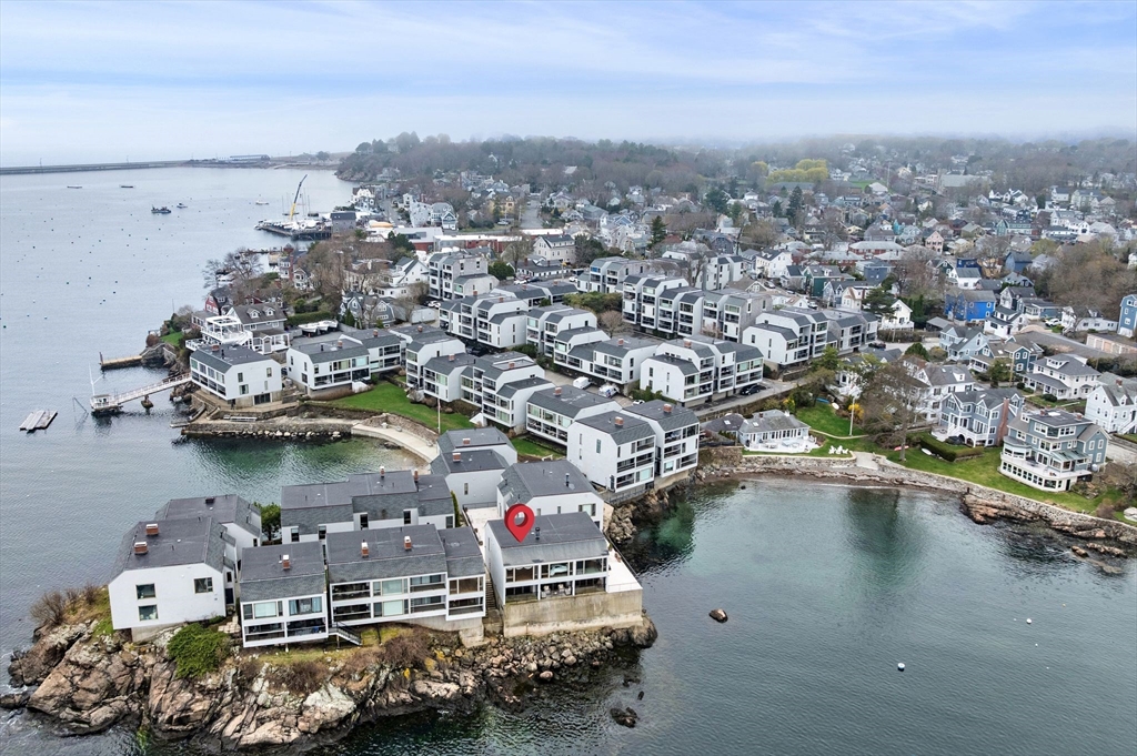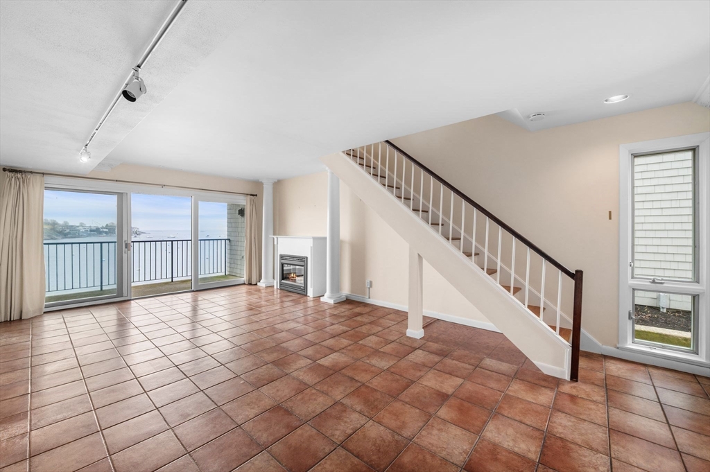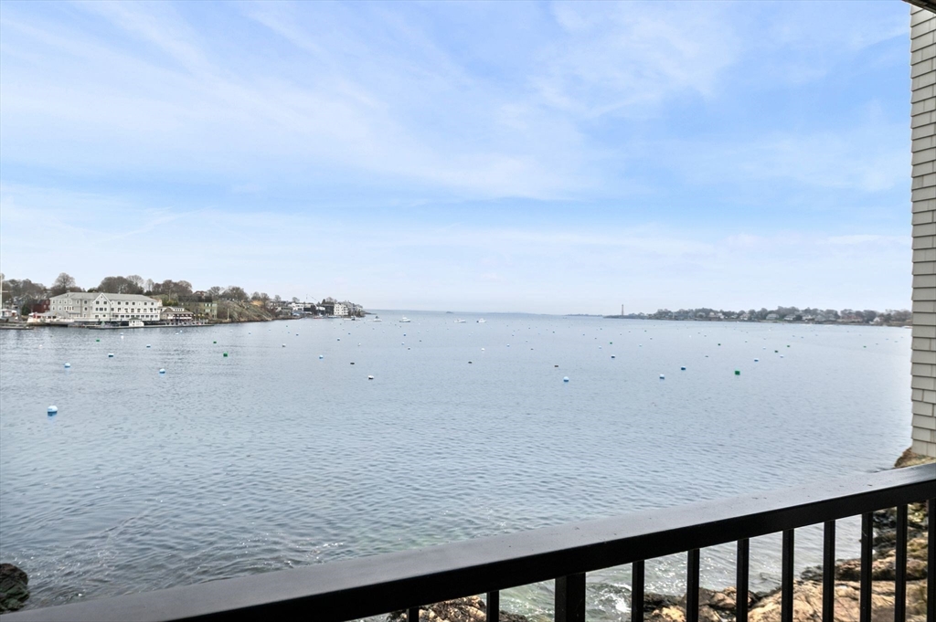 Direct waterfront 2-bedroom condo with commanding views of the world renown Marblehead Harbor. This rare offering has substantial northern views of Marblehead harbor, lighthouse, Abbott Hall, Salem, Beverly and all points North. First level boasts a generous living room, custom kitchen with granite counter tops, custom shelfing and lighting, complimented by high end appliances. Oversized sliders lead to a private covered deck, overlooking the substantial harbor. Second level has two bedrooms with impressive ceiling height, one with a walk-in closet, separated by a recently renovated full bath and in unit laundry. Pull-down stairs to the attic provide additional opportunities for storage. Imagine- on one side of the condo you have impeccable water views and on the other side of the condo you have the Glover Landing private sandy beach, dock, and float, simply stated "This is it"!!