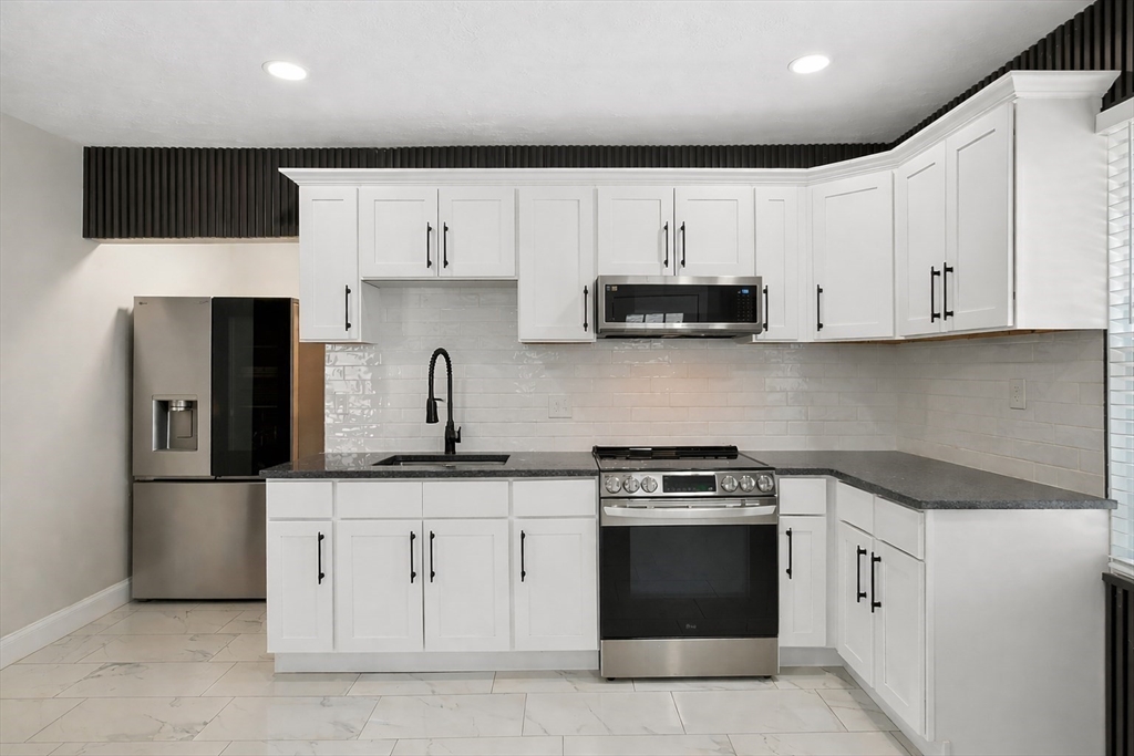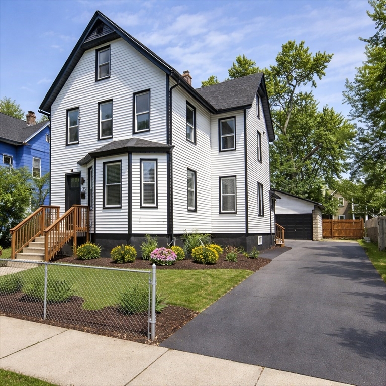 Stunning colonial home with 3 spacious levels of living! On the first floor you have a living room open to the dinning room, with a unique accent wall. The kitchen has been updated with a beautiful backsplash, stainless steel appliances, marble floors, and a newer half bath. One bedroom is located on the main level as well. Head upstairs where there are 3 more bedrooms and a gorgeous full bathroom. The 3rd level has two bonus rooms great for guests, a home office, gym, or playroom. There is a large patio out back and a two car garage. A must see for sure!