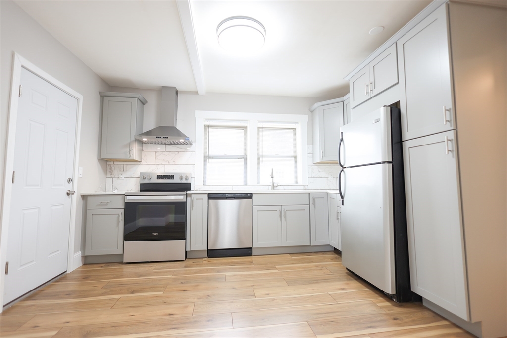 Located on a quiet street of well-kept homes, this property is just five minutes away from Quincy Center. The home features three spacious bedrooms, a new kitchen with quartz countertops, and new hardwood floors throughout. The interior has been freshly painted and includes a high-efficiency central heating system. The exterior offers a large, level, fenced-in lot with a private backyard, perfect for gardening. Additional amenities include an in-building Washer and Dryer. Two tandem parking spaces are included with the rent. The location offers an easy commute to Boston and is in close proximity to the bus line, the Red Line Quincy T Station, Highway 93 (North and South), Route 3, BJ, Shopping Centers, Schools, University, Hospital, Restaurants, Cafes, and all the area amenities Quincy has to offer.