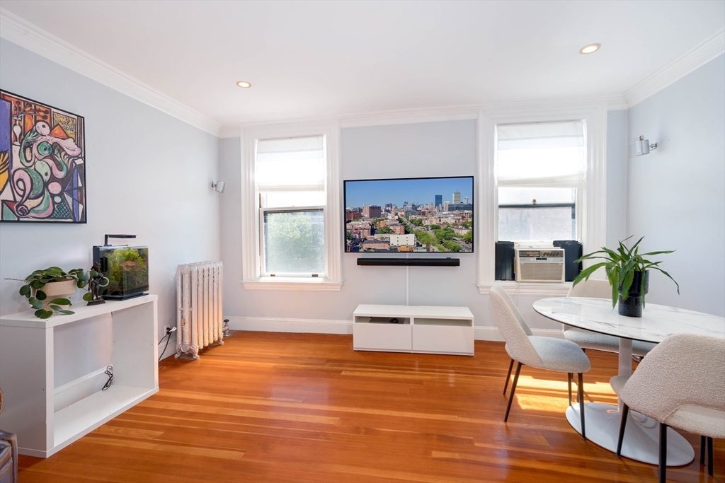 Beautiful Brookline pet-friendly sunny corner penthouse 2bed/1bath unit in the highly sought-after Beacon St location offering endless natural sunlight, spacious living/dining areas, hardwood floors, soaring high ceilings, exposed brick walls, modern eat-in kitchen w/ gas cooking, large primary bedroom w/ fireplace & bay windows, w/ the 2nd bedroom having a walk-in closet. This home also has an in-unit laundry, 1 deeded parking & a 2nd parking spot to be rented for an additional $265/month (if available). The building also has a shared common roof deck with gorgeous city views. Condo fee includes heat & hot water. Best Brookline location w/ effortless access to MBTA C line (Greenline: St. Mary's), Longwood Medical Center, Boston University, Coolidge Corner, Fenway, Kenmore, Amory Park & Hall's Pond, grocery shopping, lots of restaurants & shops! Close distance to Storrow Drive/Memorial Drive/I-93! Tenants lease ends 5/31. The home easily checks all your boxes, come check it out!