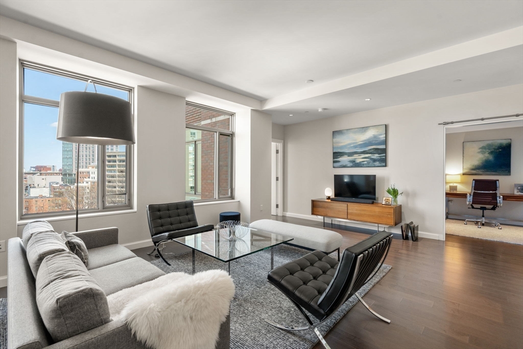 Experience elevated city living in this stunning residence at Symphony Court, ideally located where the South End, Back Bay, and Fenway meet. This 7th-floor 2 bed, 2.5 bath home was newly constructed in 2017. It features high ceilings, oversized windows, & sweeping views of Back Bay, the Pru, Four Seasons Tower, and glimpses of Fenway Park & the iconic Citgo sign. The spacious kitchen offers a large seating peninsula, Caesarstone countertops, luxury appliances, custom cabinetry, and a pantry, opening to a generous living & dining area. The corner primary suite is filled w/light, showcasing city views, double closets, & an ensuite bath w/ a large shower. The guest bed includes a closet & ensuite bath. Additional highlights include custom closets, central A/C, laundry, 1 garage parking space, & a private storage unit. Amenities include concierge, a club room w/terrace, and a fitness room. High owner occupied building near Symphony Hall,, Whole Foods, dining, shopping, & MBTA.