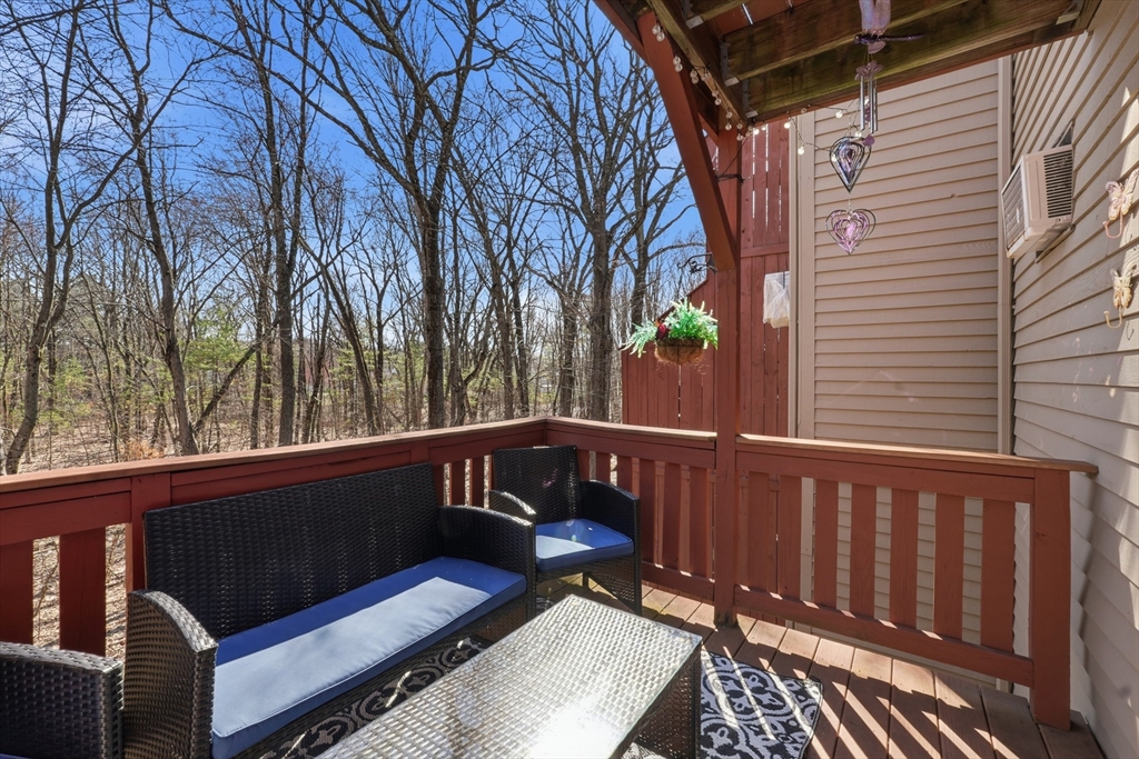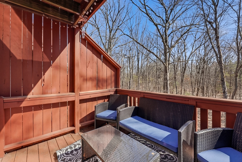 Enjoy easy living in this updated townhouse in the desirable Cider Hill community. The bright kitchen with oak cabinetry flows into a sunlit living and dining area with a cozy fireplace and access to a private deck. Upstairs features a spacious primary bedroom with its own deck and walk-in closet, plus a generously sized second bedroom. The unfinished walk-out lower level offers great potential for additional living space and opens to a private patio. Complete with in-unit laundry, ample storage, and two assigned parking spaces.