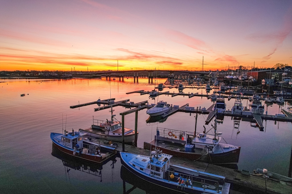 This spacious townhome offers a refined coastal lifestyle with harbor views from private decks on every level. The open-concept main floor features a kitchen with shaker cabinetry, stone countertops, and a stylish peninsula that flows into a bright living area accented by classic crown molding. A dedicated home office and guest half-bath complete the main level. The primary suite serves as a peaceful retreat, boasting two large closets, a private balcony, and a spa-like bath with radiant heat flooring and a tiled walk-in shower. Complete with a second bedroom, in-unit laundry, and assigned parking, this elegant home is just a short walk to the commuter rail, beaches, and the vibrant shops and restaurants of downtown Beverly.