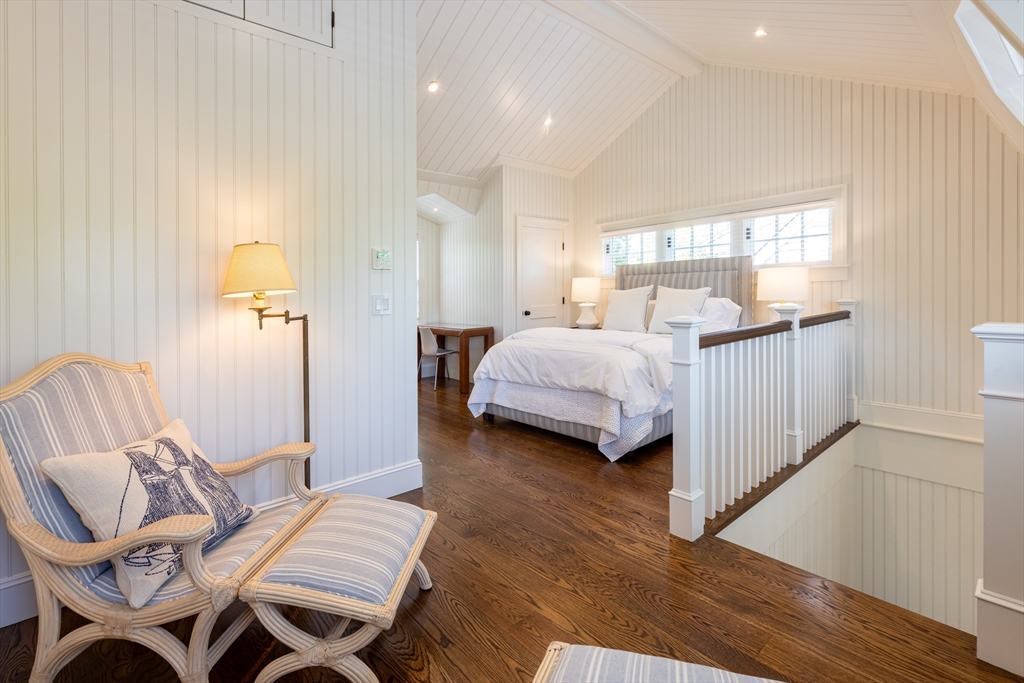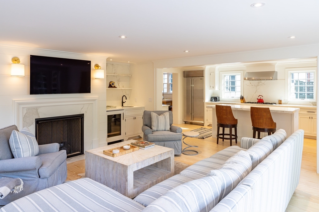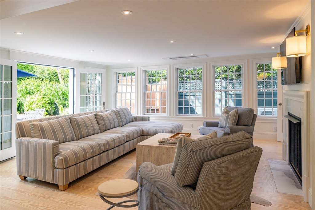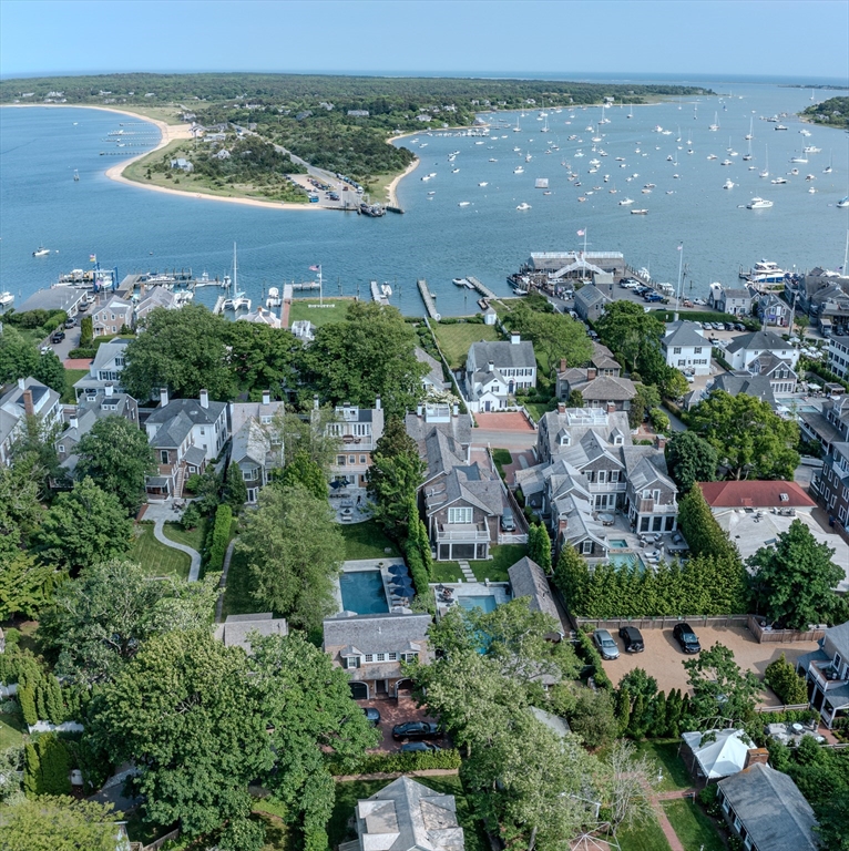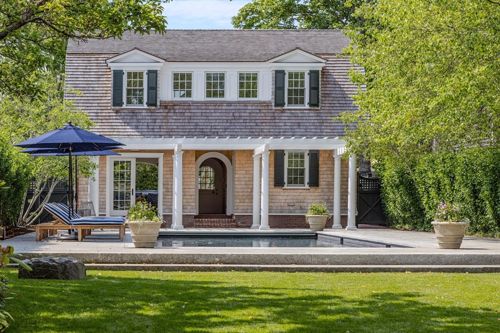 This expansive historic compound in the heart of Edgartown Village blends timeless charm with modern luxury. Just steps from top restaurants and shops, the home has been fully renovated by Stern McCafferty Architecture + Interiors, pairing contemporary design with classic architectural detail. Inside, open-plan living spaces create an effortless flow for entertaining, with a sleek kitchen and dining area leading through French doors to a beautifully landscaped patio for outdoor dining. Beyond, manicured gardens and a lush lawn frame a striking 42' x 18' pool, offering a private outdoor retreat. The second floor features four spacious bedrooms, including a serene primary suite with office, ensuite bath, and private deck overlooking the pool. The third floor adds a large sleeping area, full bath, and sunlit deck. A rare opportunity on North Water Street.