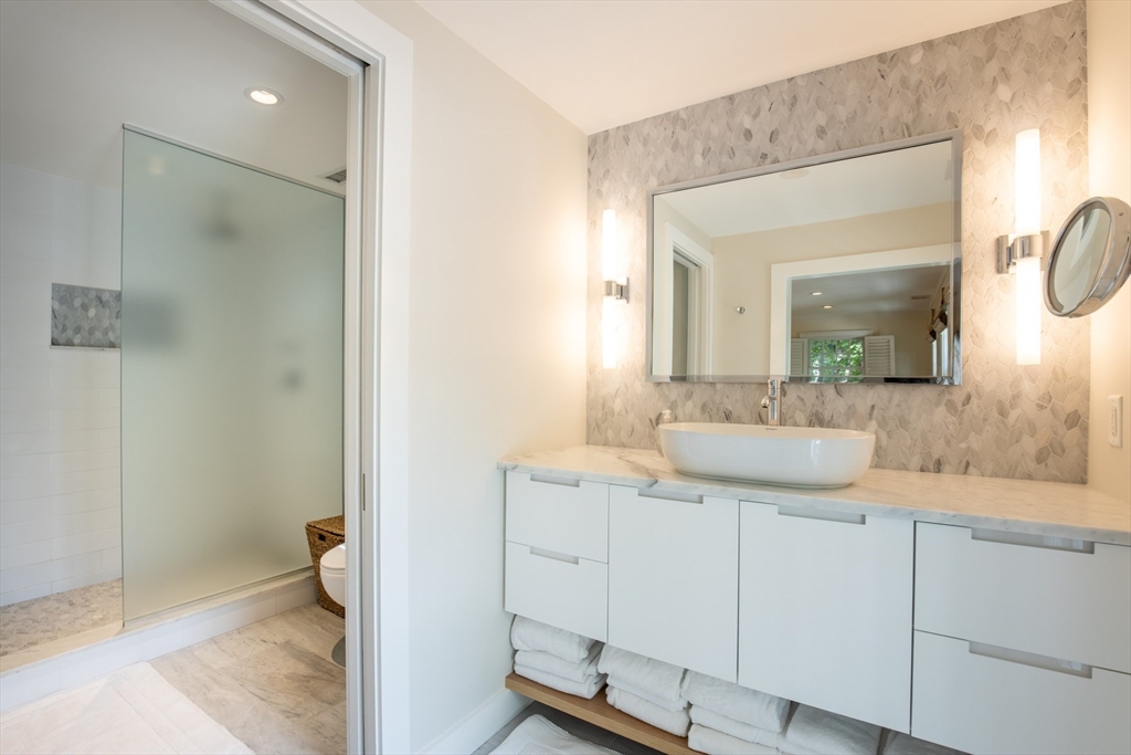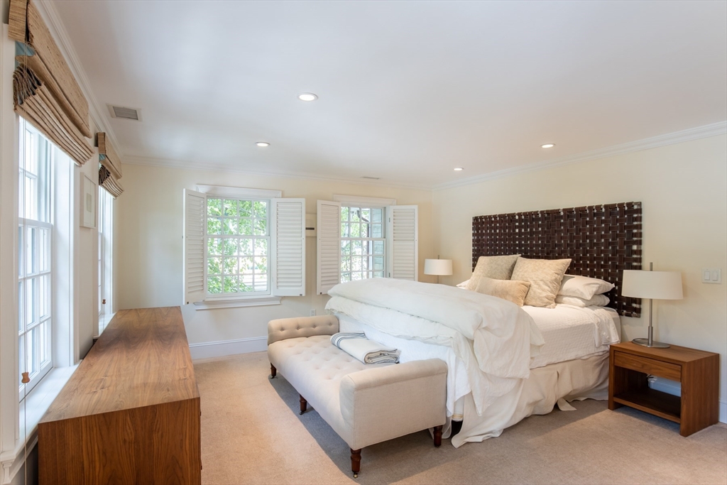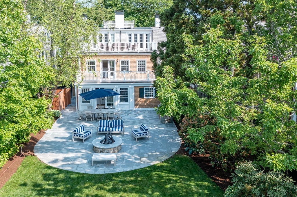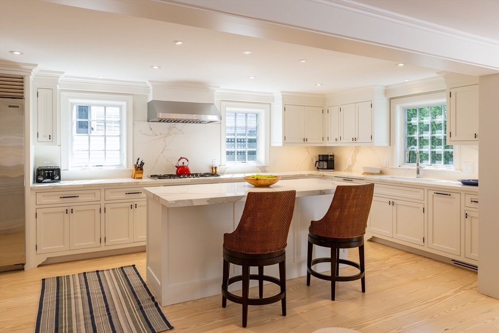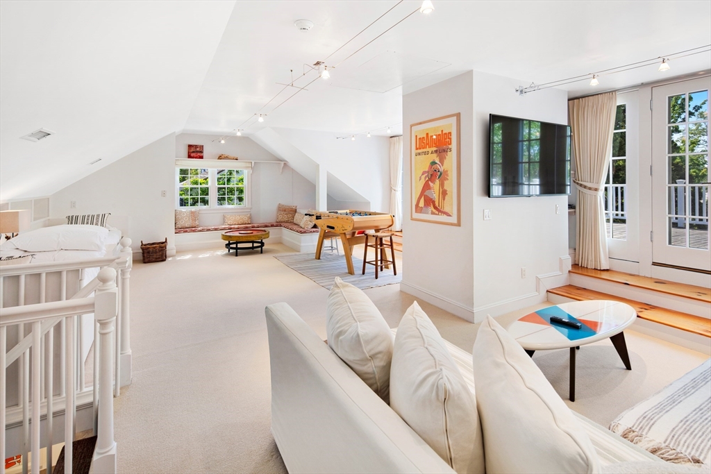 This expansive historic compound in the heart of Edgartown Village blends timeless charm with modern luxury. Just steps from top restaurants and shops, the home has been fully renovated by Stern McCafferty Architecture + Interiors, pairing contemporary design with classic architectural detail. Inside, open-plan living spaces create an effortless flow for entertaining, with a sleek kitchen and dining area leading through French doors to a beautifully landscaped patio for outdoor dining. Beyond, manicured gardens and a lush lawn frame a striking 42' x 18' pool, offering a private outdoor retreat. The second floor features four spacious bedrooms, including a serene primary suite with office, ensuite bath, and private deck overlooking the pool. The third floor adds a large sleeping area, full bath, and sunlit deck. A rare opportunity on North Water Street.