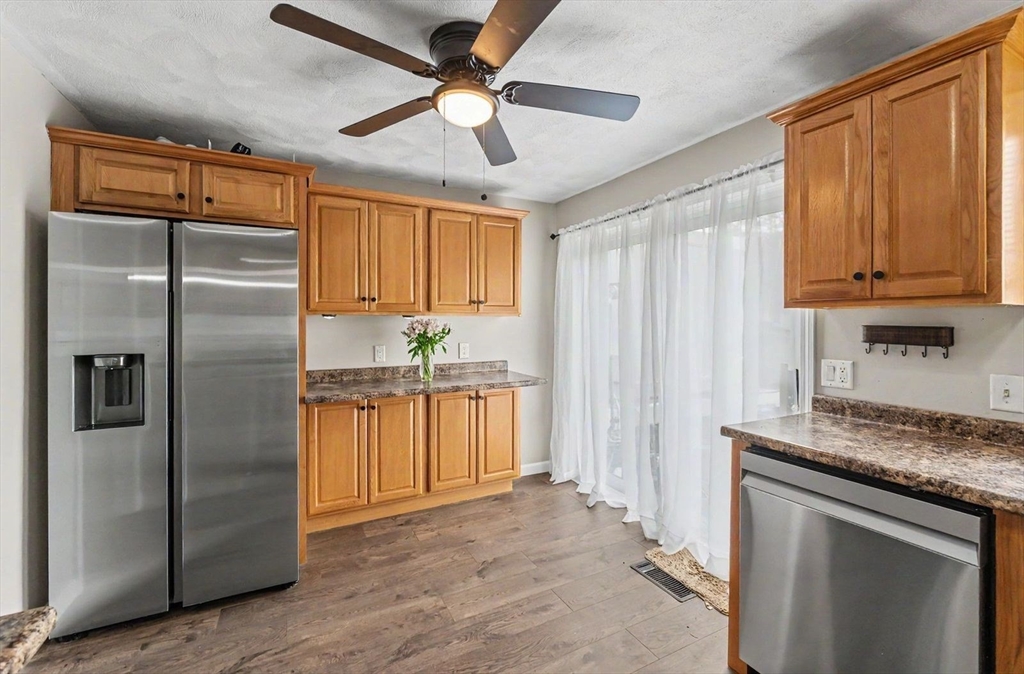 Welcome to Farrwood Green! This well-maintained 2-bedroom, 2-bath townhouse offers a comfortable and updated living space in a convenient commuter-friendly location. Recent improvements include fresh interior paint and durable vinyl plank wood flooring, creating a clean, modern feel throughout.The main living area offers a bright and functional layout, while the finished lower-level family room features a cozy gas fireplace—perfect for relaxing evenings or additional living space such as a home office, media room, or guest area. The updated kitchen is equipped with stainless steel appliances and offers great functionality for everyday living.Step outside to your private rear patio, ideal for outdoor dining or quiet enjoyment. Additional features include central air, natural gas heating, a gas hot water heater, and public water and sewer services. A great opportunity to own in a desirable condo community with low-maintenance living!