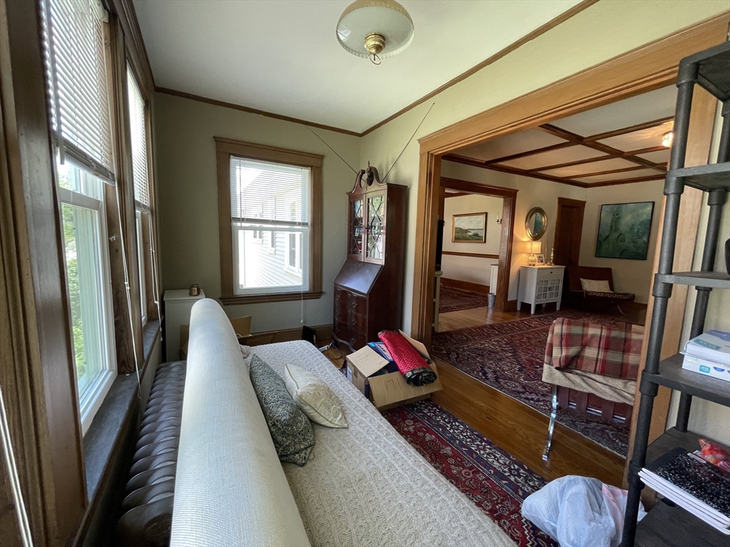 Arlington charming and spacious three bedroom apartment available 7/1. Apartment is flooded with natural sunlight. Large, open rooms with wide doorways. Separate kitchen, living room, and dining room. Additional reading area. Hardwood floors throughout the unit. Kitchen is large with full-sized fridge, range, and oven. Large pantry right off the kitchen. Free laundry in basement. Lots of storage. Bedrooms are large and sunny with huge windows. Ceramic tile bathroom.Two parking spaces included.Shared backyard.