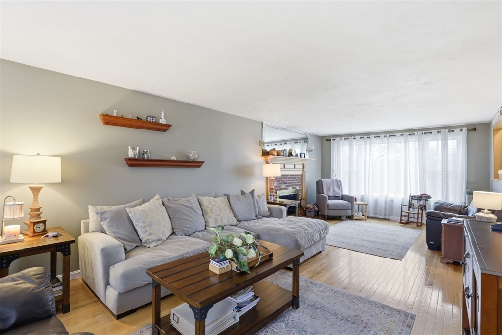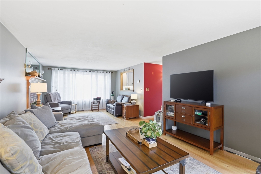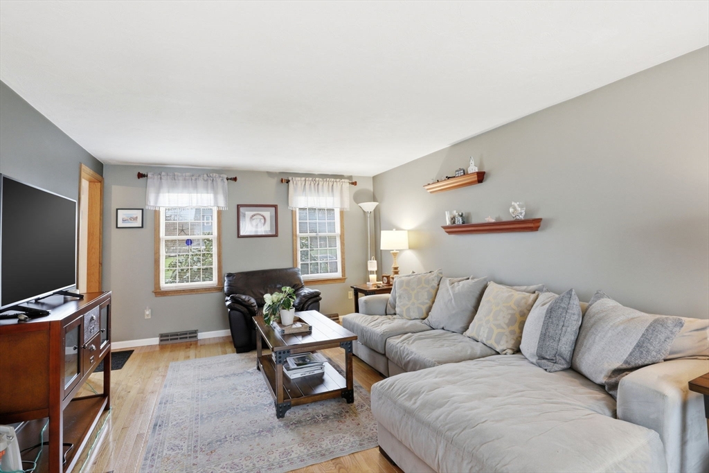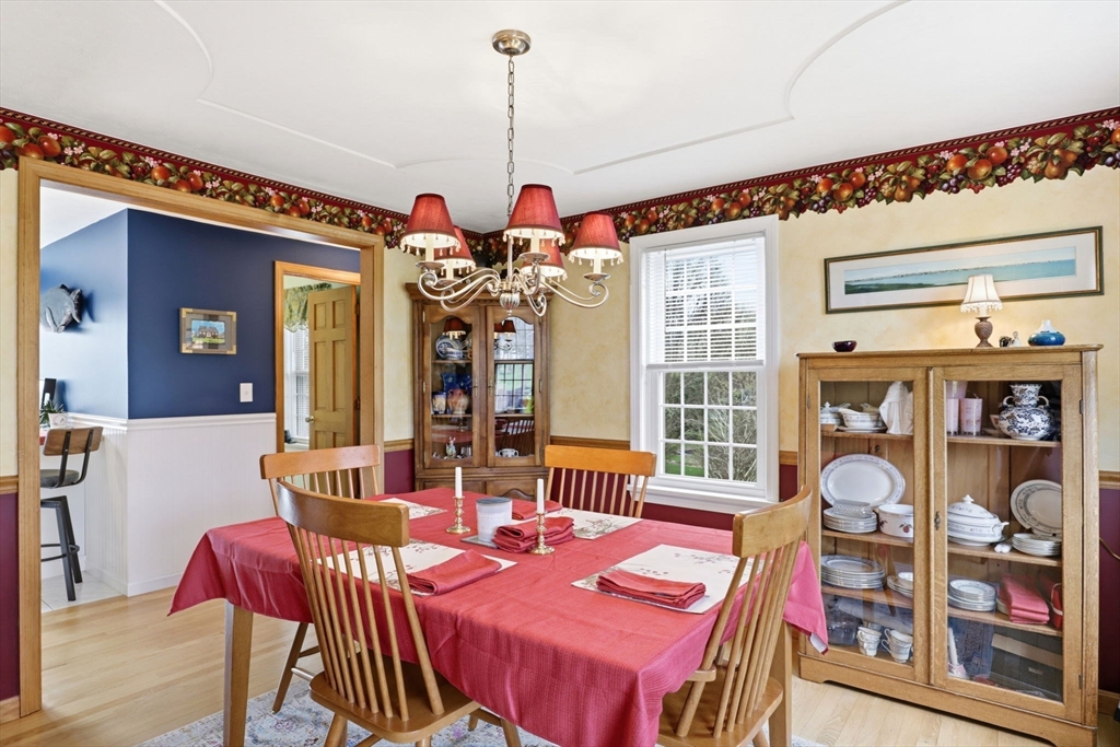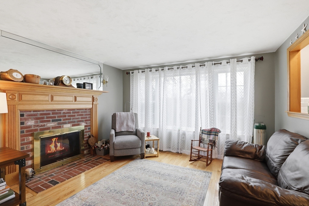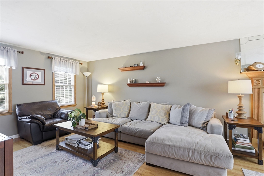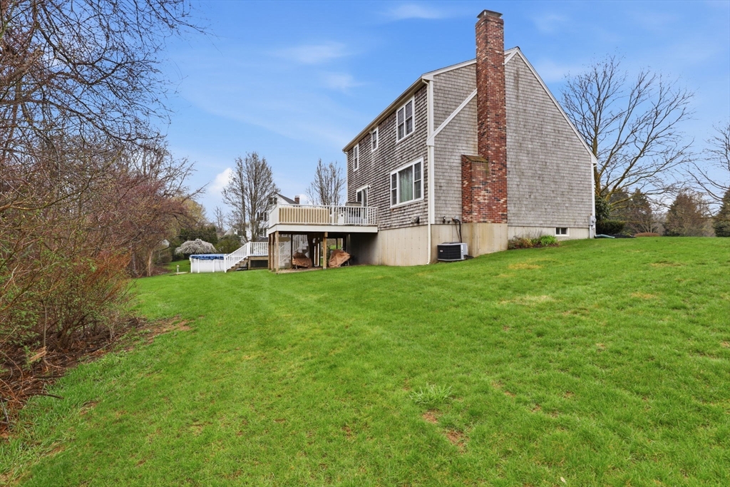 Quintessential New England Cape set in one of Bridgewater’s most desirable neighborhoods! Updated kitchen showcases tile flooring, beadboard detail, quartz countertops, stylish backsplash & stainless steel appliances. Front-to-back living room offers hardwood floors & a cozy wood-burning fireplace, while the formal dining room features hardwood floors & an elegant tray ceiling. Upstairs, you’ll find 3 bedrooms, all with hardwood floors, including a spacious primary with double closets, plus a full bath with tile flooring. The finished lower level adds versatile living space ideal for a playroom, home office, or young adult suite. Enjoy outdoor living with an above-ground pool & composite deck overlooking a peaceful natural setting.