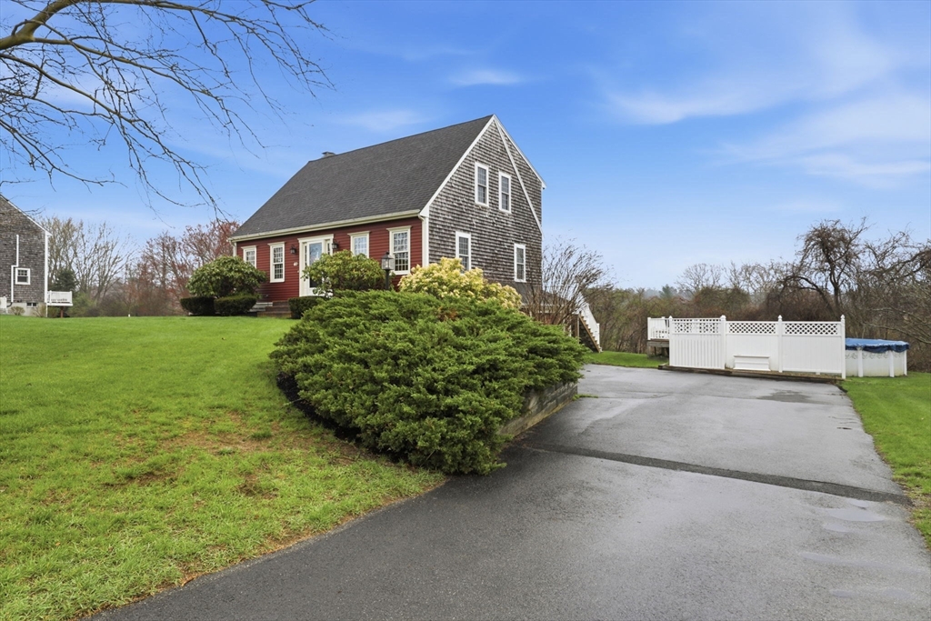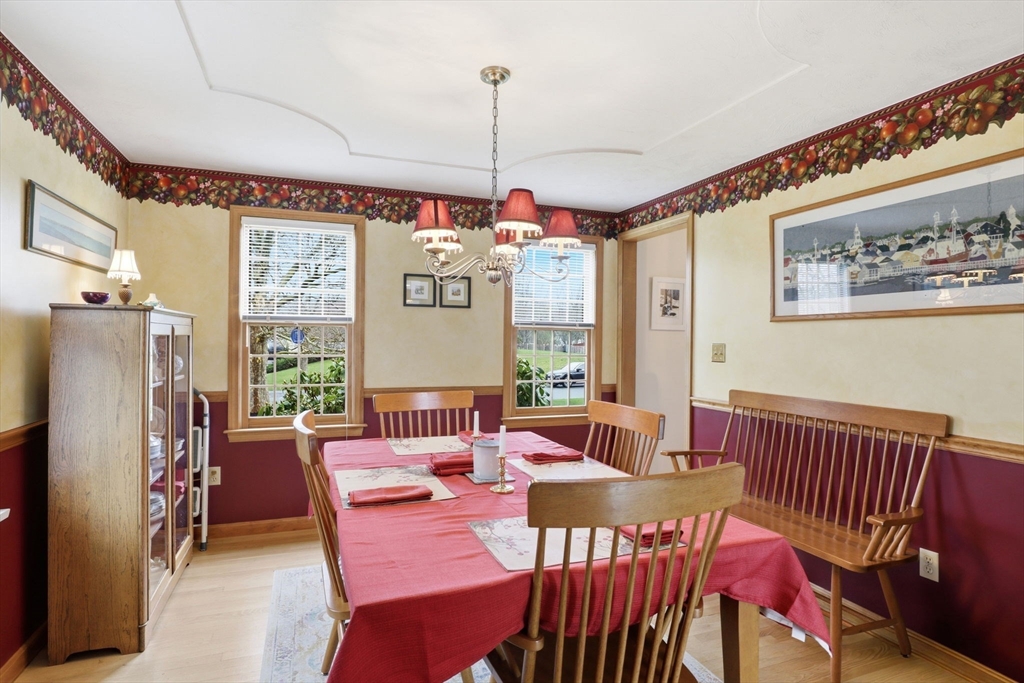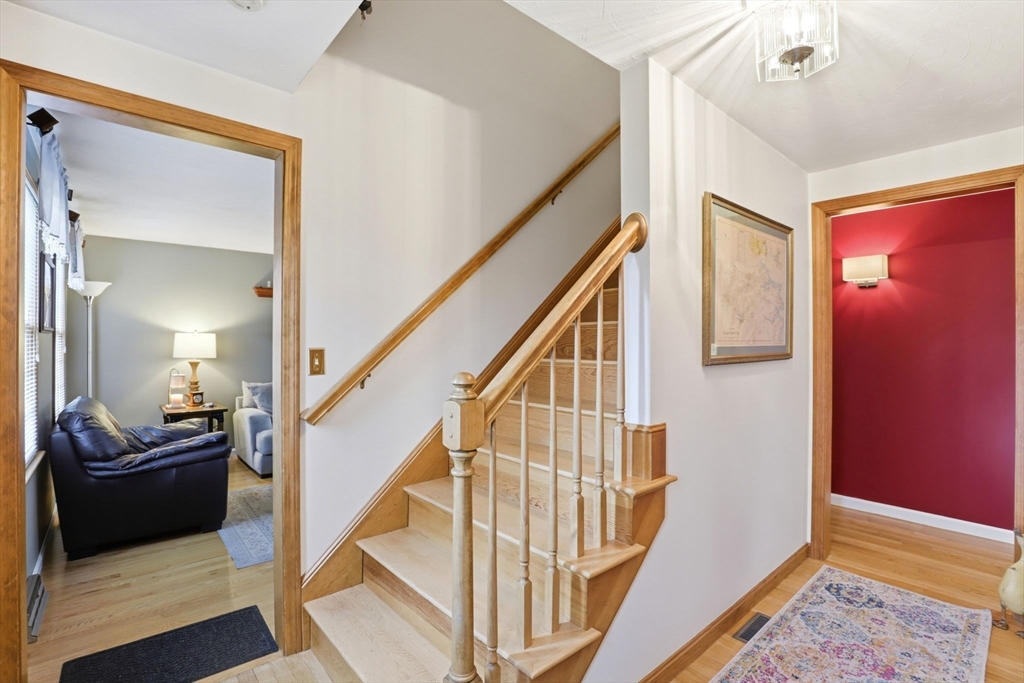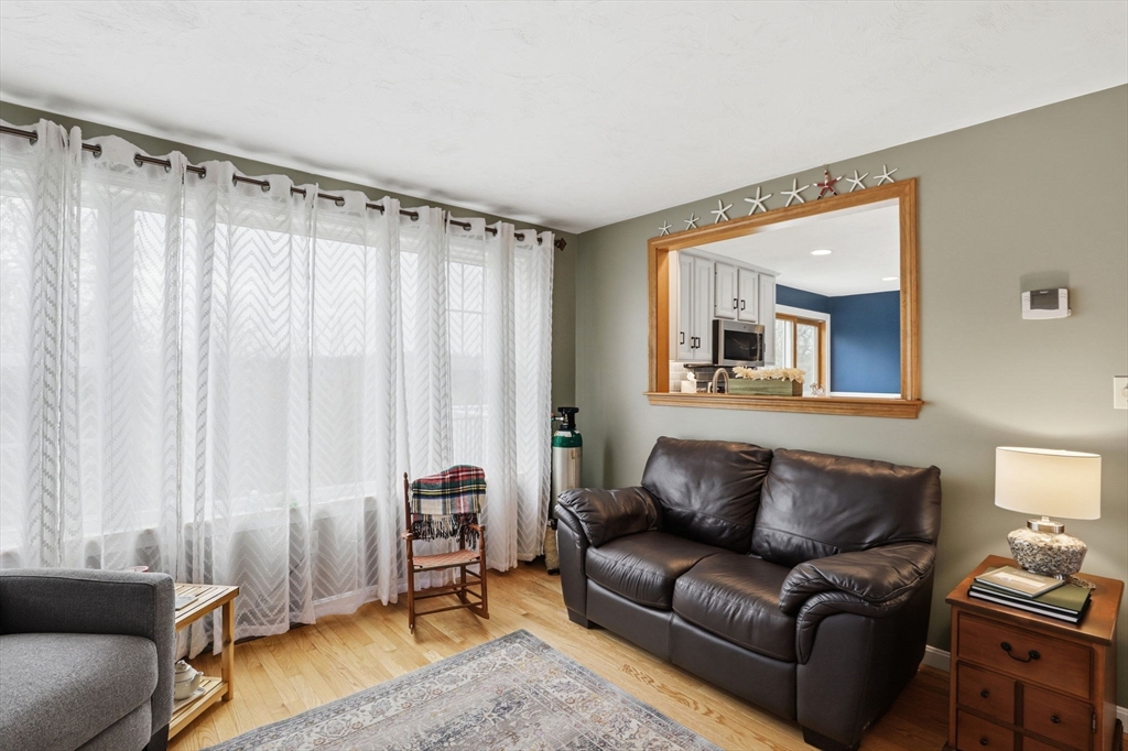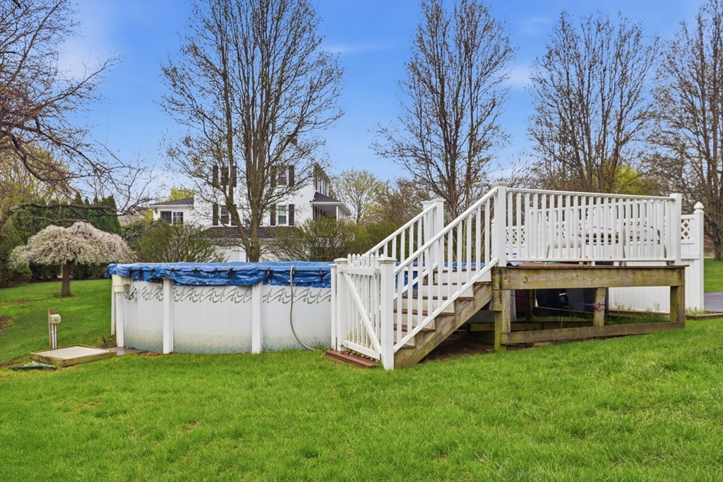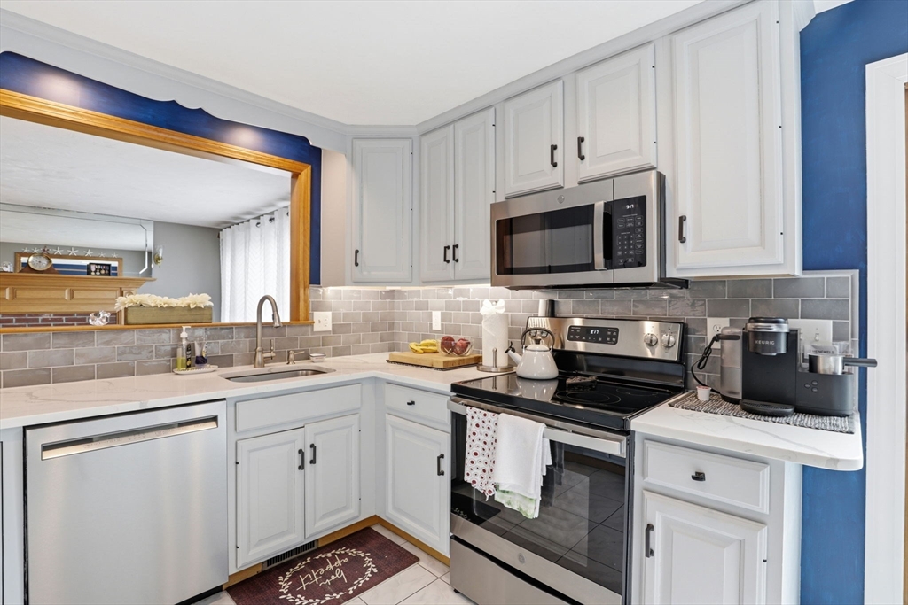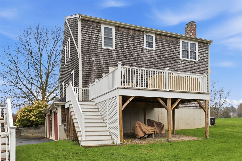 Quintessential New England Cape set in one of Bridgewater’s most desirable neighborhoods! Updated kitchen showcases tile flooring, beadboard detail, quartz countertops, stylish backsplash & stainless steel appliances. Front-to-back living room offers hardwood floors & a cozy wood-burning fireplace, while the formal dining room features hardwood floors & an elegant tray ceiling. Upstairs, you’ll find 3 bedrooms, all with hardwood floors, including a spacious primary with double closets, plus a full bath with tile flooring. The finished lower level adds versatile living space ideal for a playroom, home office, or young adult suite. Enjoy outdoor living with an above-ground pool & composite deck overlooking a peaceful natural setting.