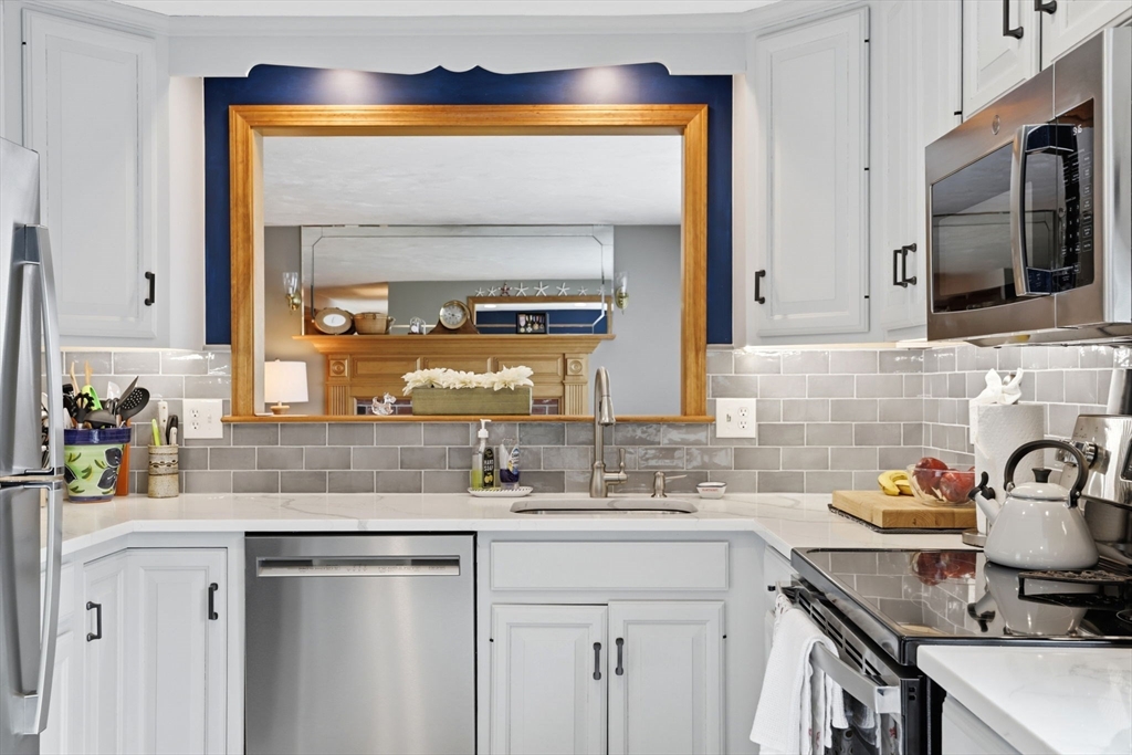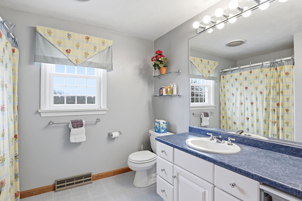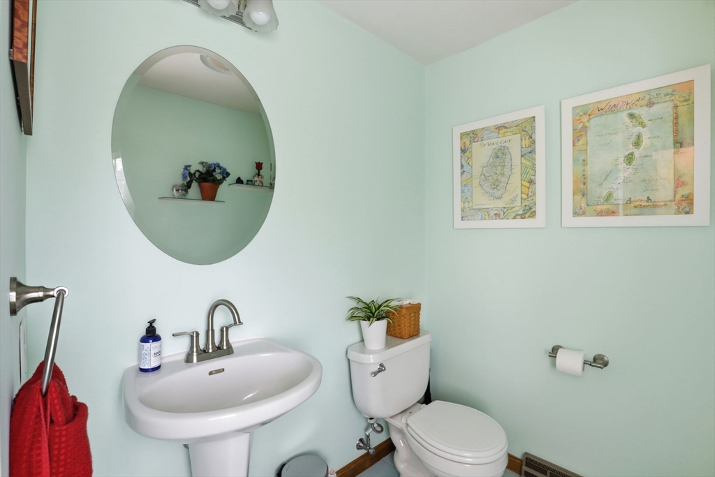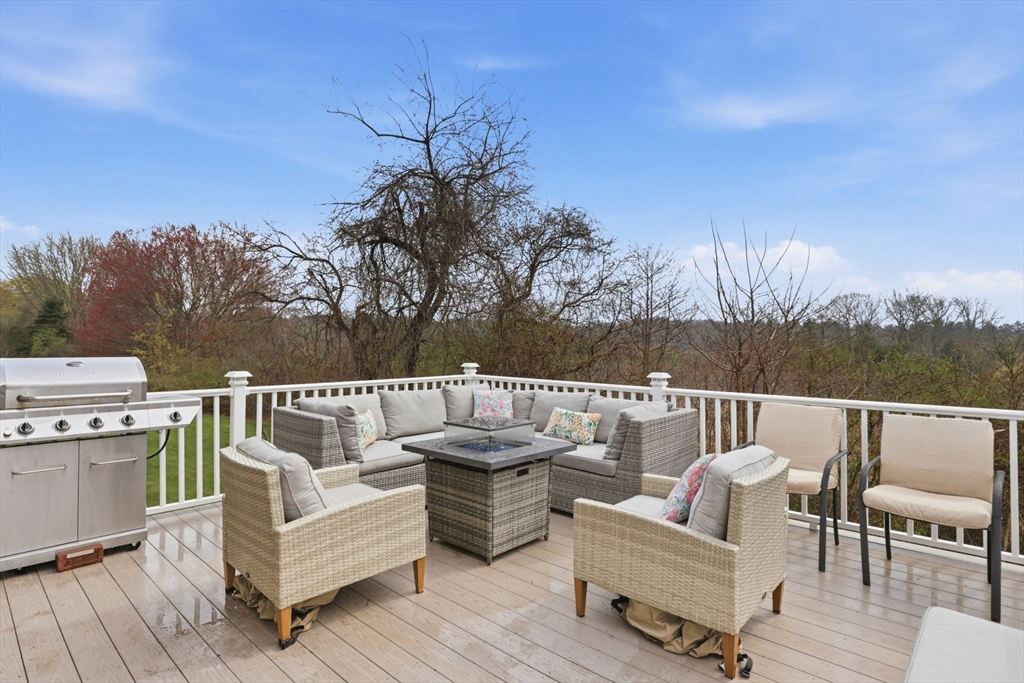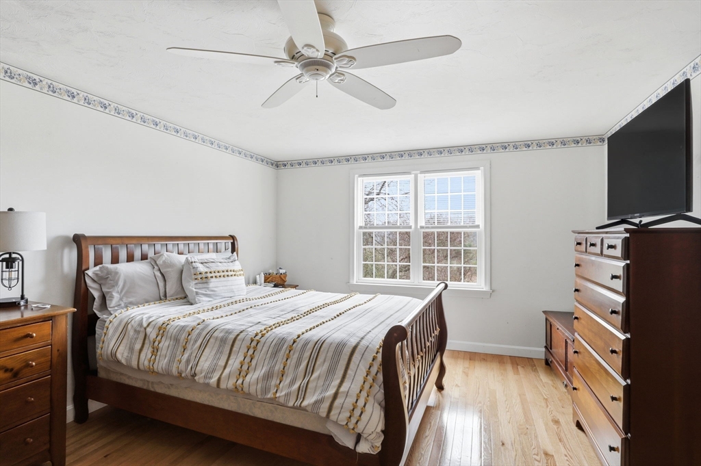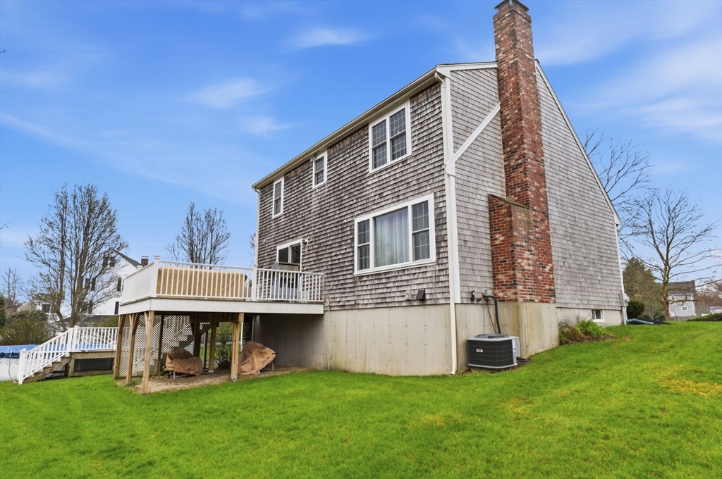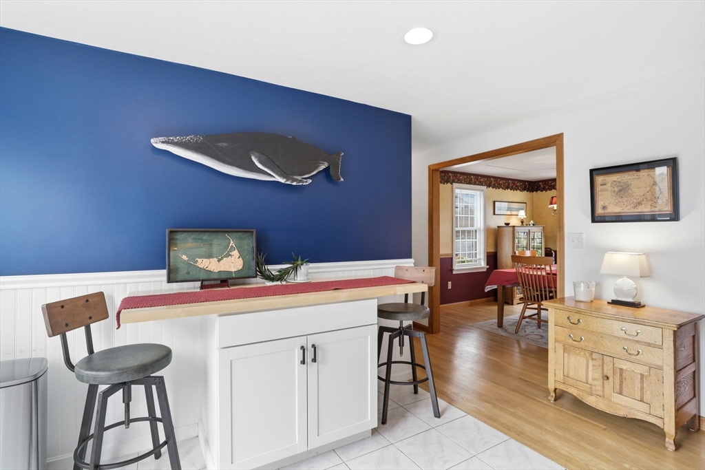 Quintessential New England Cape set in one of Bridgewater’s most desirable neighborhoods! Updated kitchen showcases tile flooring, beadboard detail, quartz countertops, stylish backsplash & stainless steel appliances. Front-to-back living room offers hardwood floors & a cozy wood-burning fireplace, while the formal dining room features hardwood floors & an elegant tray ceiling. Upstairs, you’ll find 3 bedrooms, all with hardwood floors, including a spacious primary with double closets, plus a full bath with tile flooring. The finished lower level adds versatile living space ideal for a playroom, home office, or young adult suite. Enjoy outdoor living with an above-ground pool & composite deck overlooking a peaceful natural setting.