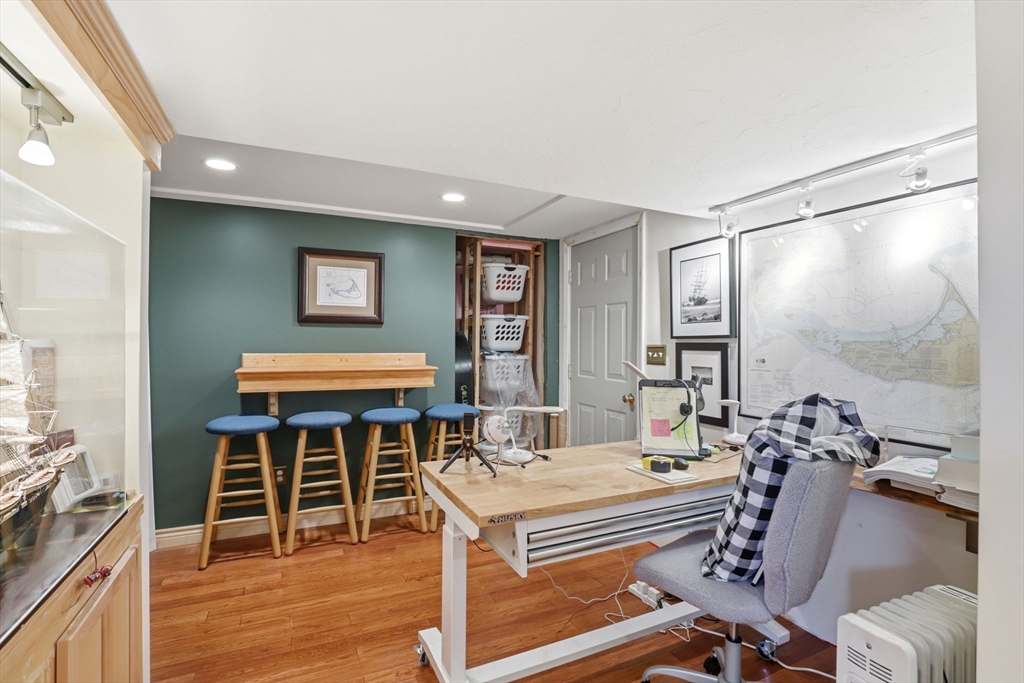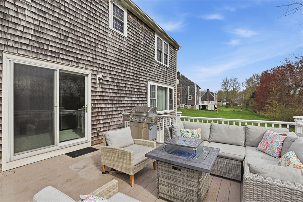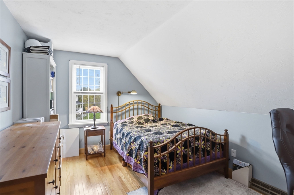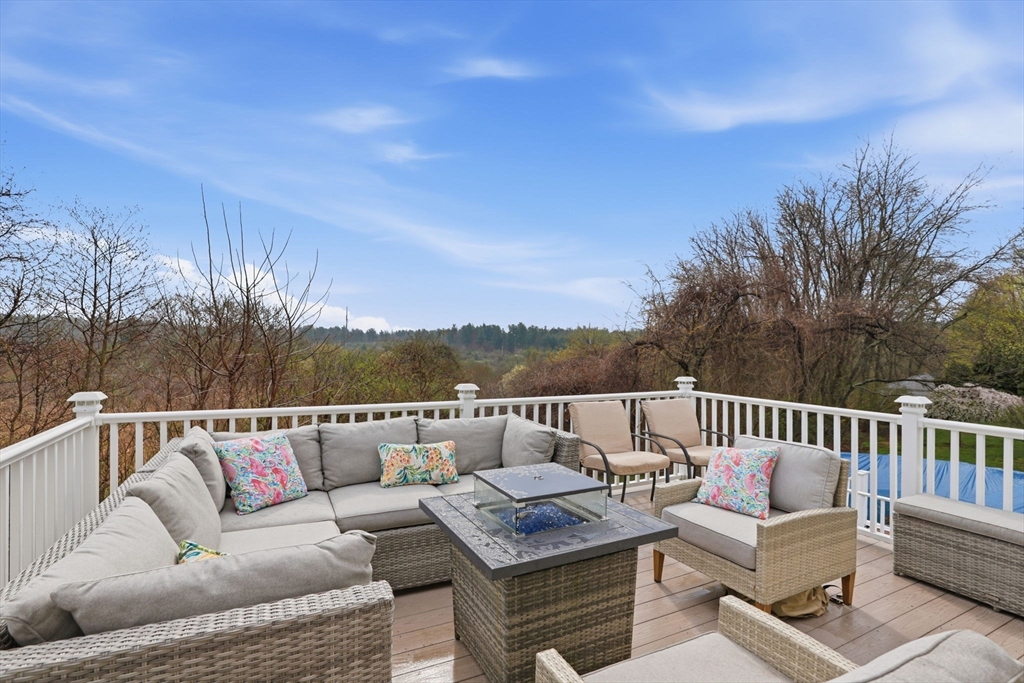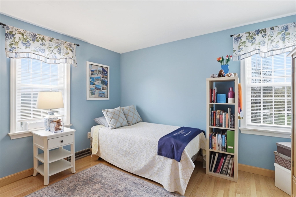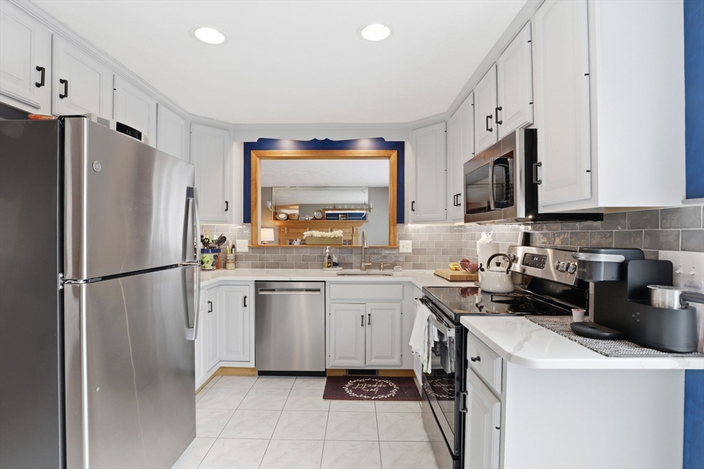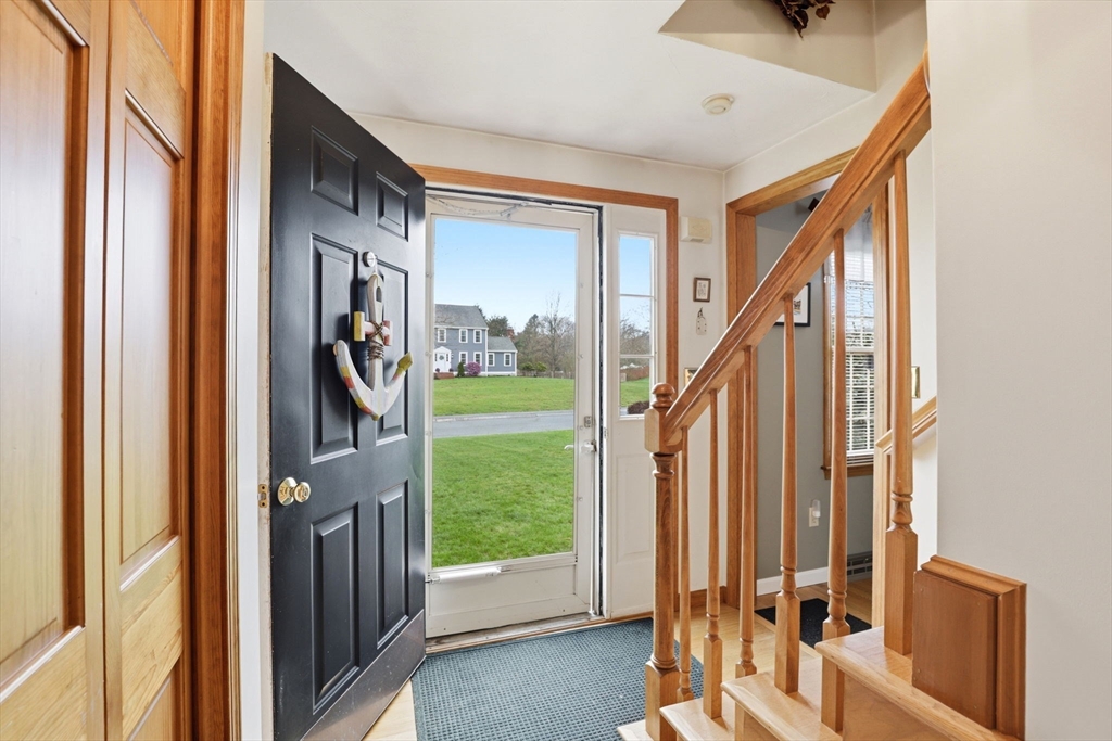 Quintessential New England Cape set in one of Bridgewater’s most desirable neighborhoods! Updated kitchen showcases tile flooring, beadboard detail, quartz countertops, stylish backsplash & stainless steel appliances. Front-to-back living room offers hardwood floors & a cozy wood-burning fireplace, while the formal dining room features hardwood floors & an elegant tray ceiling. Upstairs, you’ll find 3 bedrooms, all with hardwood floors, including a spacious primary with double closets, plus a full bath with tile flooring. The finished lower level adds versatile living space ideal for a playroom, home office, or young adult suite. Enjoy outdoor living with an above-ground pool & composite deck overlooking a peaceful natural setting.