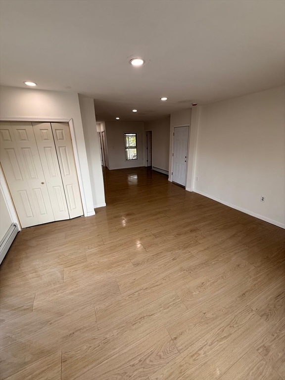 Bright and updated 2-bedroom, 1-bath second-floor unit featuring an open-concept layout and modern finishes throughout. The kitchen offers updated cabinetry, countertops, and new appliances, seamlessly flowing into a spacious living and dining area filled with natural light.Both bedrooms are well-sized with ample closet space, and the unit includes the convenience of in-unit laundry. Fresh flooring, recessed lighting, and neutral tones make this home move-in ready.Conveniently located near local shops, restaurants, and public transportation.