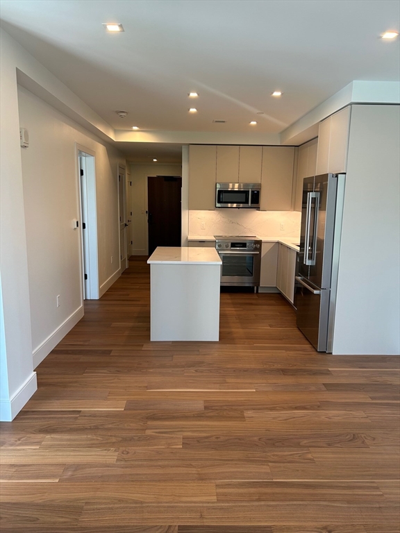 Build in 2025! Features a spacious open-concept living area and kitchen with premium stainless steel appliances, sleek cabinetry, and in-unit washer/dryer. This unit comes partially furnished with a sofa, counter stool, and bed, and includes one assigned garage parking spot. The second bedroom is an interior room without a window, ideal for a home office or guest room. The building offers secure entry, elevator access, concierge service, and professional management. Steps to Green Line T, Whole Foods, shops, and restaurants with excellent access to Boston College, Boston University, Longwood Medical Area, and downtown Boston. Amenities include 24/7 concierge, fitness center with on-demand classes, clubroom with catering kitchen, multi-sports simulator with wet bar, second-floor terrace with grills and putting green, and a rooftop terrace with fireplace and bar overlooking the skyline.