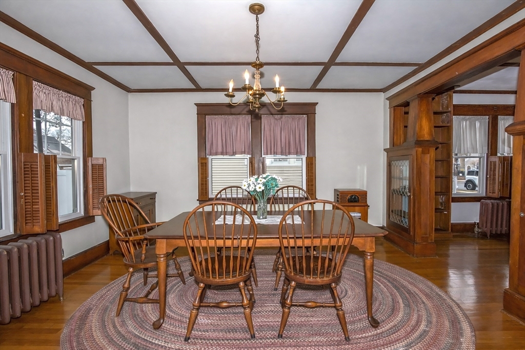 Warm & inviting Craftsman Bungalow in the highly sought-after Circle Park neighborhood! This meticulously maintained 4-bedroom, 1.5-bath home blends timeless character with thoughtful updates. Enjoy a welcoming front porch, rear patio, 1-car detached garage with extra storage, and a quaint backyard. The well-designed first floor offers excellent flow, featuring a spacious living room with a fireplace and built-ins, and a formal dining room highlighted by rich wood built-ins with glass-front doors and classic Craftsman pillars. Major updates include vinyl replacement windows, roof (2022), brand-new 200-amp electrical panel, water heater (2021), and boiler (2016), providing peace of mind for years to come. The second floor offers four nice sized bedrooms with ample closet space and an updated full bath. A perfect blend of charm, character, and modern convenience—don’t miss this one! See attached feature sheet.