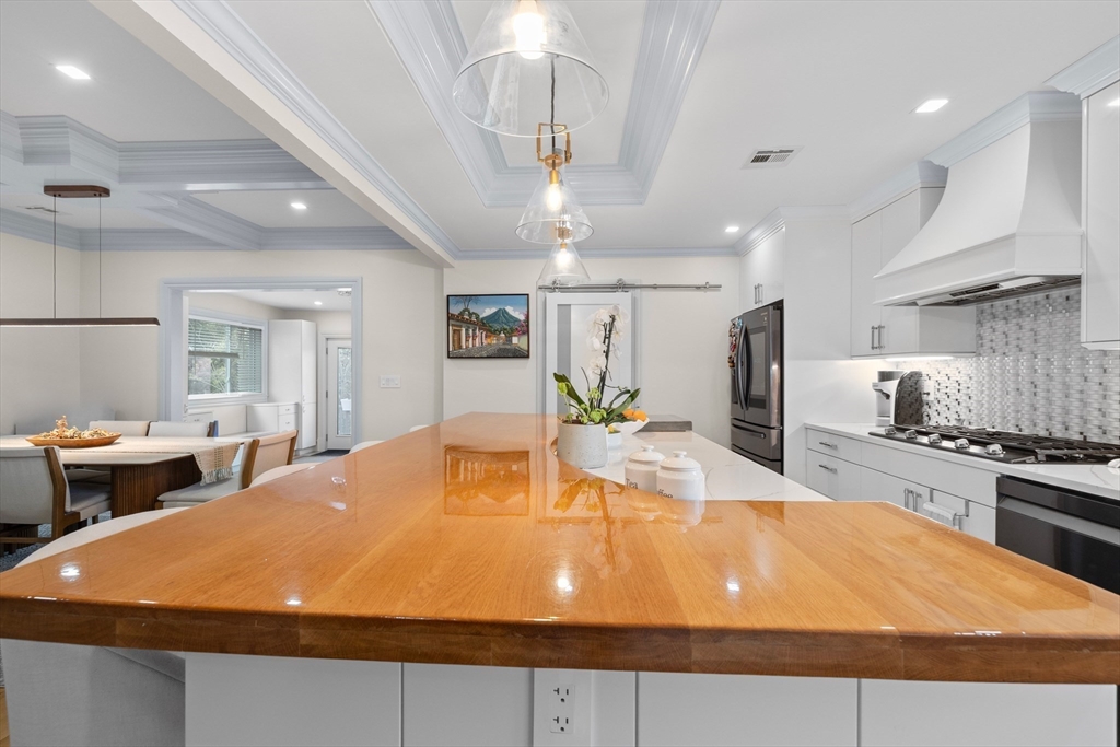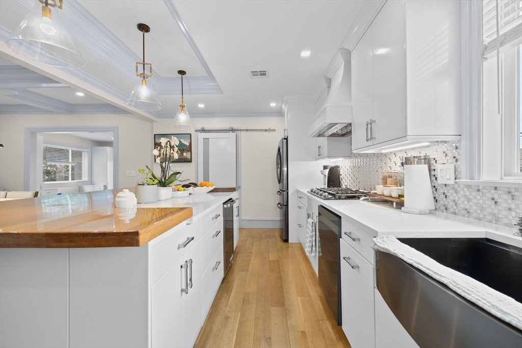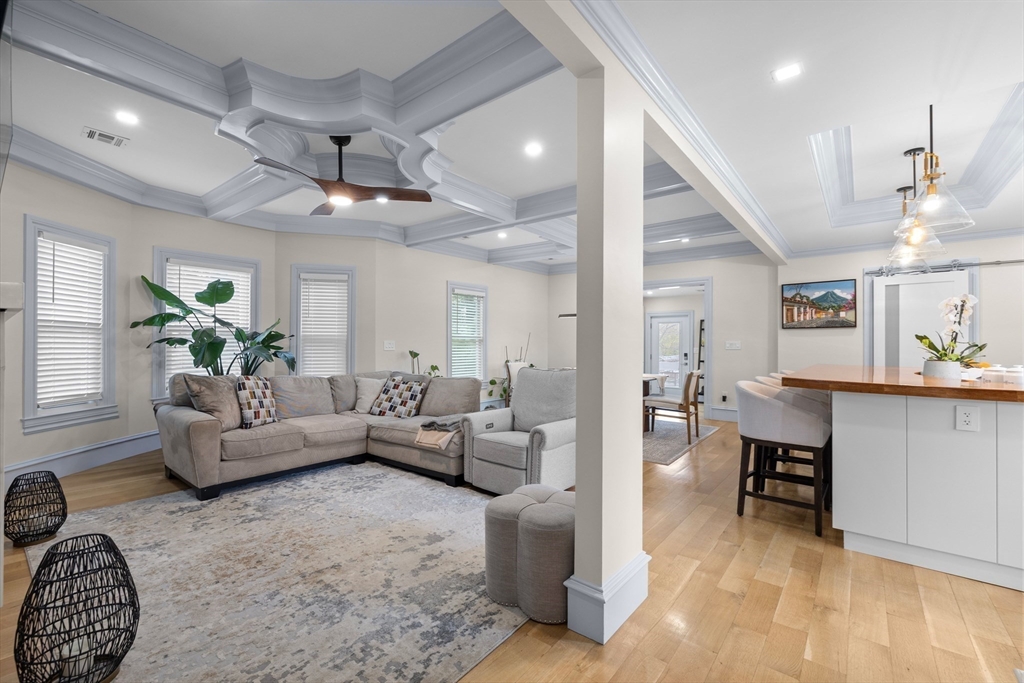 Welcome to this one-of-a-kind 3-4 bedroom condominium in desirable West Revere offering exceptional space, style & modern upgrades. Extensively renovated between 2023-2024, this home showcases impressive craftsmanship, thoughtful design & quality finishes throughout. The flexible floor plan includes a BONUS SPACIOUS family room ideal for guest space, playroom, or additional living area, PLUS a separate OFFICE perfect for today’s work-from-home needs. The beautifully designed kitchen features an oversized center island, double oven, stylish backsplash, & open-concept layout ideal for everyday living & entertaining. The kitchen flows seamlessly into the living room which is highlighted by coffered ceilings & gas fireplace. The primary BR suite offers a walk-in closet with custom built-ins & spa-inspired bath with elegant finishes. Enjoy an exclusive rear deck, private backyard space, & ample parking for 3 cars. Turnkey home near shopping, dining, major routes & public transportation!